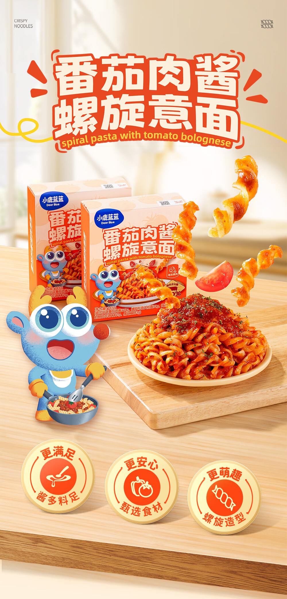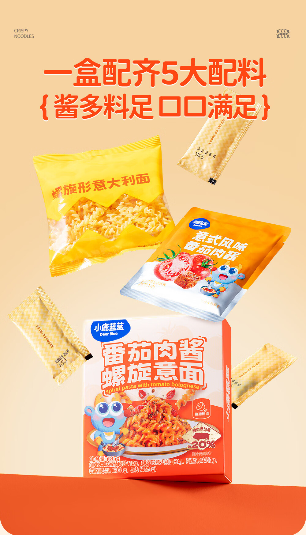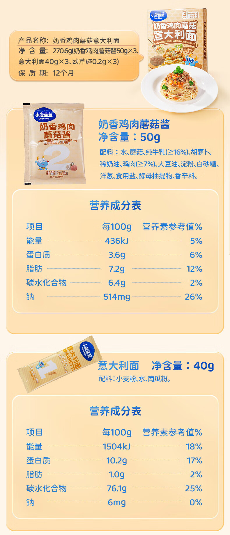 小鹿蓝蓝宝宝主食面条意大利面独立包装意大利面味道鲜口感棒 【3盒装美味均衡】黑椒黑松露咖喱/912g