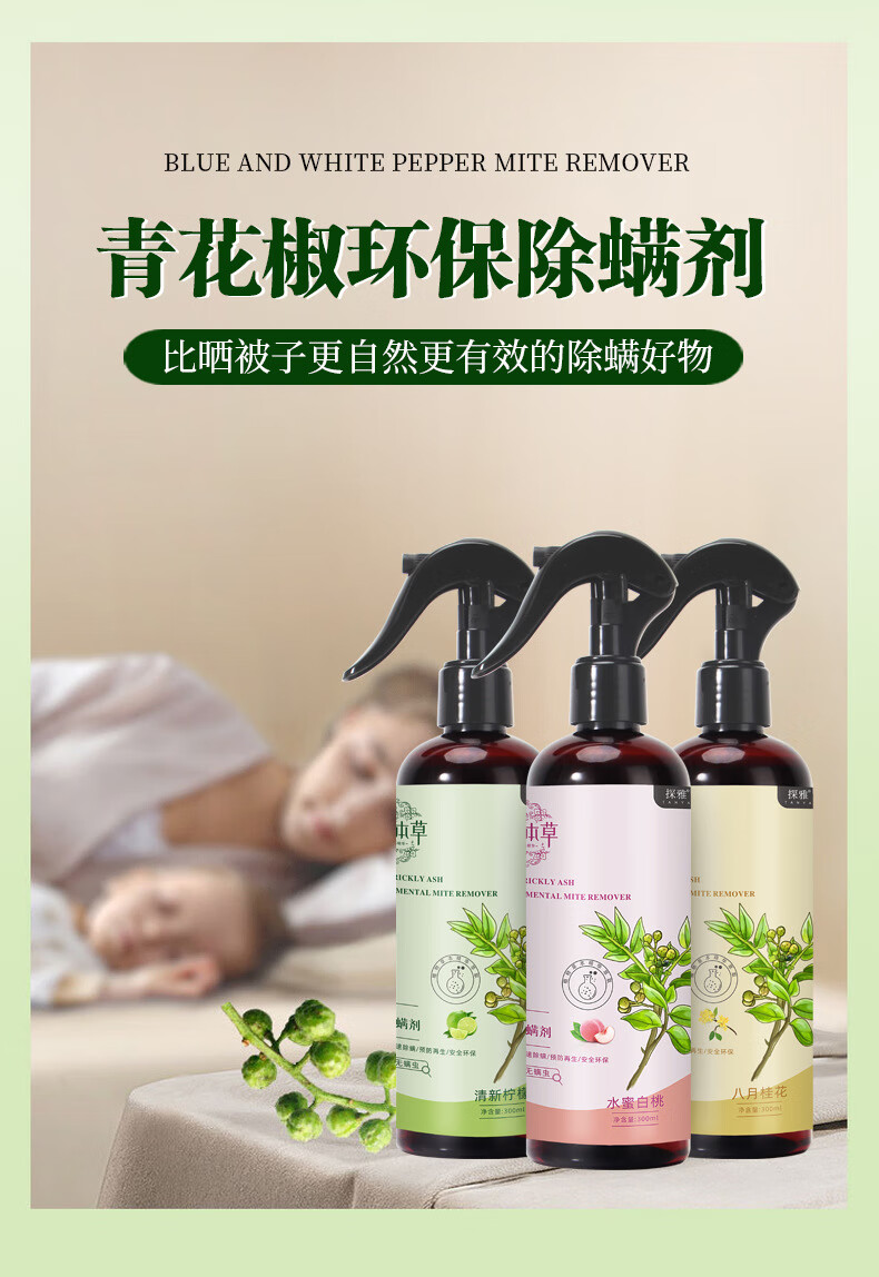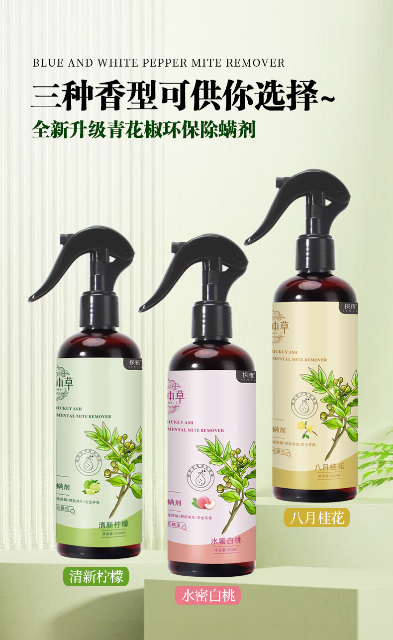 探雅云南本草青花椒除螨喷雾去螨剂驱螨床上免洗祛螨被褥衣物水蜜 除螨喷雾 八月桂花味 三瓶装