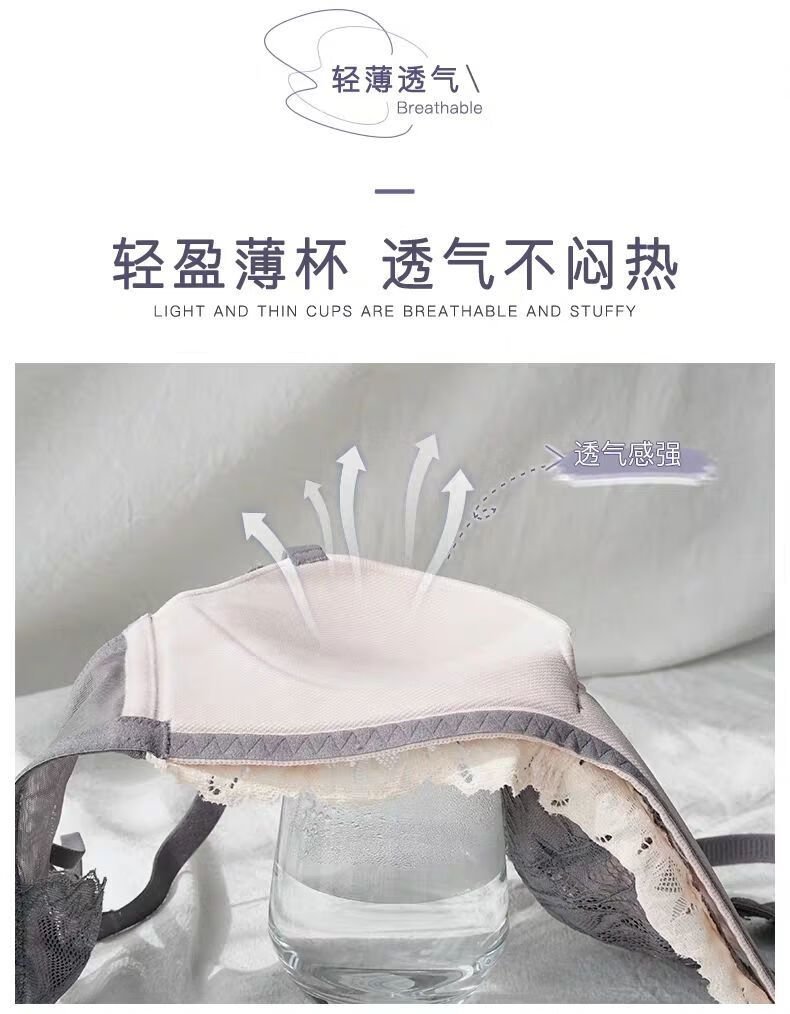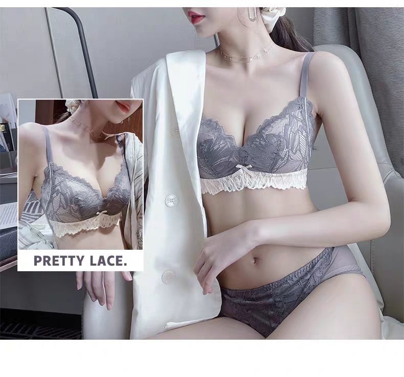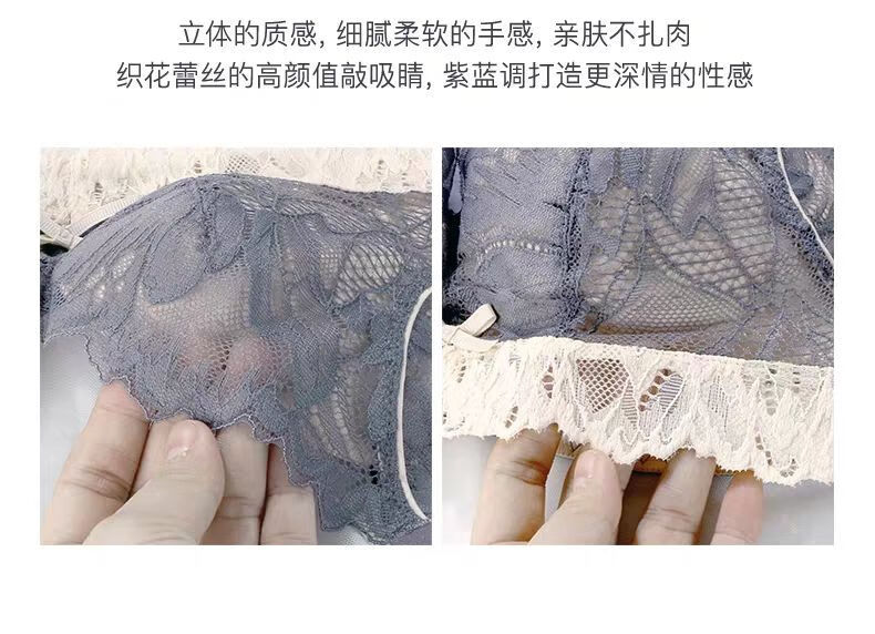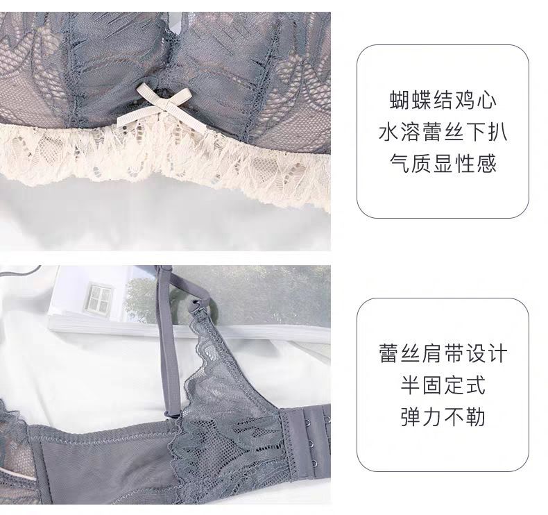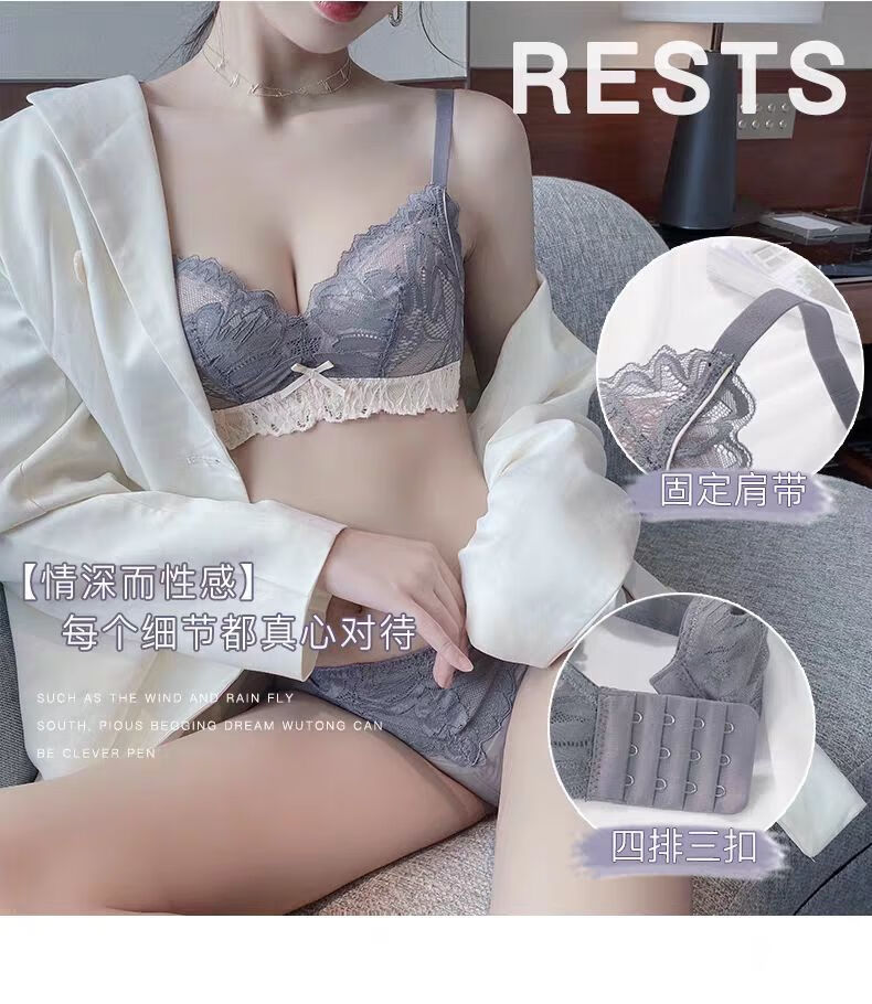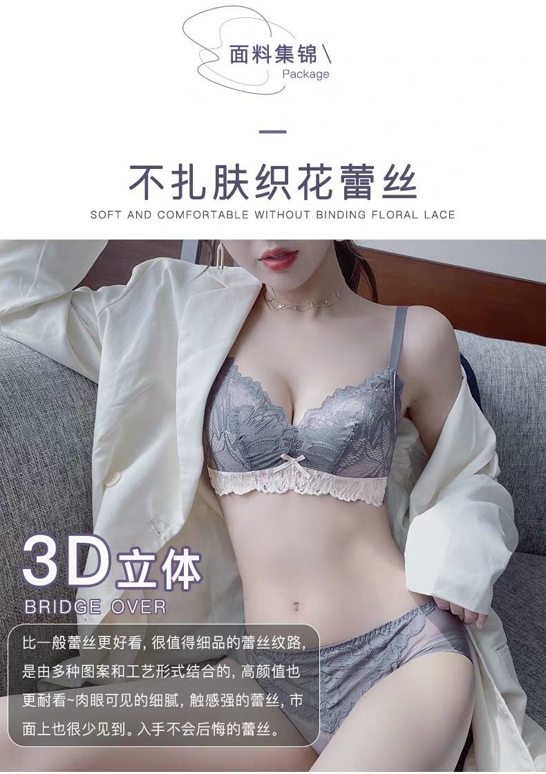 chunnian文胸+内裤无钢圈蕾丝文胸内衣女性感小胸聚拢胸罩套装520送女友 MWY可可-灰紫套装 XL 80/36AB
