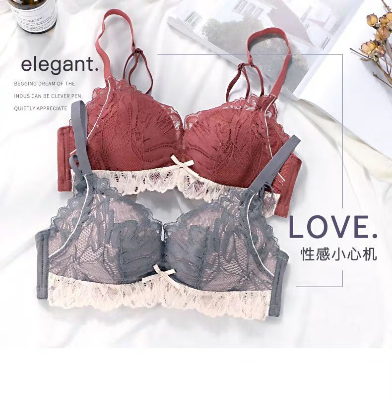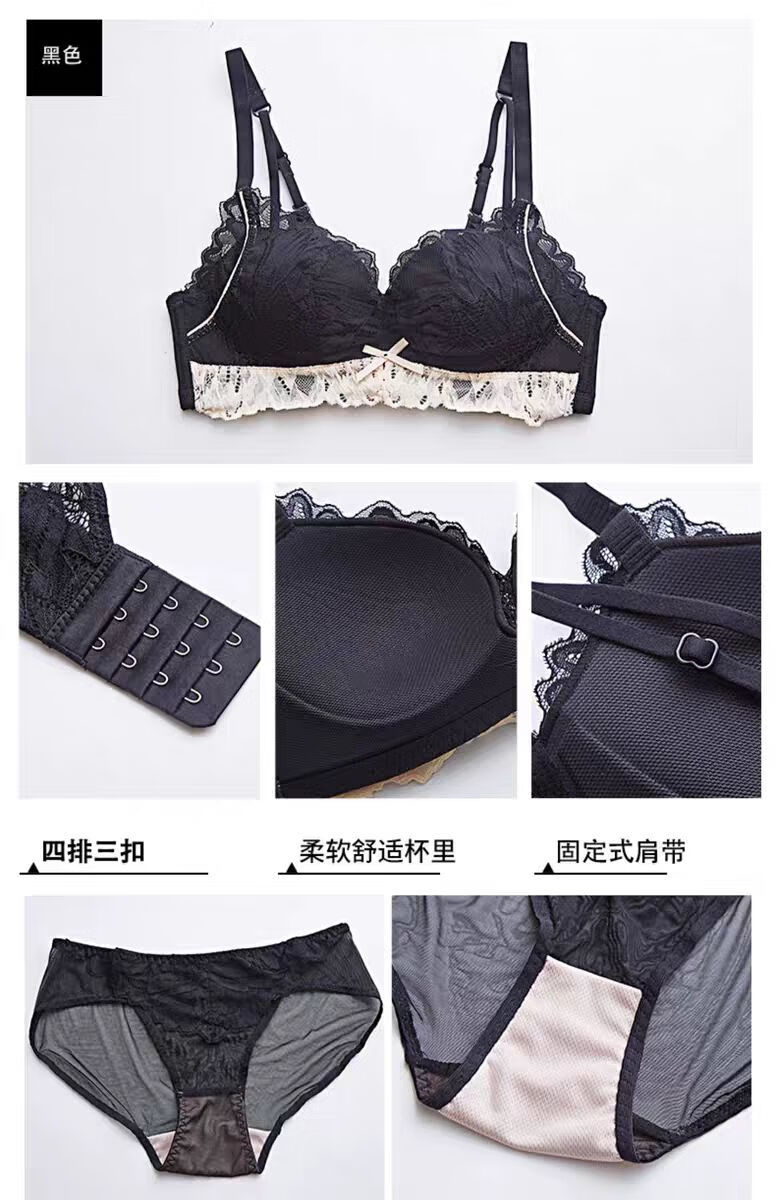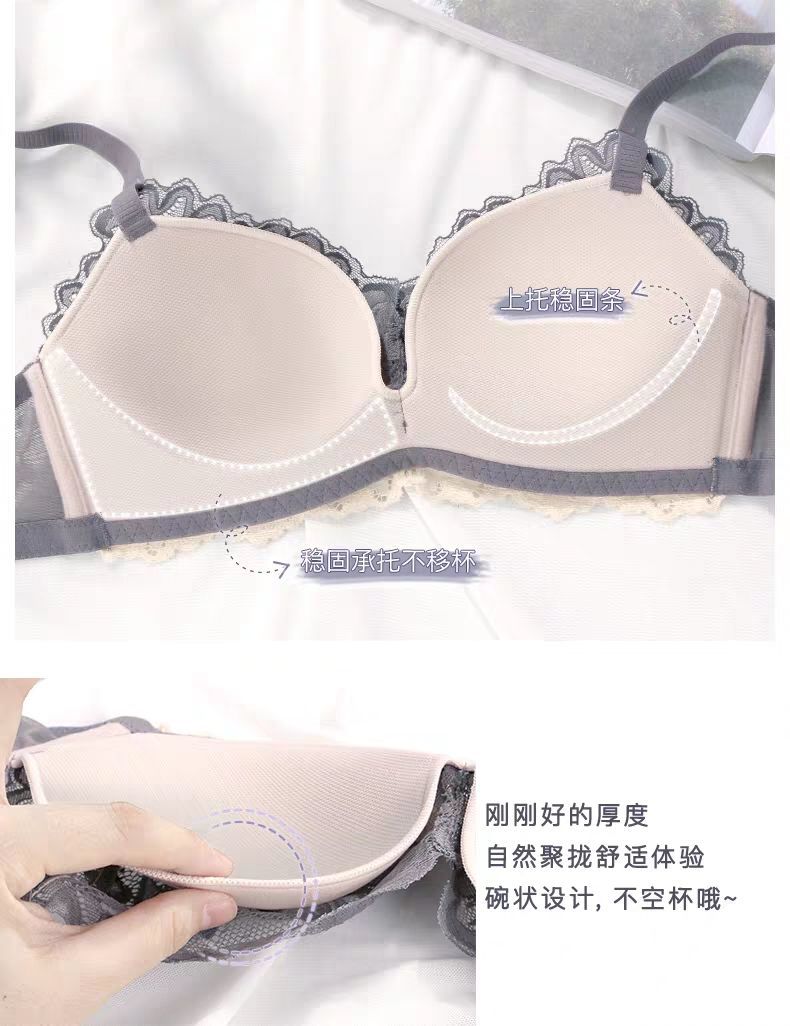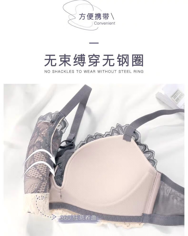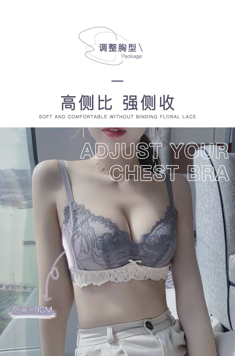 chunnian文胸+内裤无钢圈蕾丝文胸内衣女性感小胸聚拢胸罩套装520送女友 MWY可可-灰紫套装 XL 80/36AB