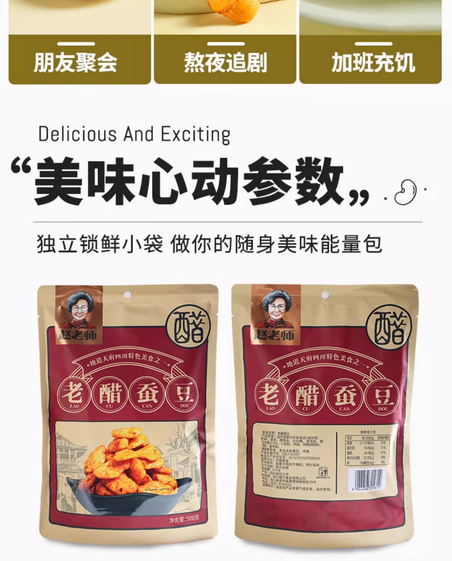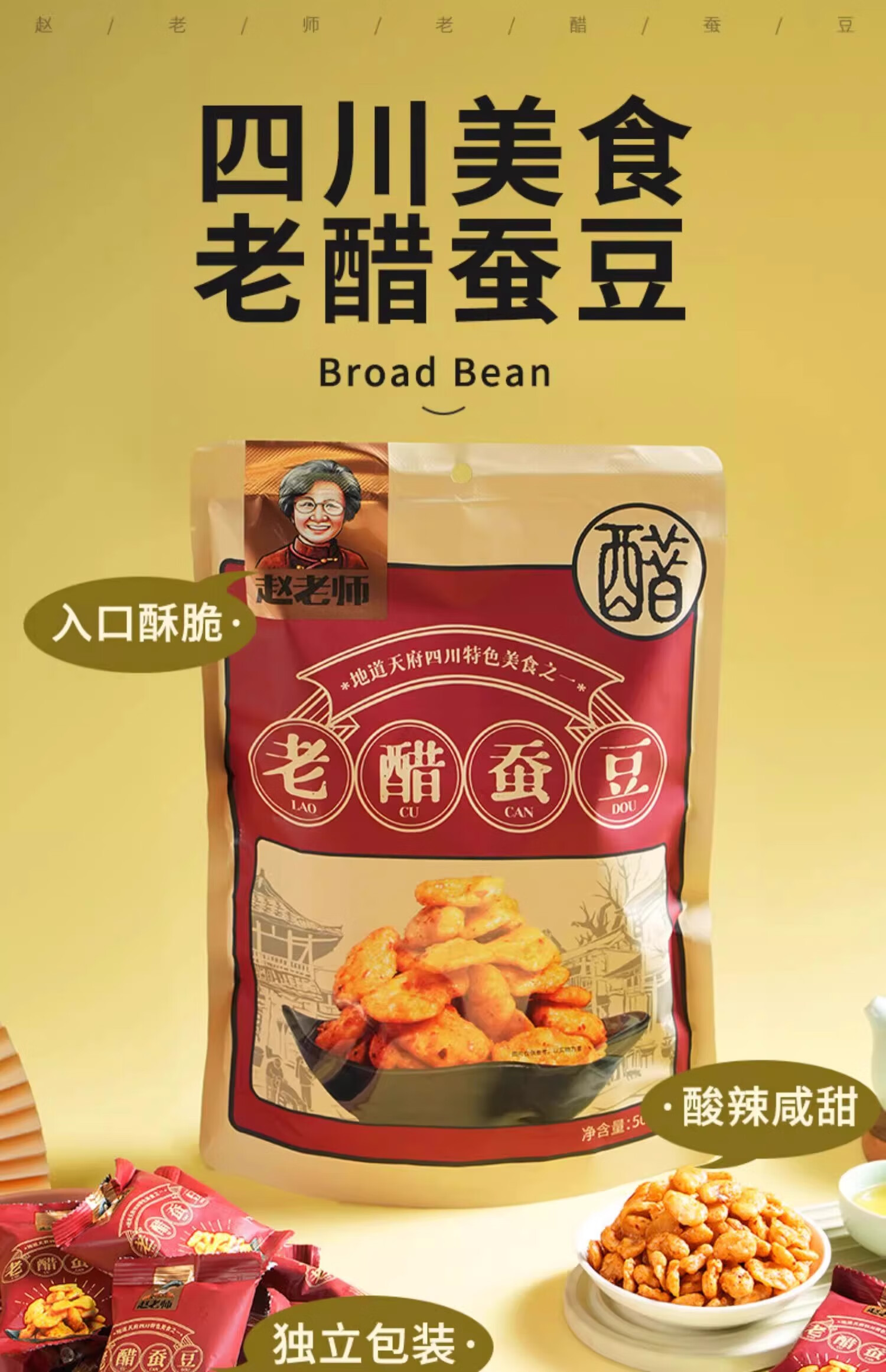 赵老师老醋蚕豆四川特色小吃馋嘴零食下酒菜怪味胡豆醋味兰花豆500g 去壳老醋蚕豆500克*1袋【约25小袋】