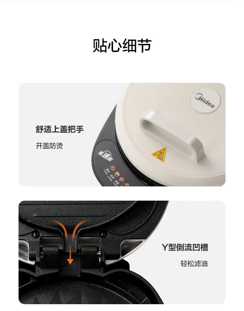 美的(Midea)电饼铛 电饼档 家用双面加热煎烤机烙饼锅 加大加深三明治机早餐机大尺寸烤肉抗菌电煎锅30J58升级
