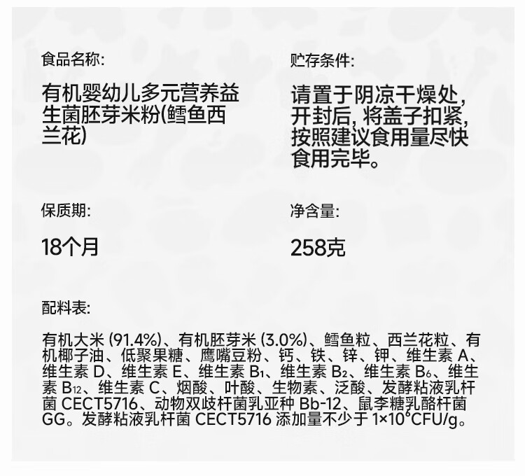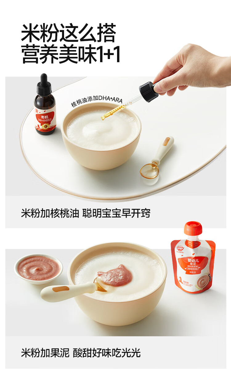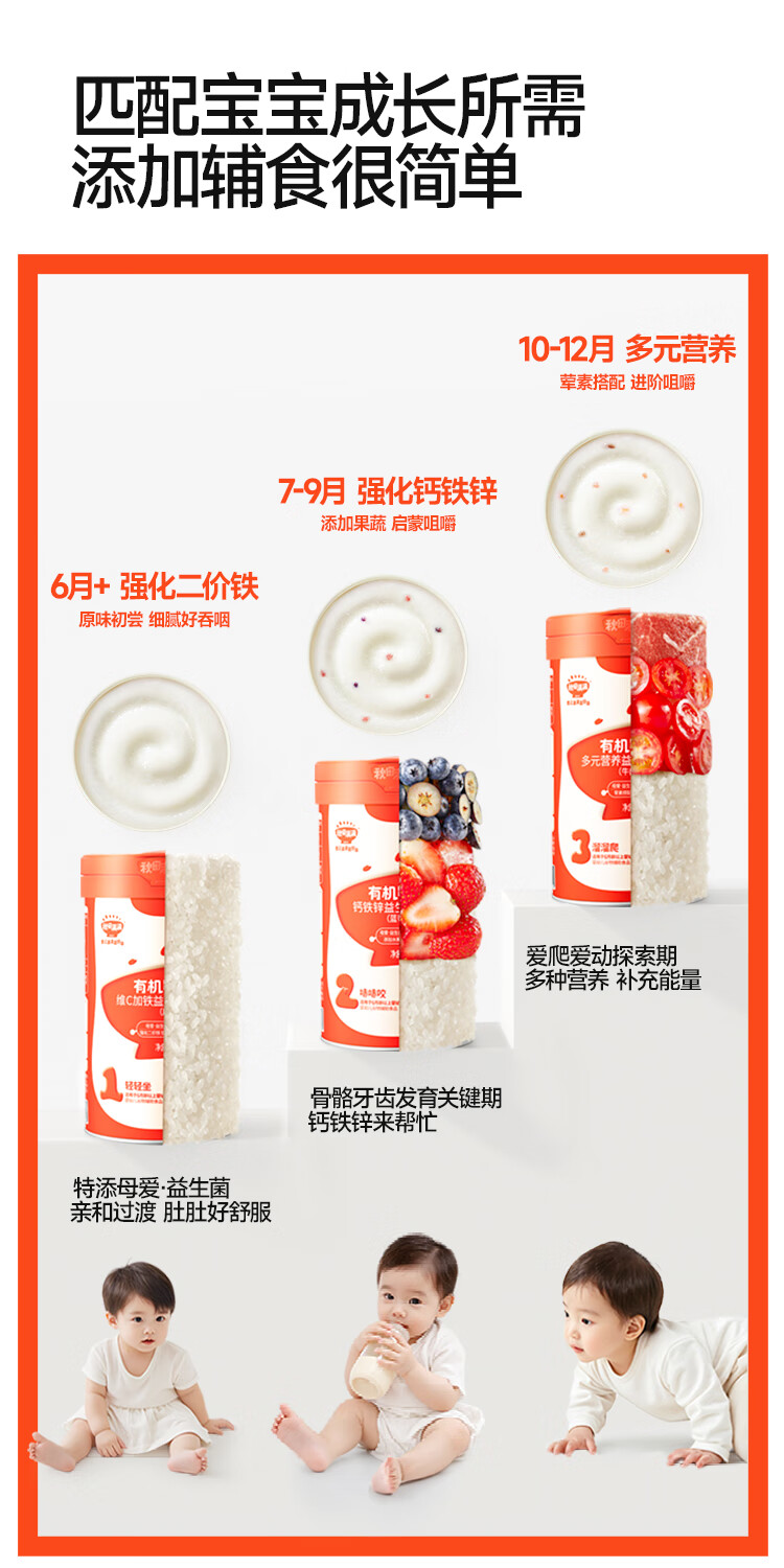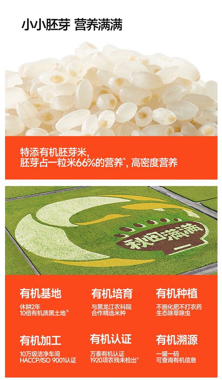 秋田满满 有机婴幼儿高铁米粉 婴儿胚芽米益生菌米糊6个月以上宝宝辅食 1阶-胚芽米原味 258g*1罐