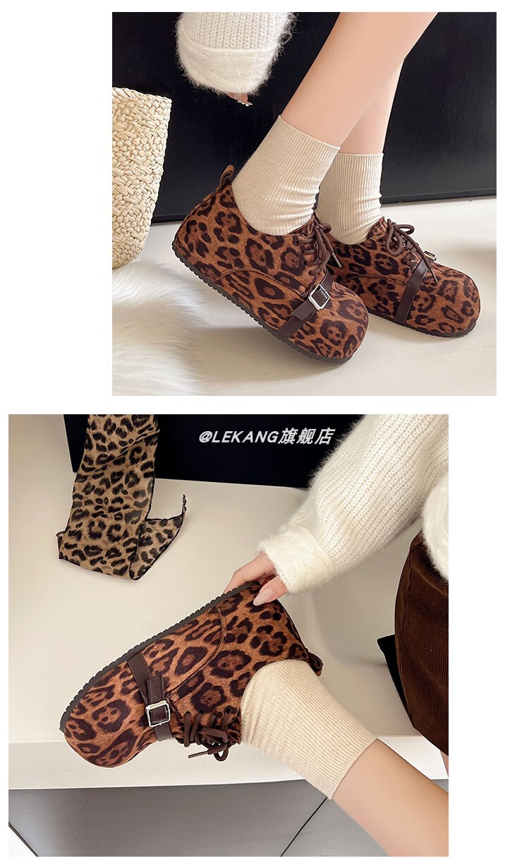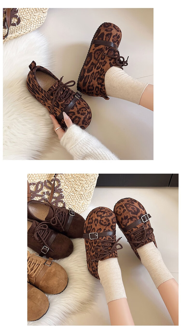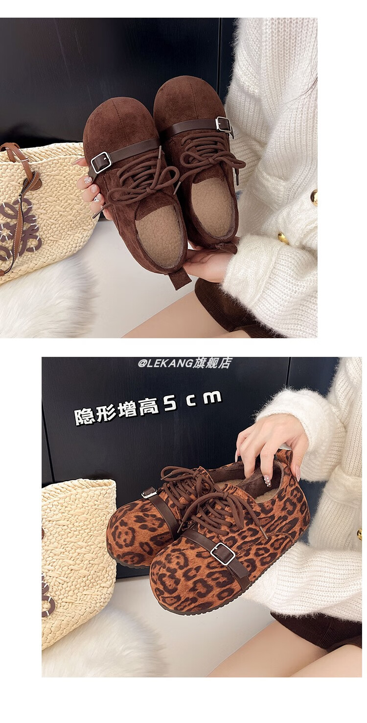 稻草人(MEXICAN)厚底内增高加绒系带勃肯鞋女2026秋冬新款丑萌扣带休闲松糕面包鞋 豹纹【专柜版】商场柜台品质超长质保 37