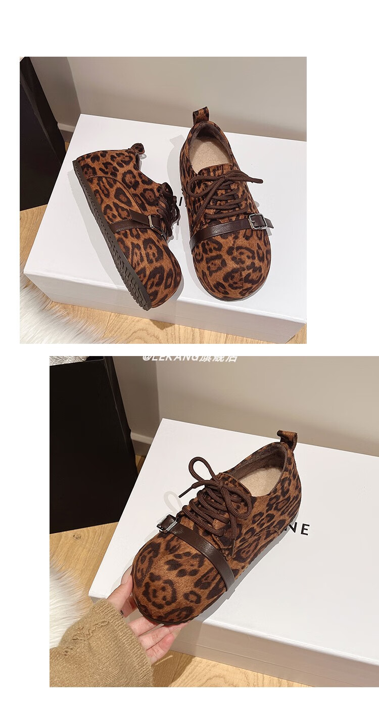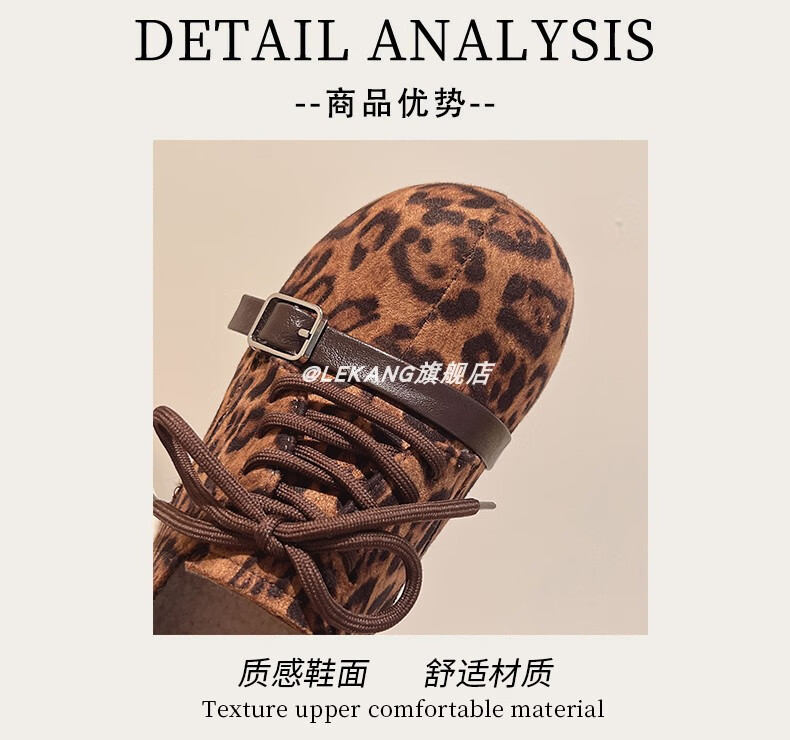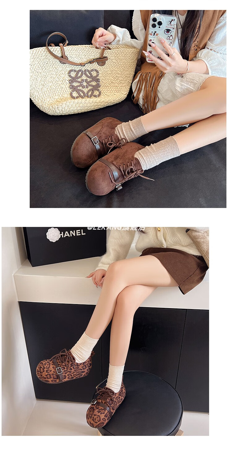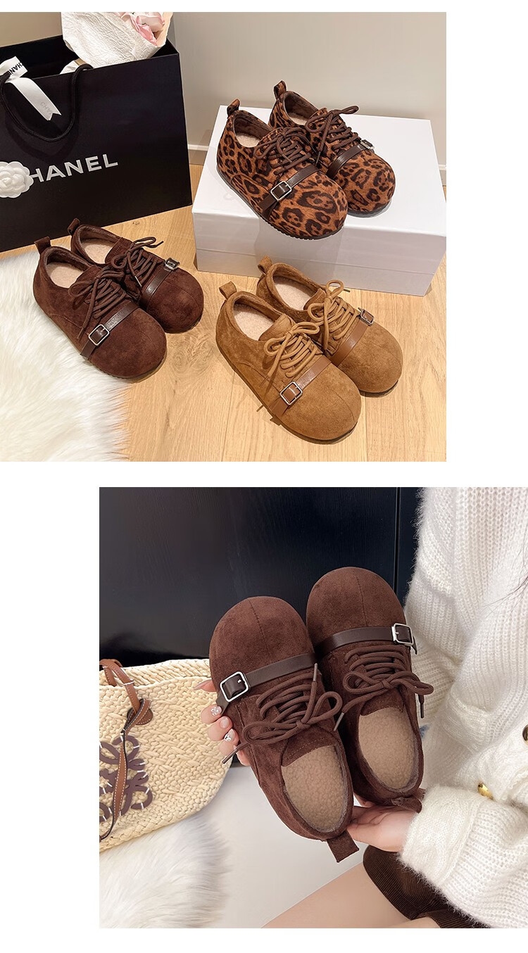 稻草人(MEXICAN)厚底内增高加绒系带勃肯鞋女2026秋冬新款丑萌扣带休闲松糕面包鞋 豹纹【专柜版】商场柜台品质超长质保 37