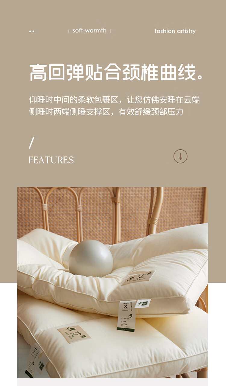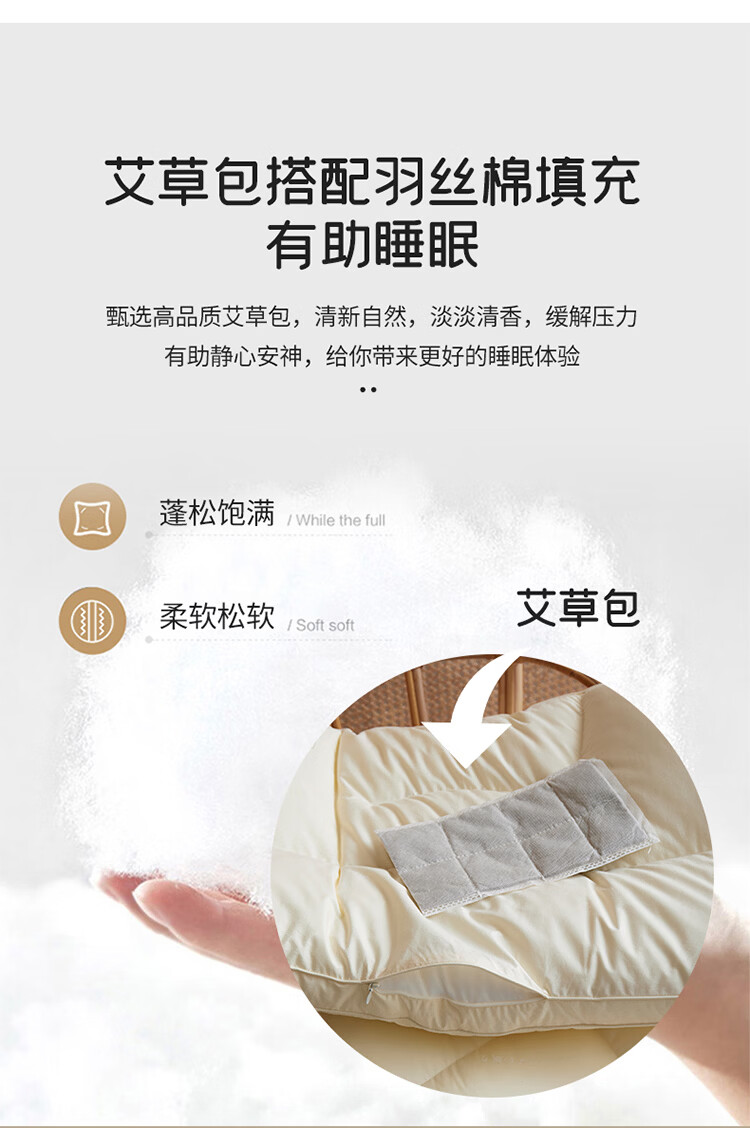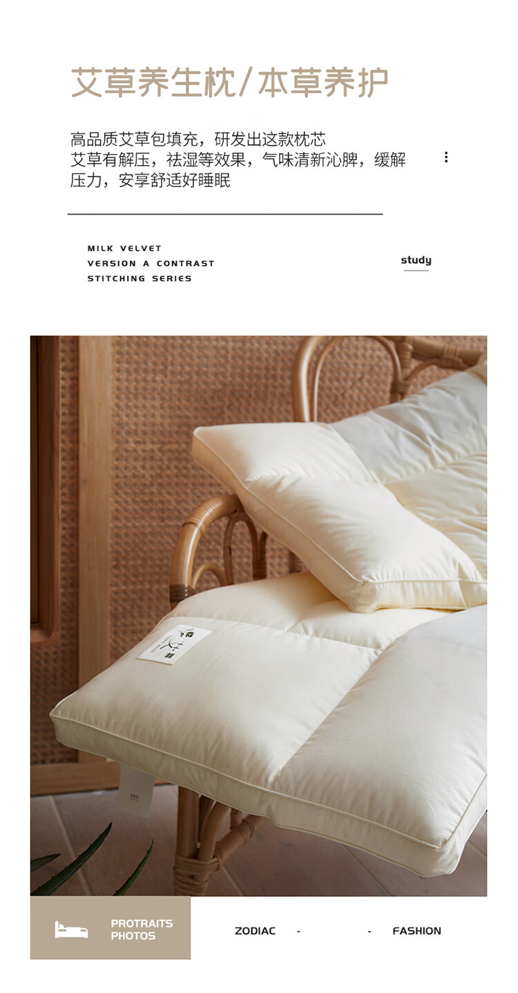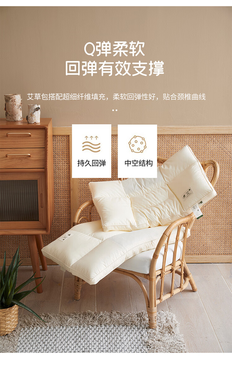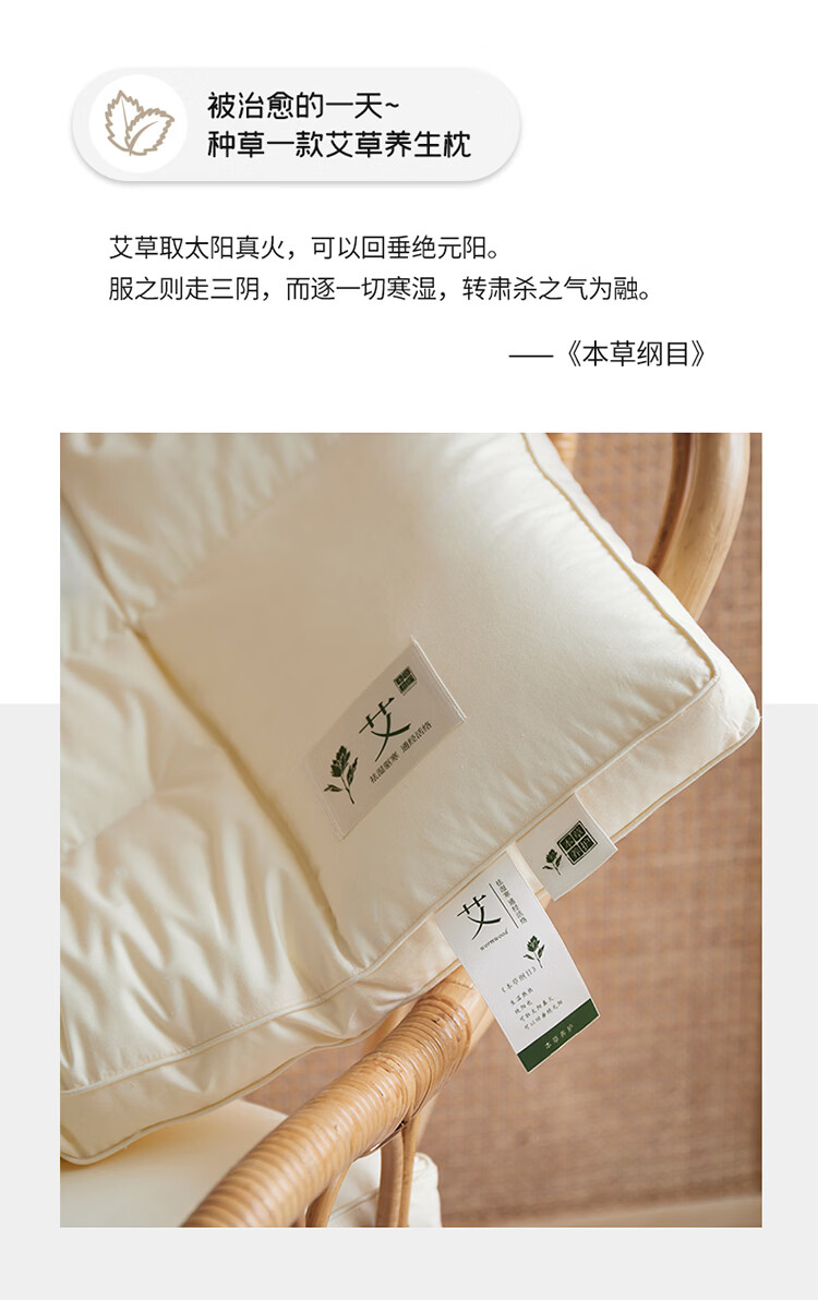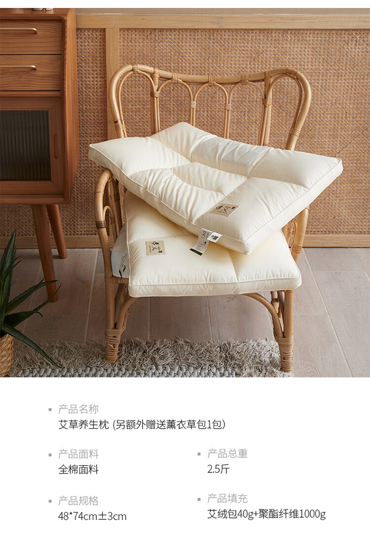 ROLAND LIVE全棉艾草养生枕舒缓肩颈枕头单人枕助睡眠护颈枕家用枕芯48*74cm EOEO 艾草养生枕 一只装 48*74cm*11cm