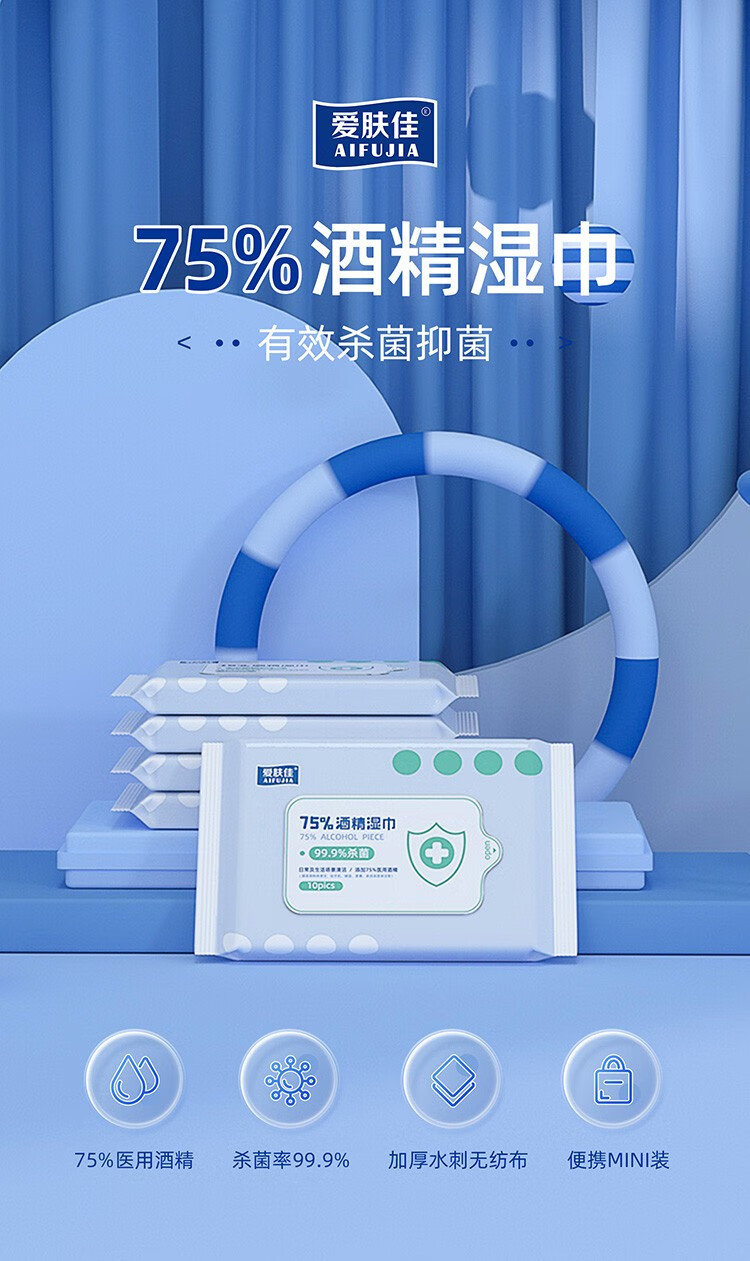 爱肤佳(aifujia)酒精消毒湿巾湿纸巾一次性便携卫生家用外出用纸10片*10包