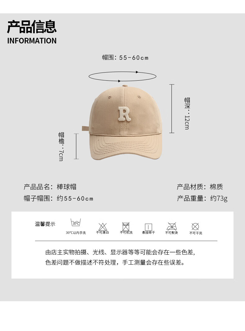 简时行帽子男女四季百搭棒球帽韩版时尚软顶刺绣鸭舌帽户外休闲潮遮阳帽 米色