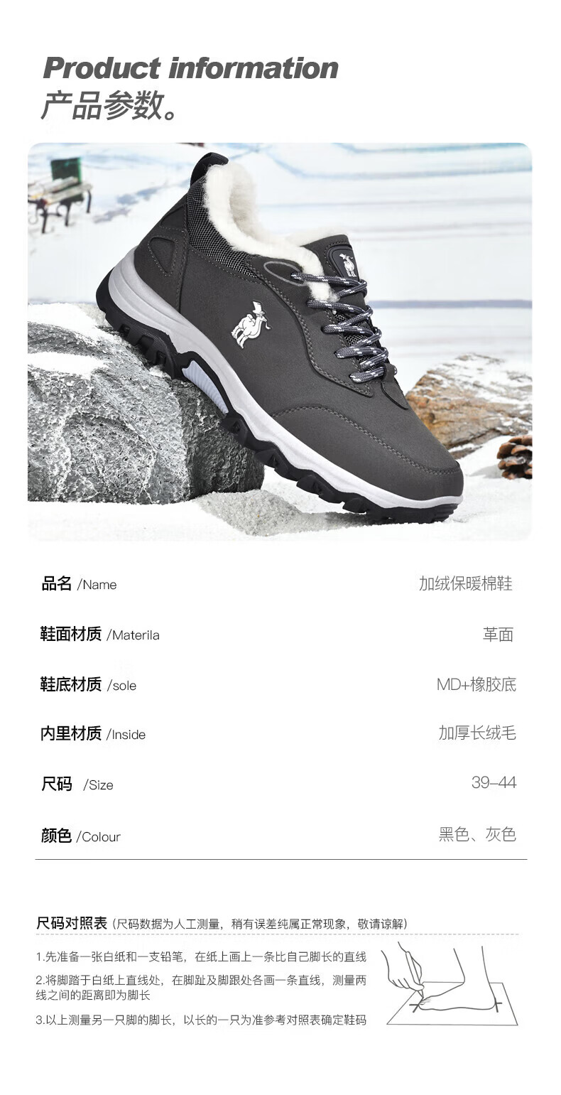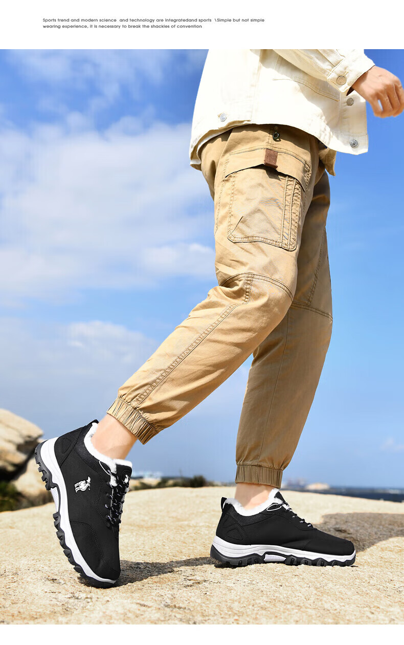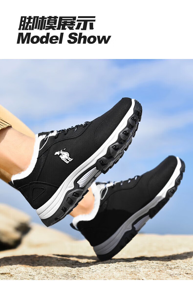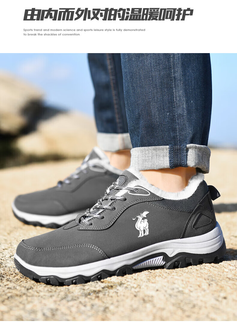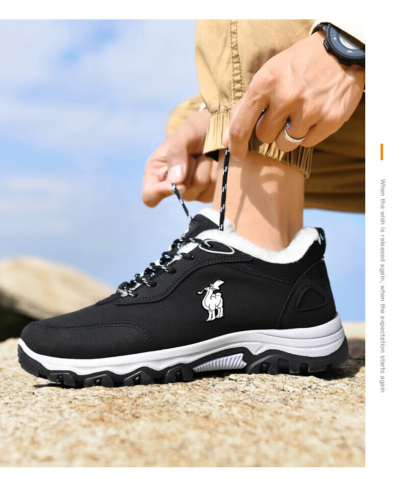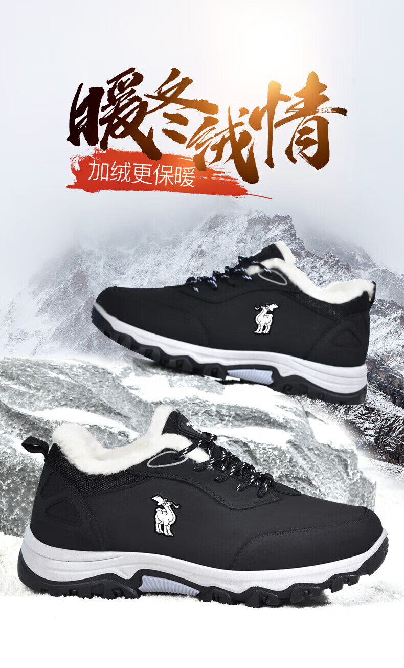 保罗骆驼运动休闲鞋 加厚加绒保暖男鞋子 2026春夏季防滑轻便大码户 【加绒款】黑色 LY26121 39 【标准运动鞋码】