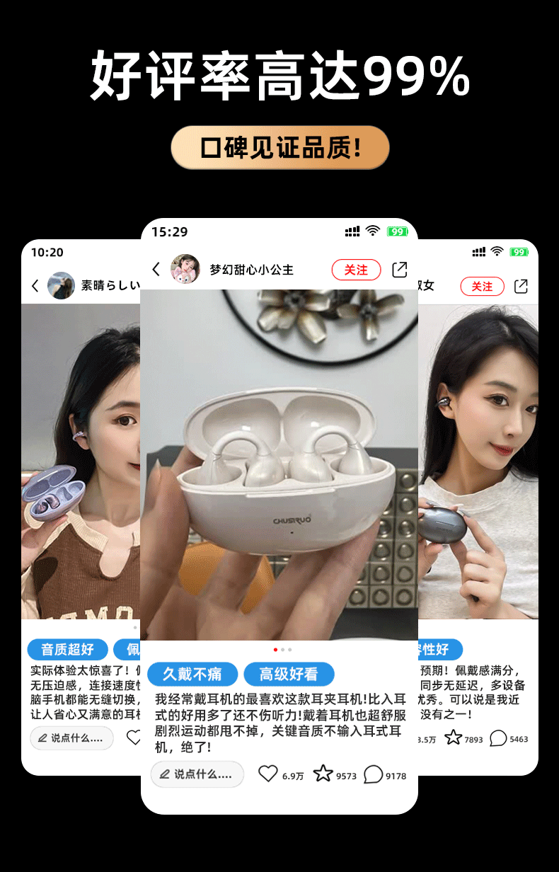 鑫羽音【甄选直发】蓝牙耳机夹耳式骨传导2025新款无线运动不入耳跑步挂 黑色【HiFi环绕音+持久续航】 【手机通用】蓝牙5.4-单耳