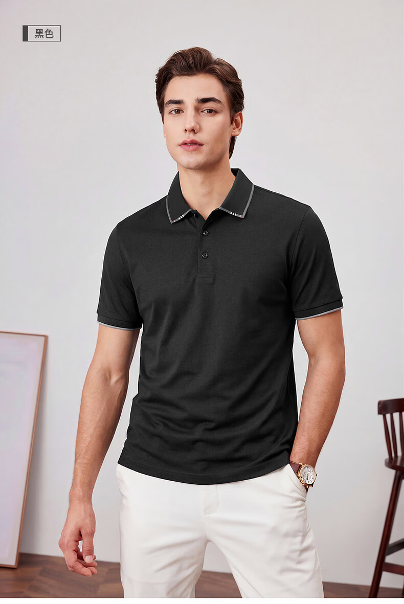 杉杉夏季新款撞色扁机领商务休闲翻领短袖Polo衫 军绿 M