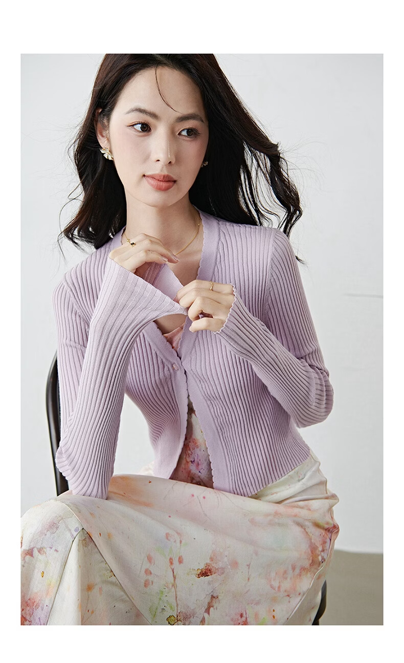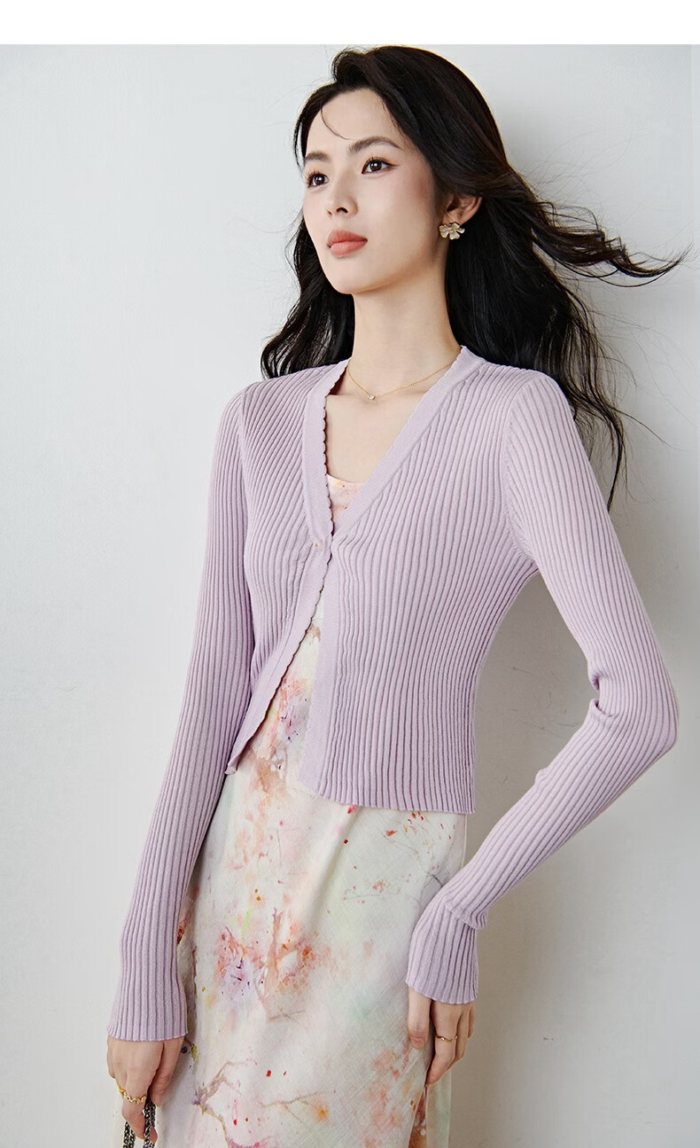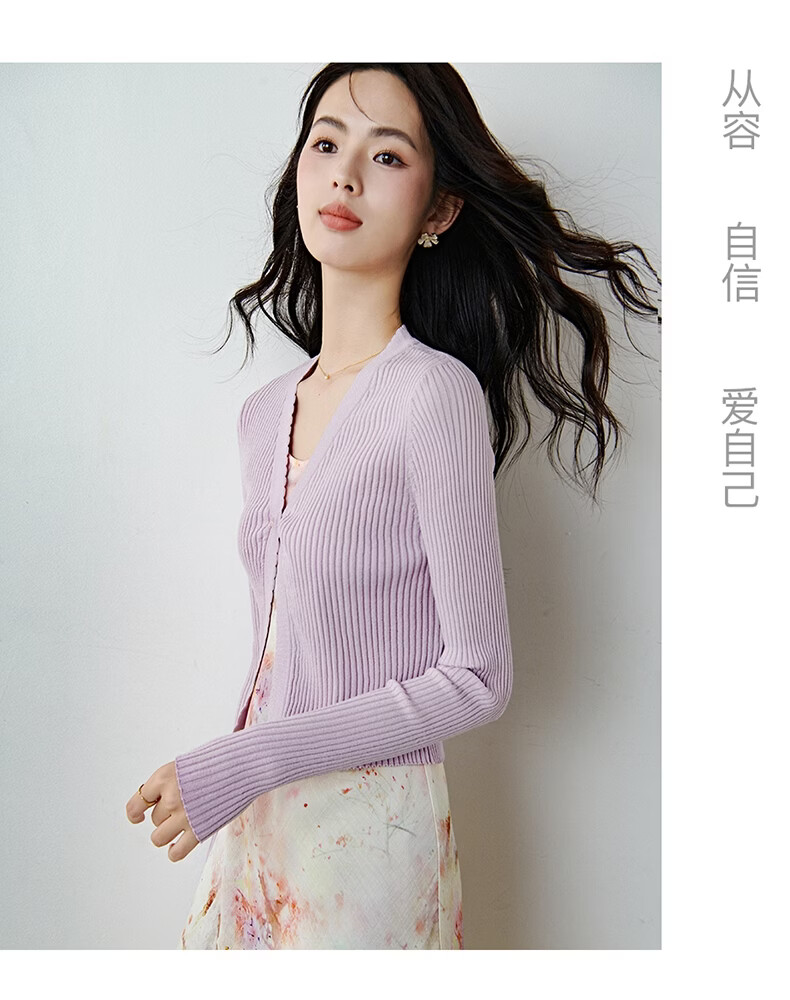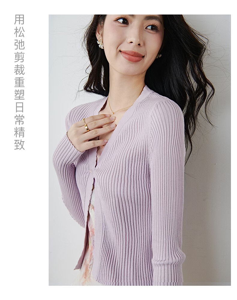 晚白【新品】2026春款时尚V领上衣亲肤舒适修身百搭针织开衫女 紫色 L