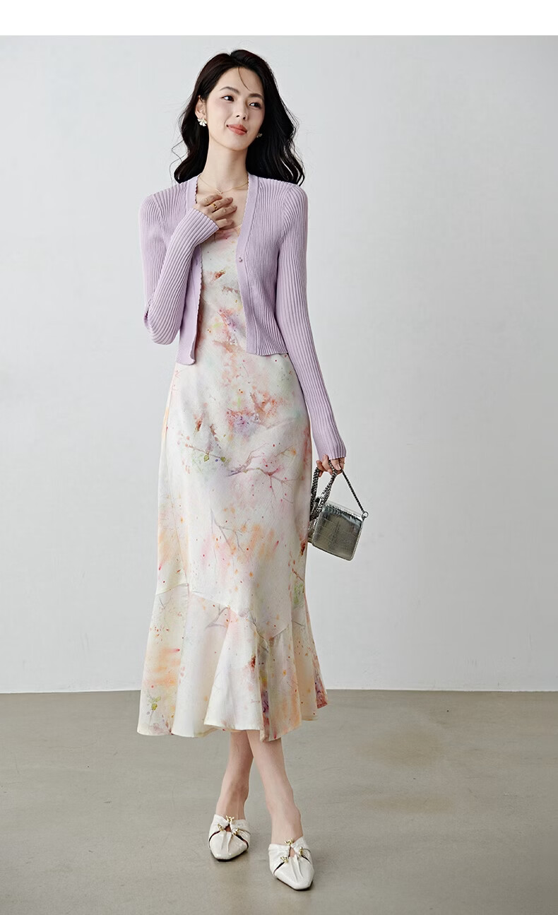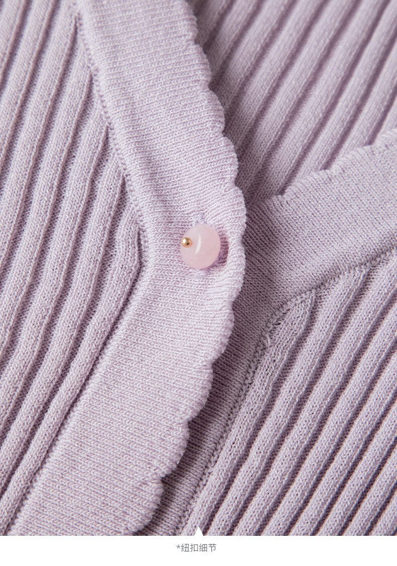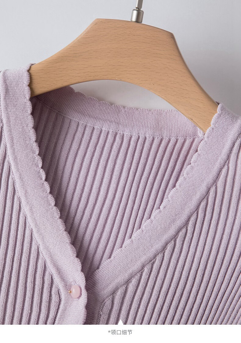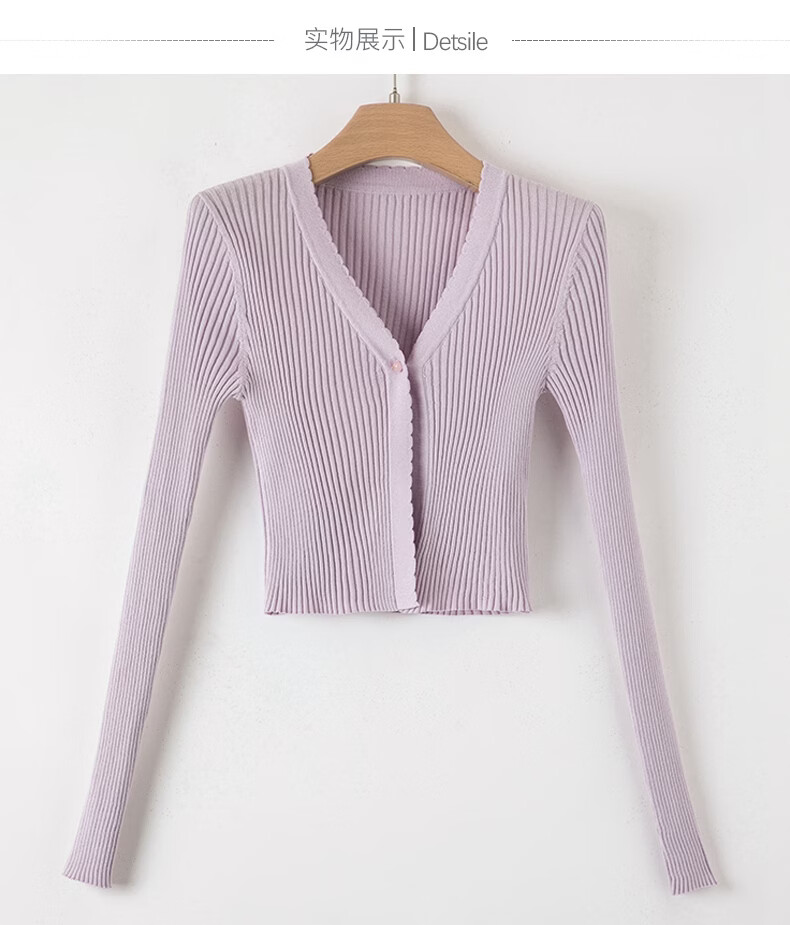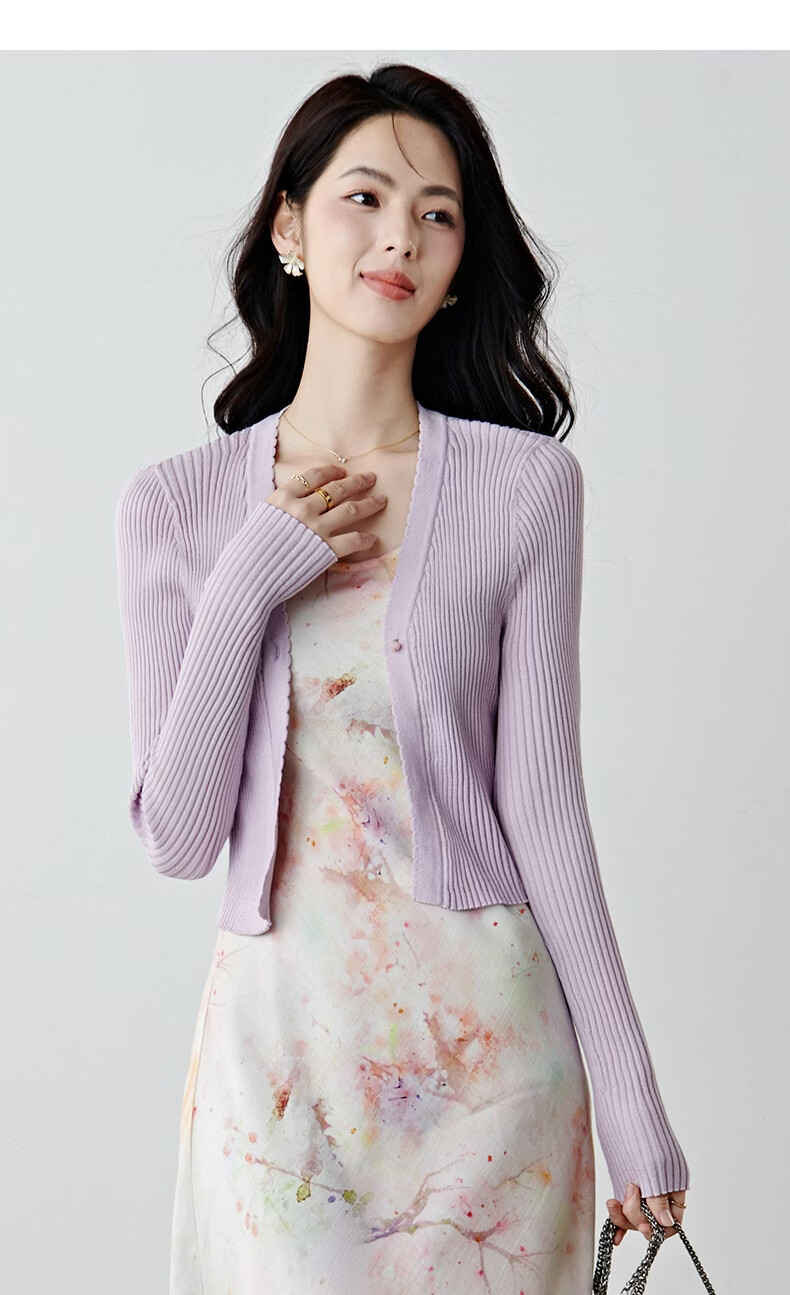 晚白【新品】2026春款时尚V领上衣亲肤舒适修身百搭针织开衫女 紫色 L