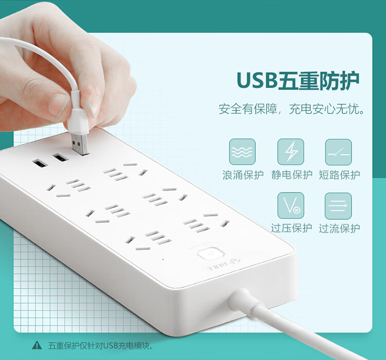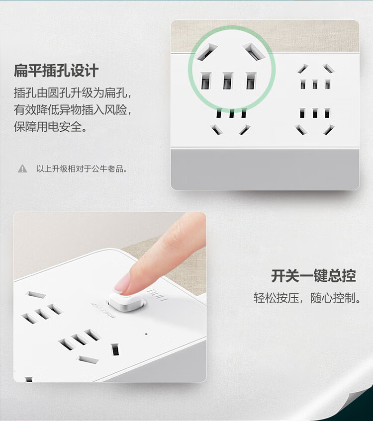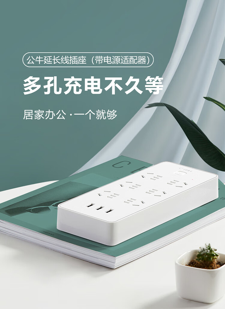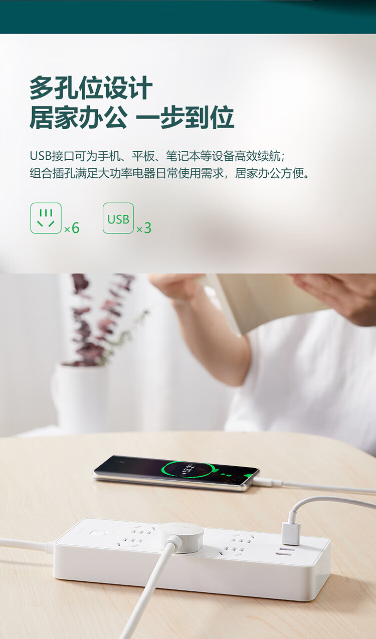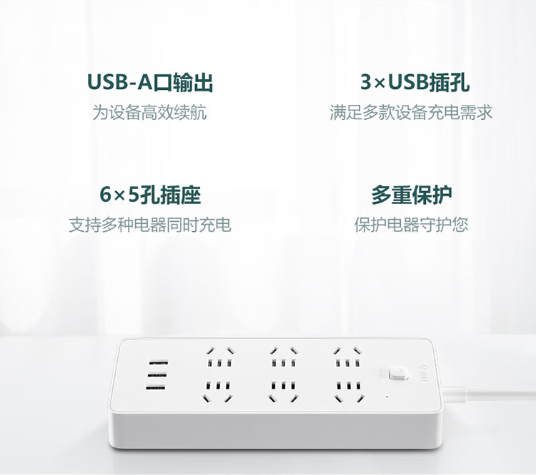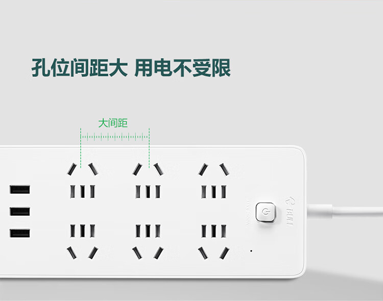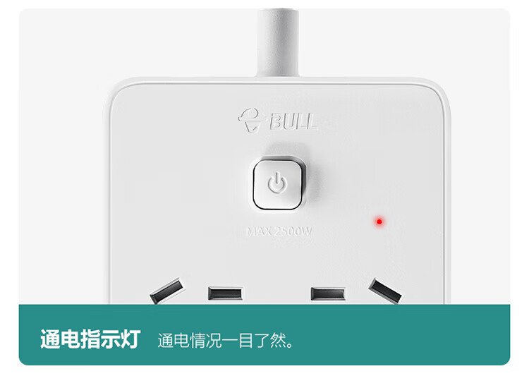 公牛(BULL) 公牛小白USB插座/插线板/插排/排插 GNV-UUN153 3usb接口 6孔全长1.8米 总控开关