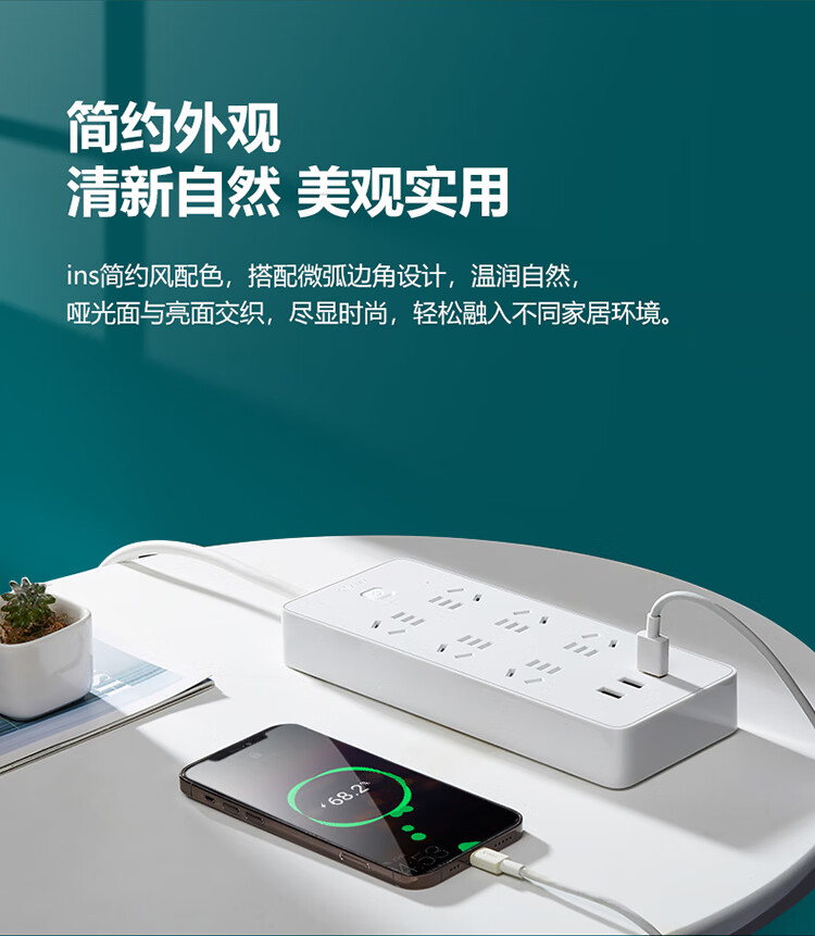 达聚科柔性带线插座转换器插排多孔家用USB充电多功能一转多电源接线板USB充电安全门适用于卧室 八插位总控【1.8米】