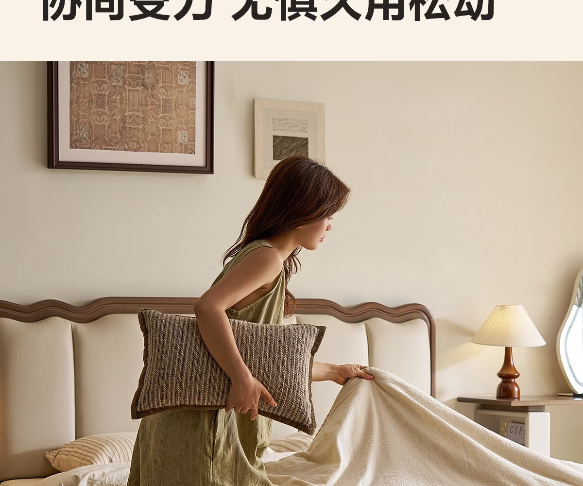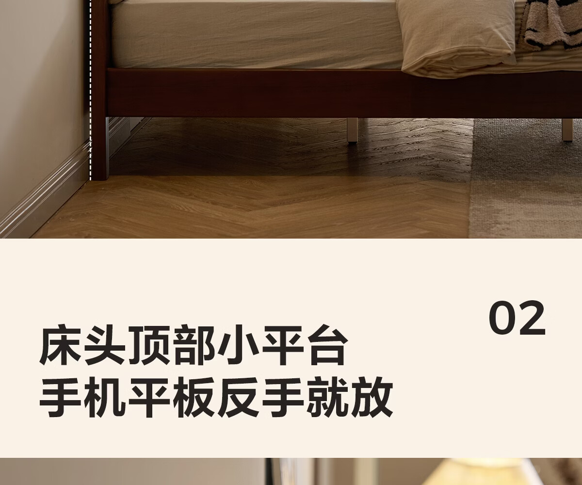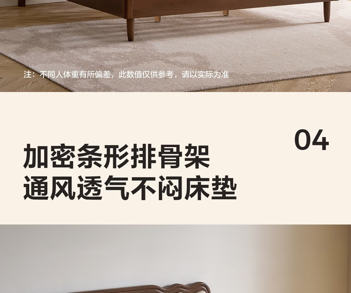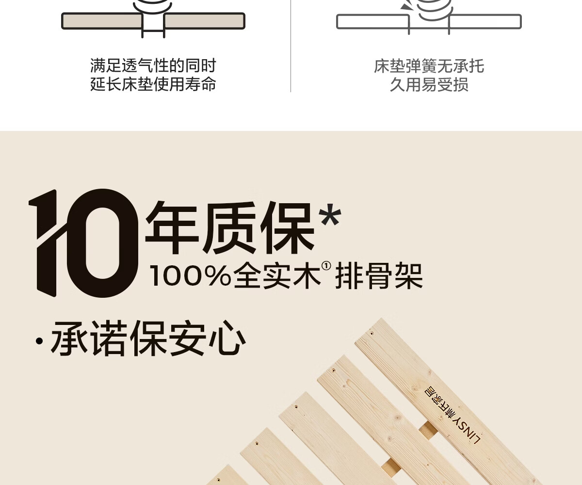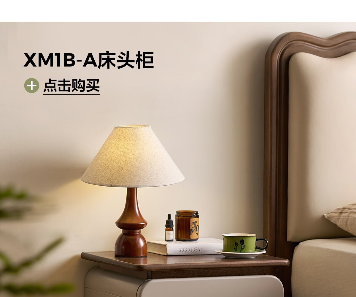 林氏家居中古奶油风实木床复古真皮软包床1米8双人床家具序楸系列XM1A 排骨架【楸木】软包实木床 1.5米x2米
