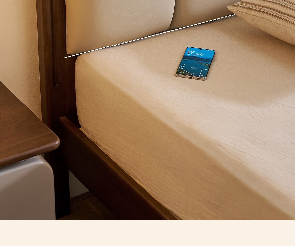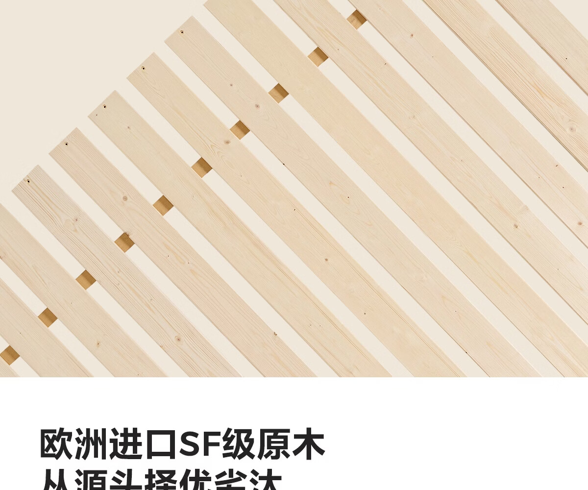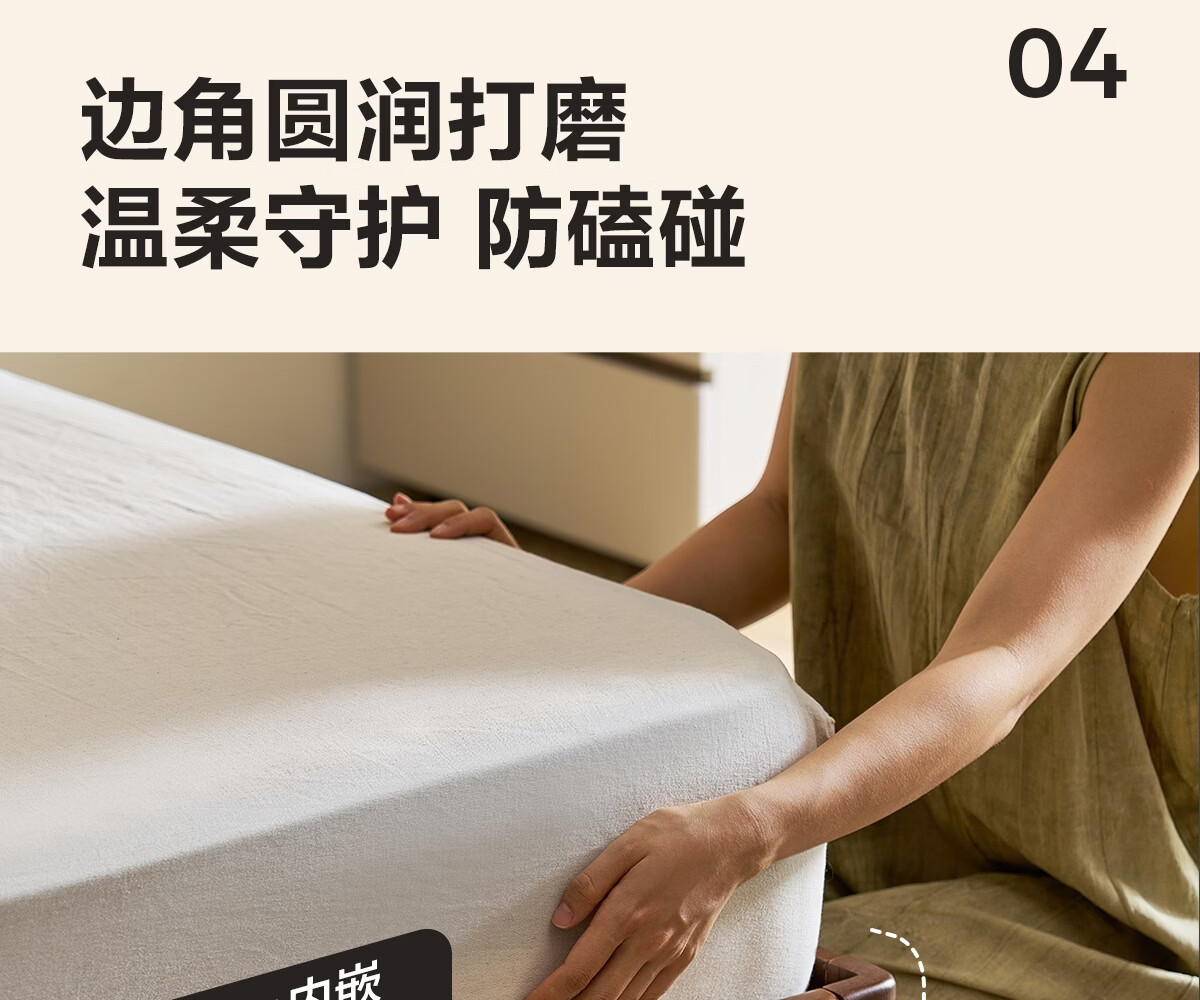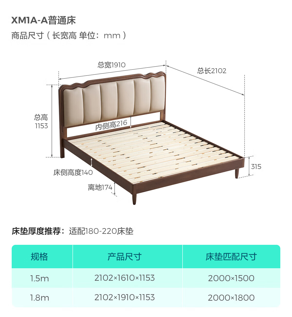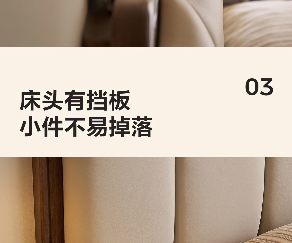 林氏家居中古奶油风实木床复古真皮软包床1米8双人床家具序楸系列XM1A 排骨架【楸木】软包实木床 1.5米x2米