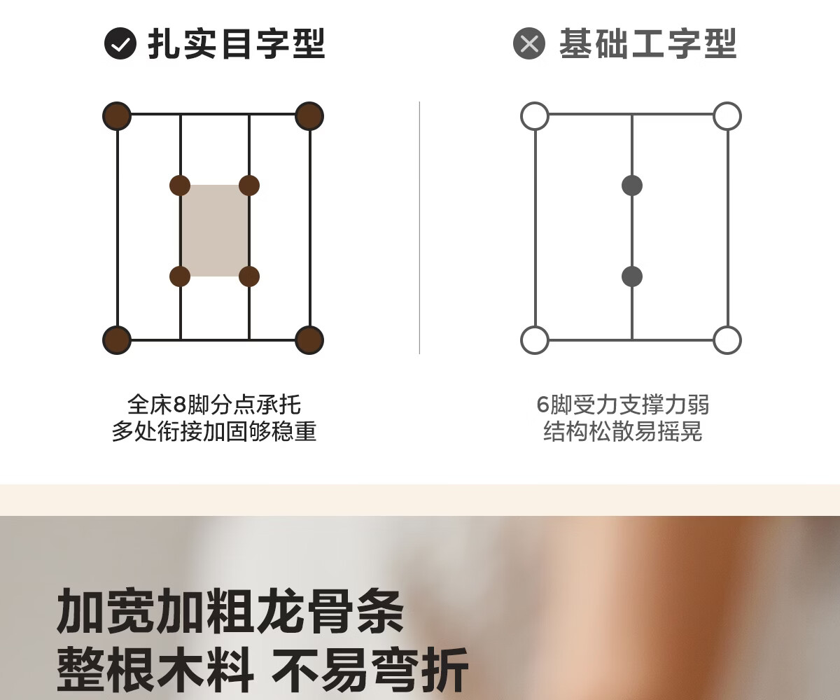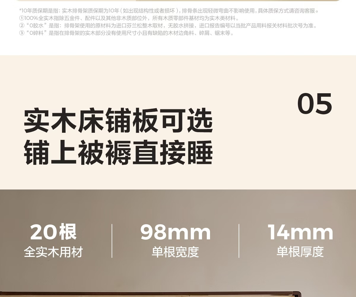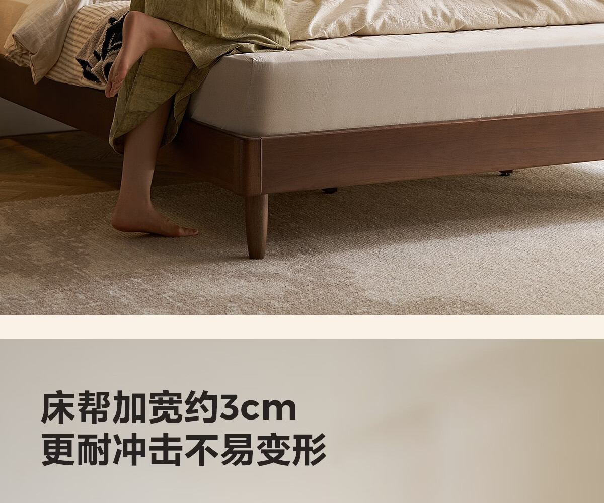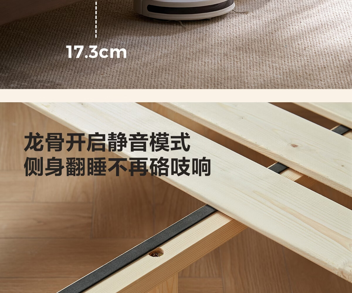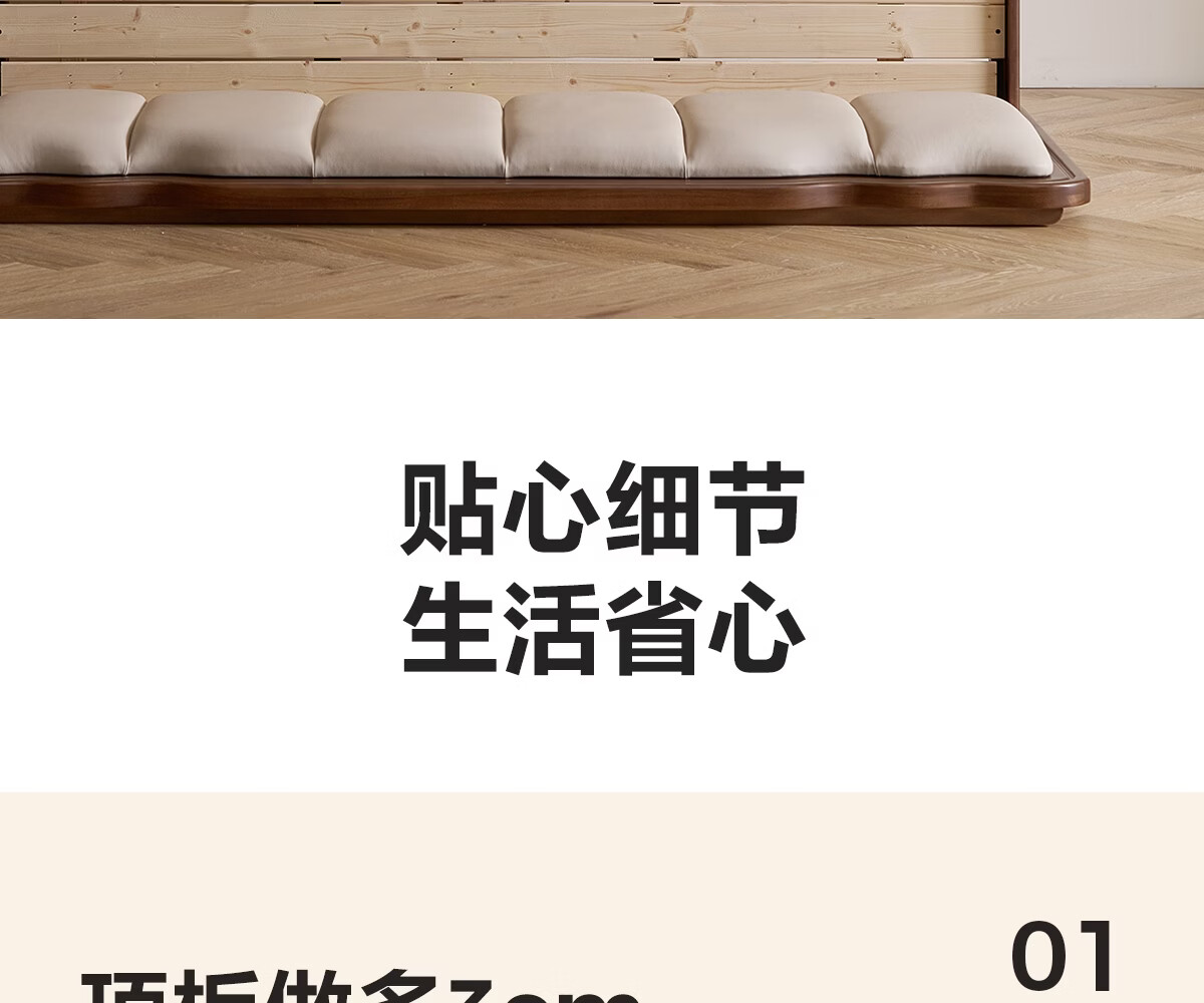 林氏家居中古奶油风实木床复古真皮软包床1米8双人床家具序楸系列XM1A 排骨架【楸木】软包实木床 1.5米x2米
