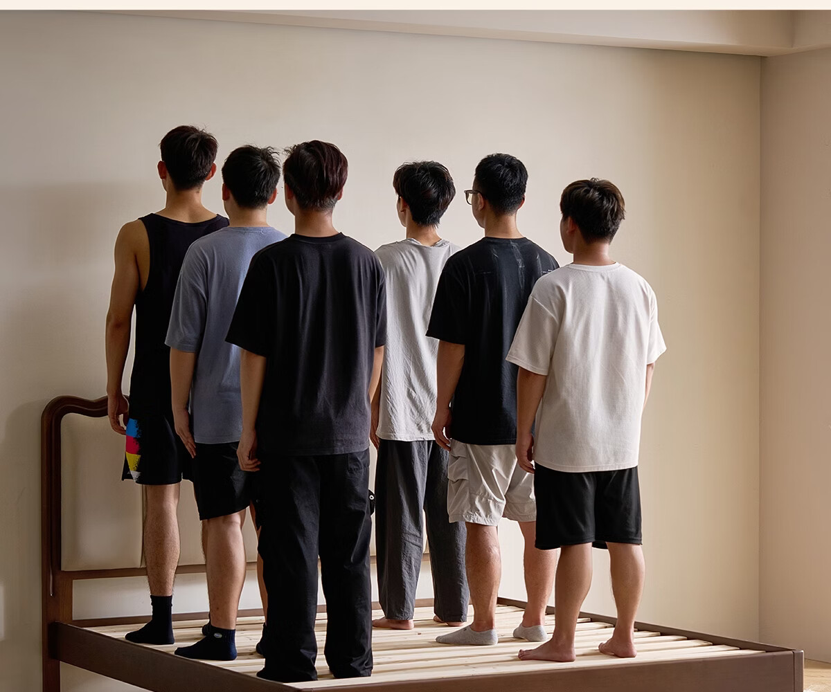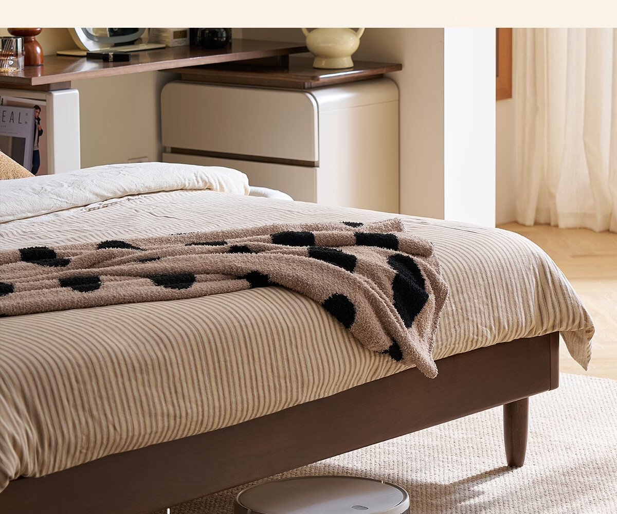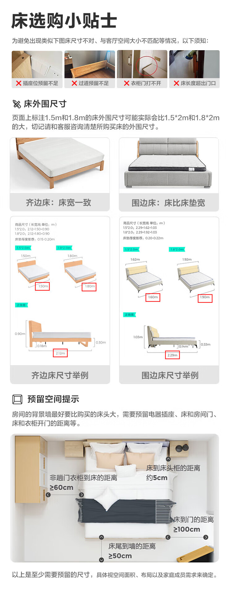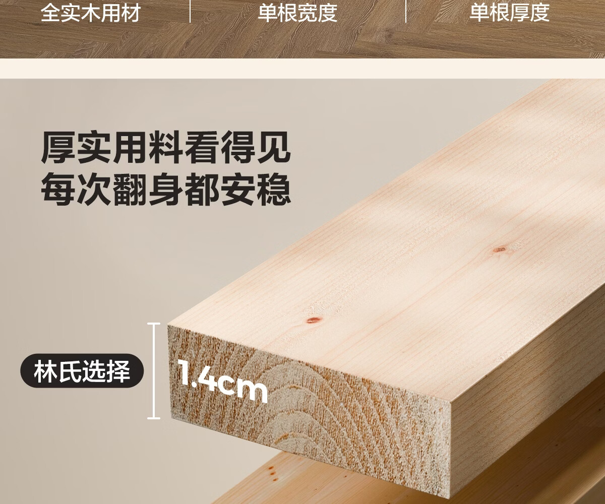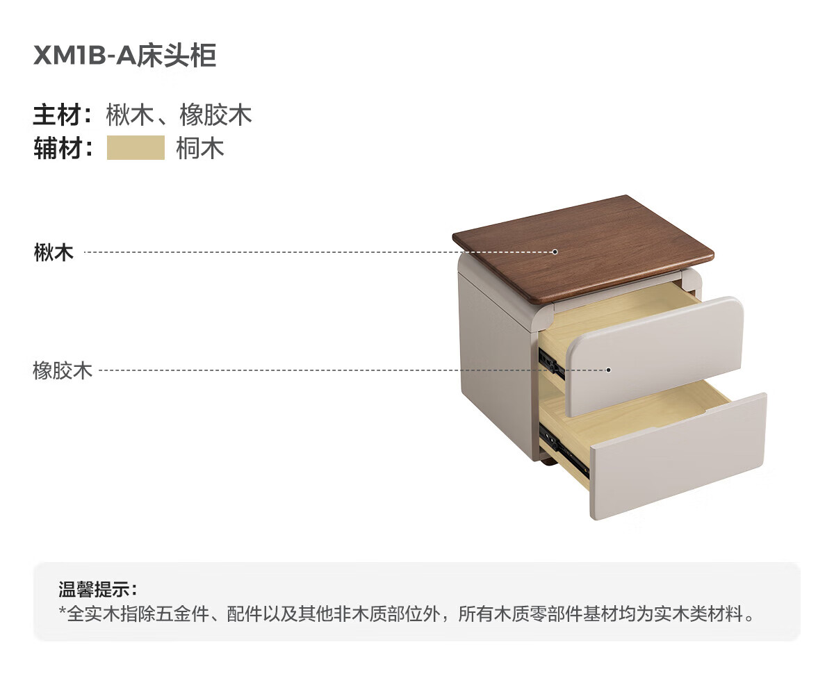 林氏家居中古奶油风实木床复古真皮软包床1米8双人床家具序楸系列XM1A 排骨架【楸木】软包实木床 1.5米x2米
