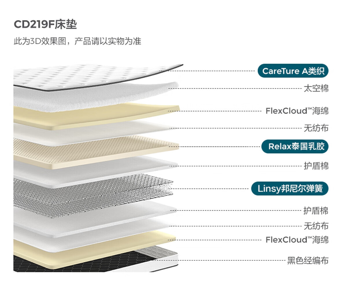 喜临门城市爱情极光白2S 椰棕床垫 邦尼尔弹簧床垫 1.5x2米 偏硬