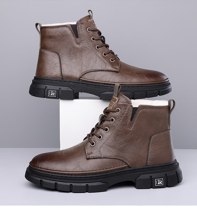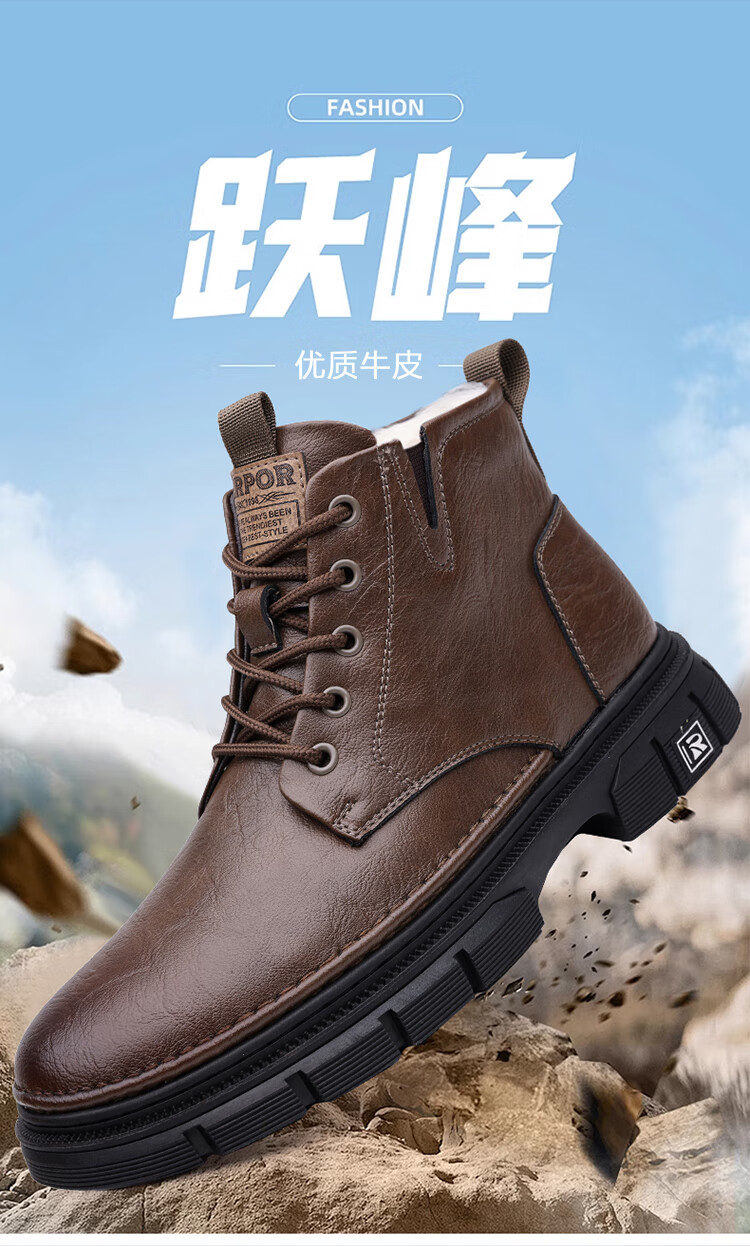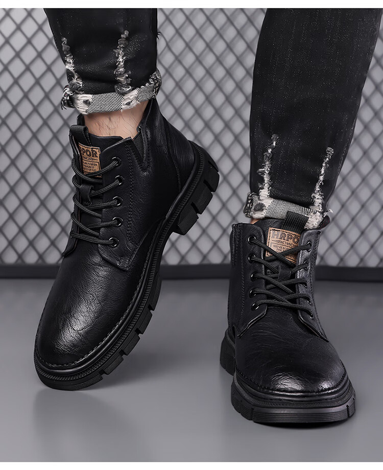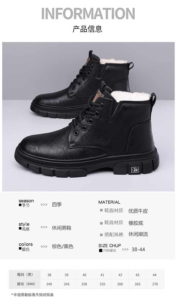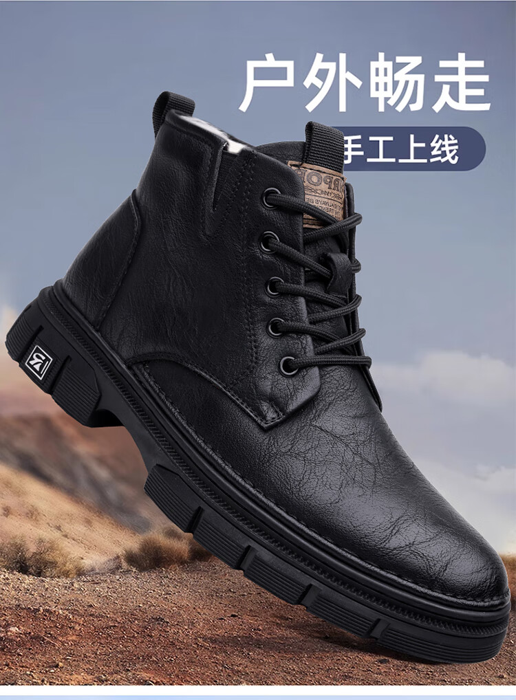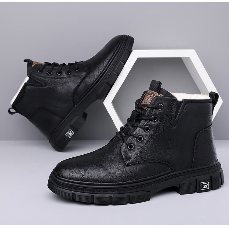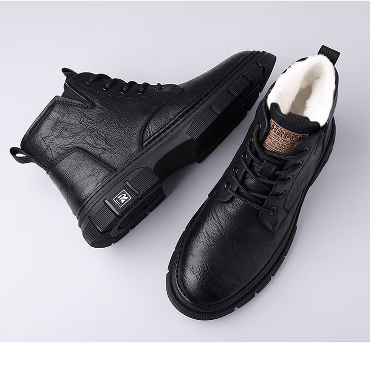 稻草人(MEXICAN)男鞋2026新款冬季加绒保暖马丁靴男士靴子真皮羊毛高帮棉鞋 黑色 9265 44