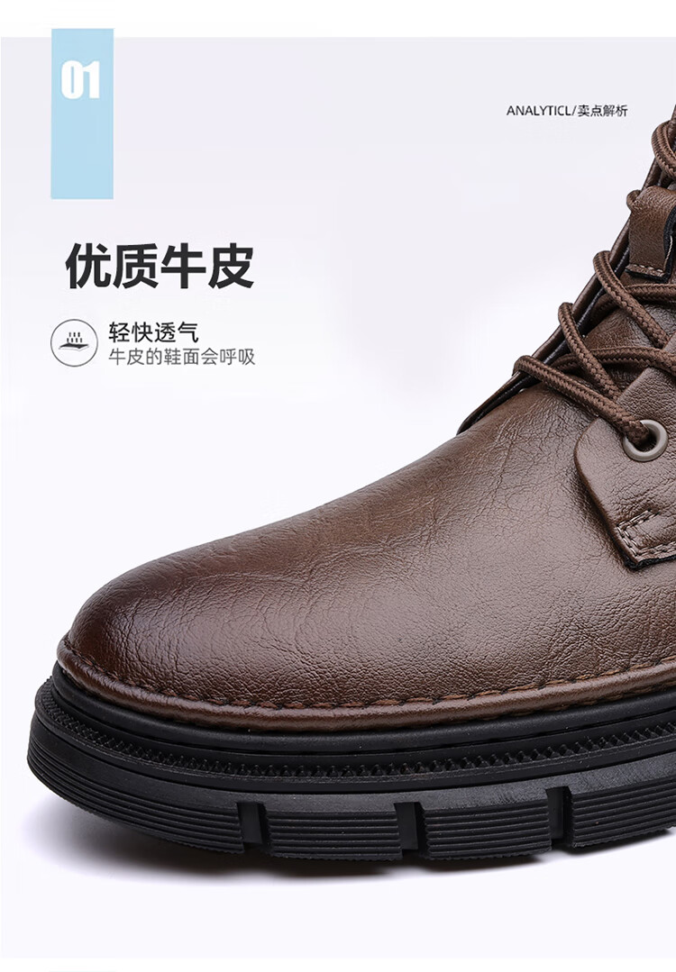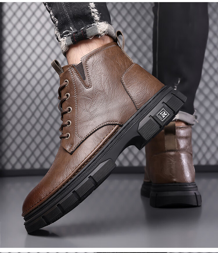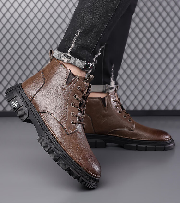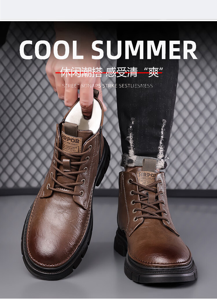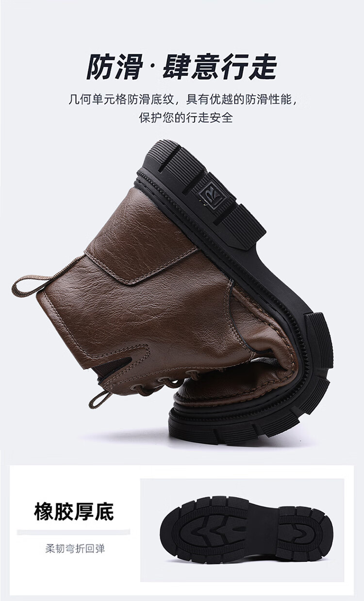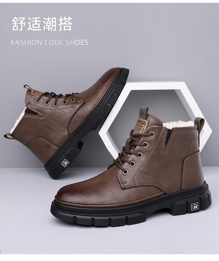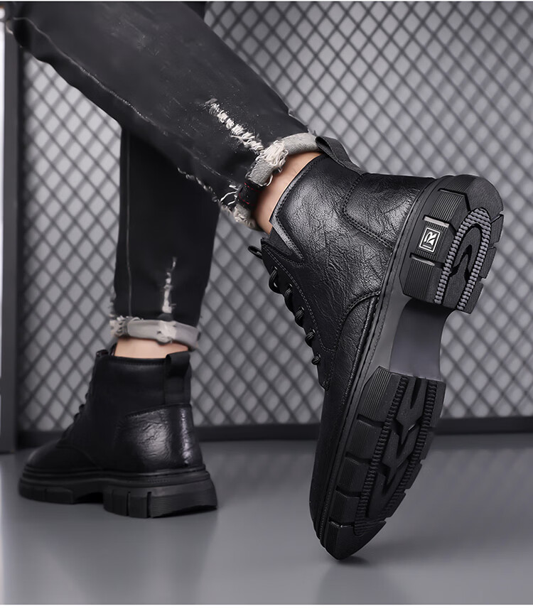 稻草人(MEXICAN)男鞋2026新款冬季加绒保暖马丁靴男士靴子真皮羊毛高帮棉鞋 黑色 9265 44