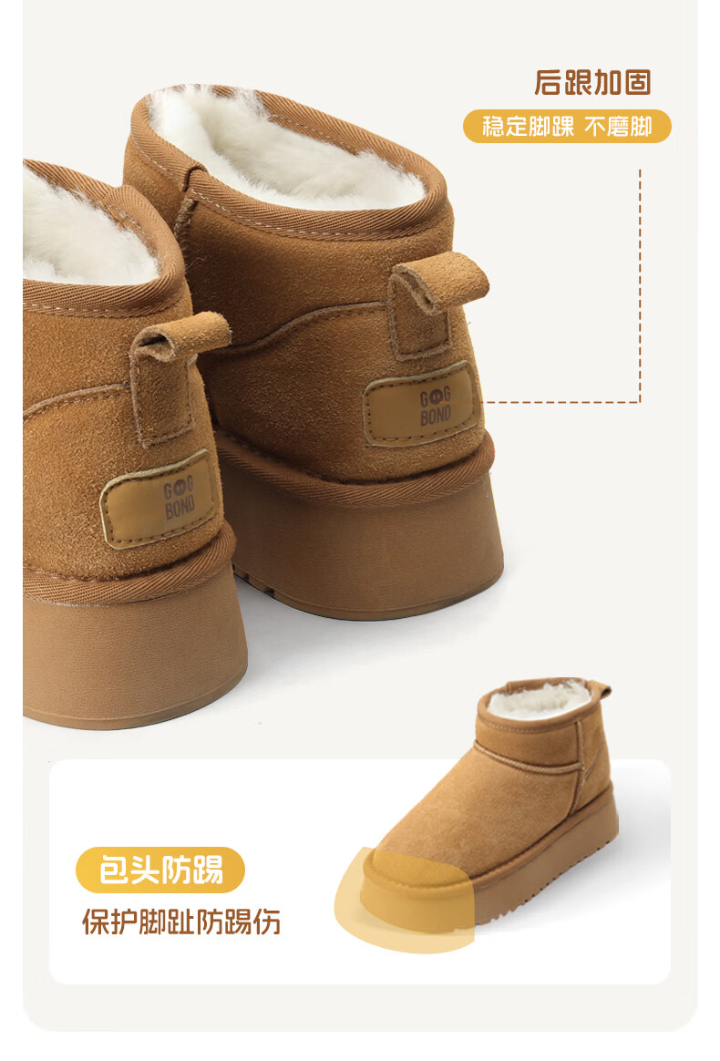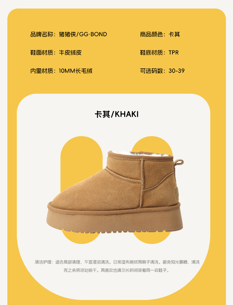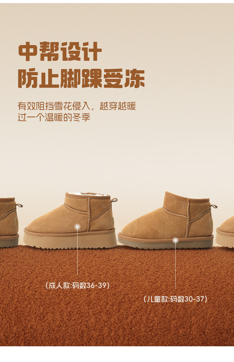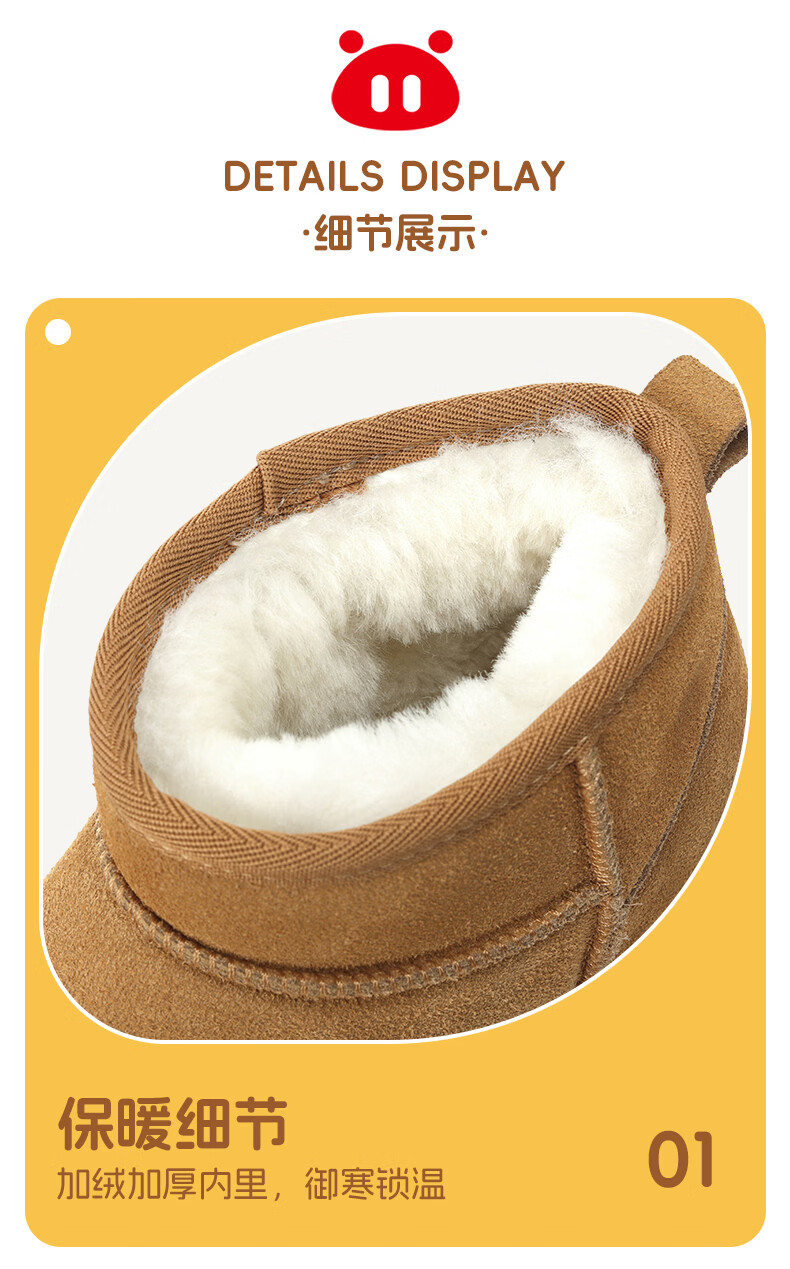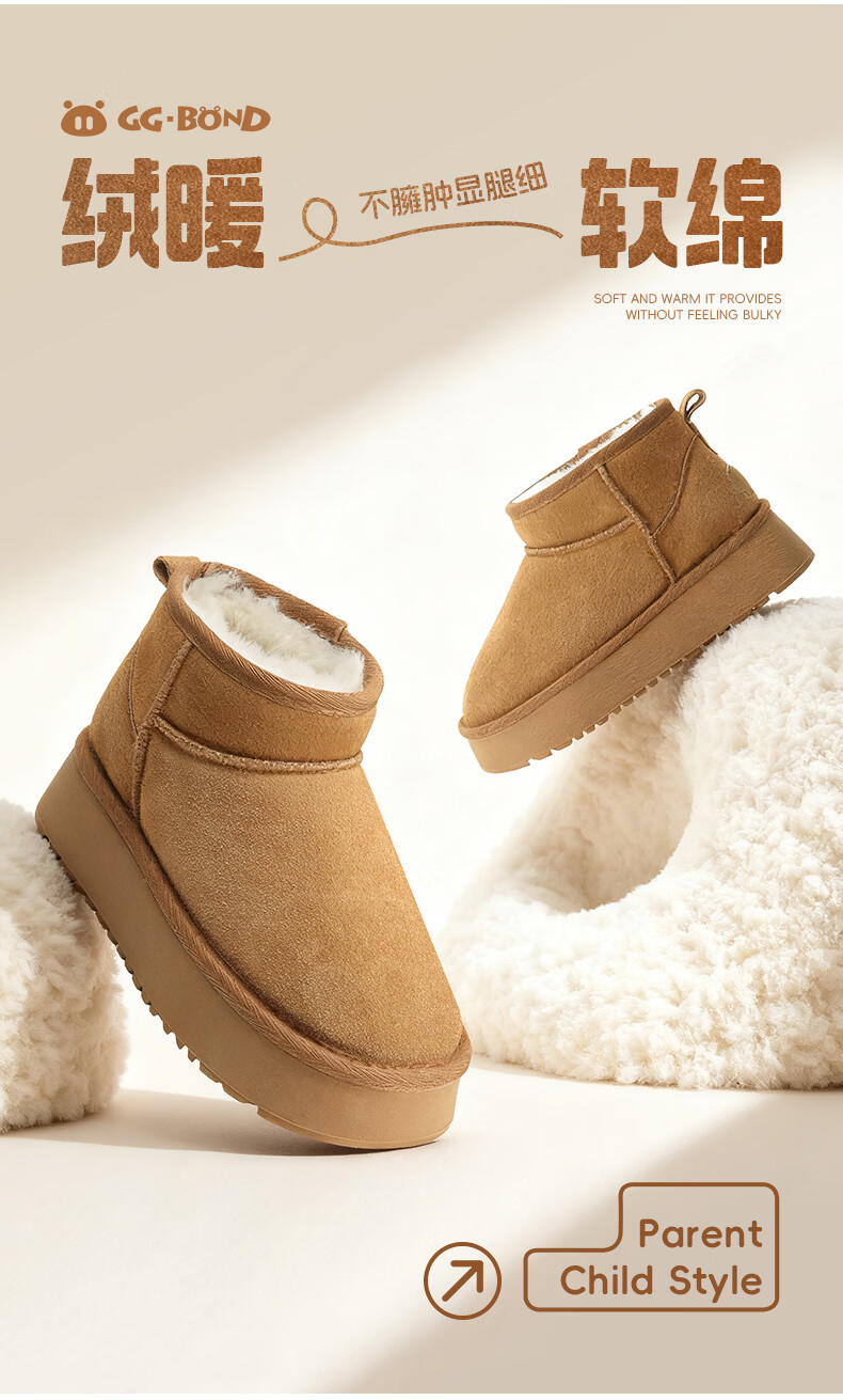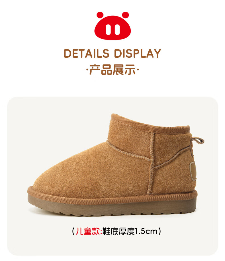 猪猪侠(GG·BOND)儿童反绒皮雪地靴女冬季新款保暖棉鞋亲子款短筒靴 卡其 儿童款 35