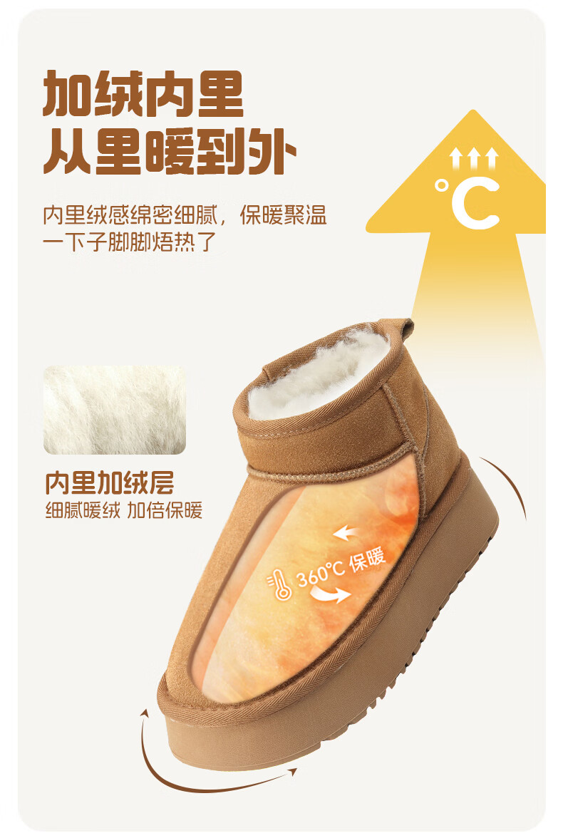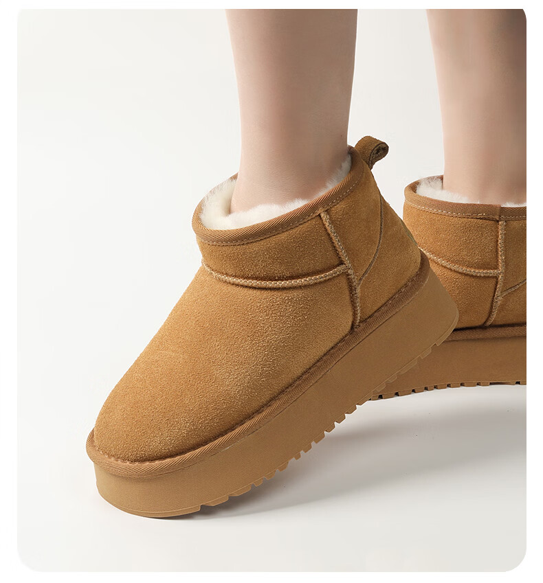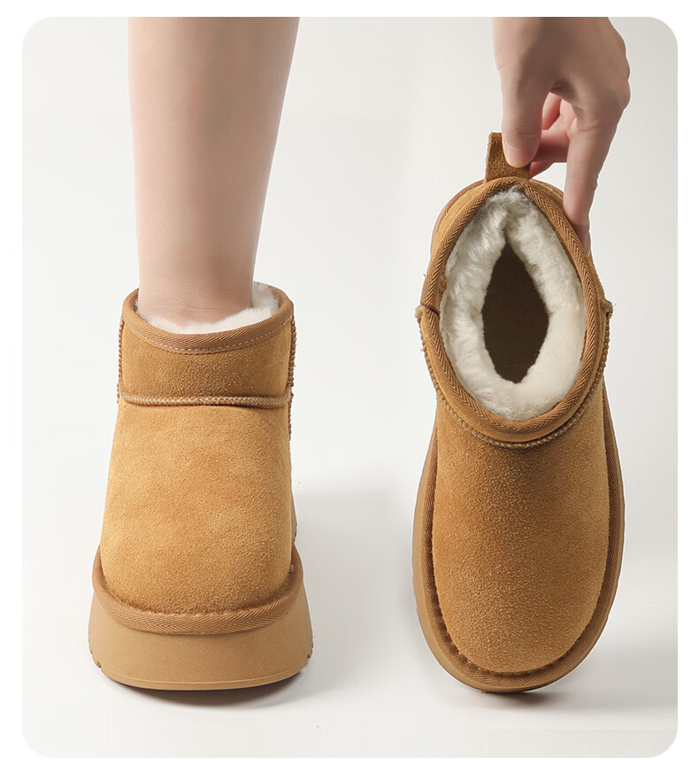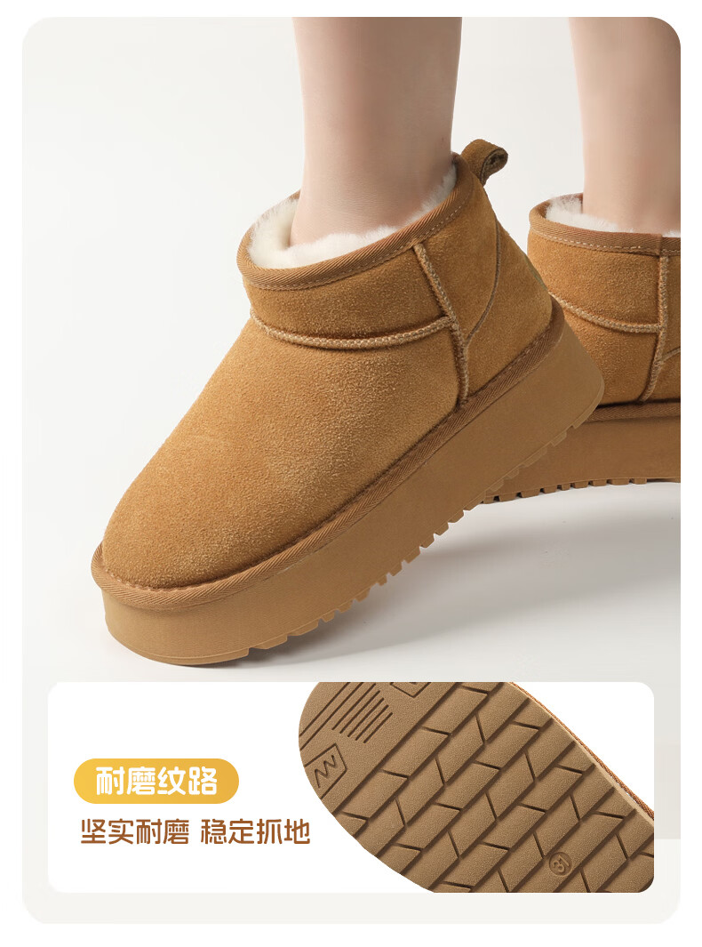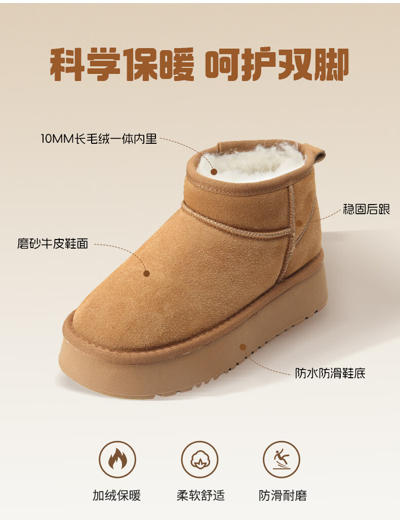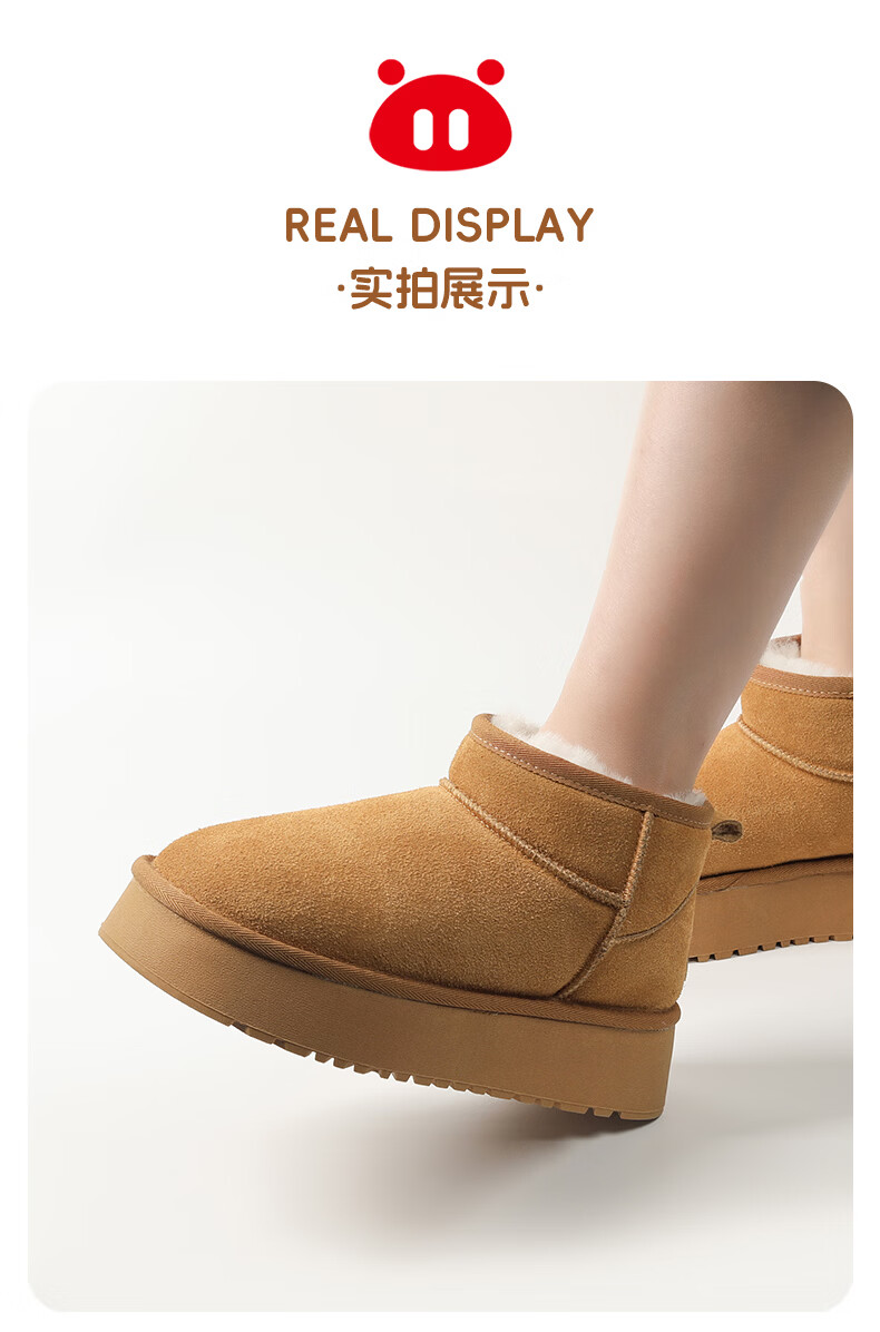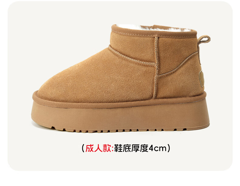 猪猪侠(GG·BOND)儿童反绒皮雪地靴女冬季新款保暖棉鞋亲子款短筒靴 卡其 儿童款 35