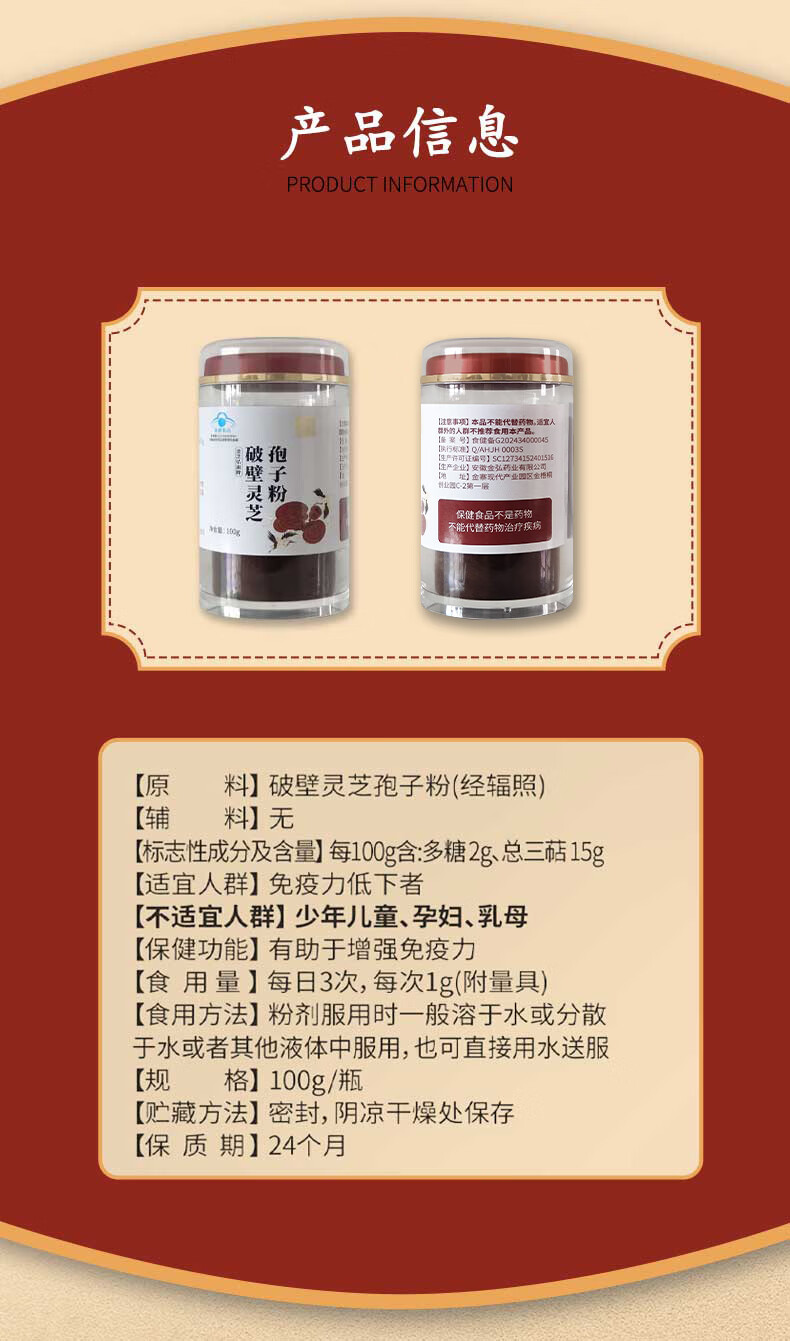金芝弘康破壁灵芝孢子粉营养品补品保健品营养保健100g 1瓶 100g/瓶