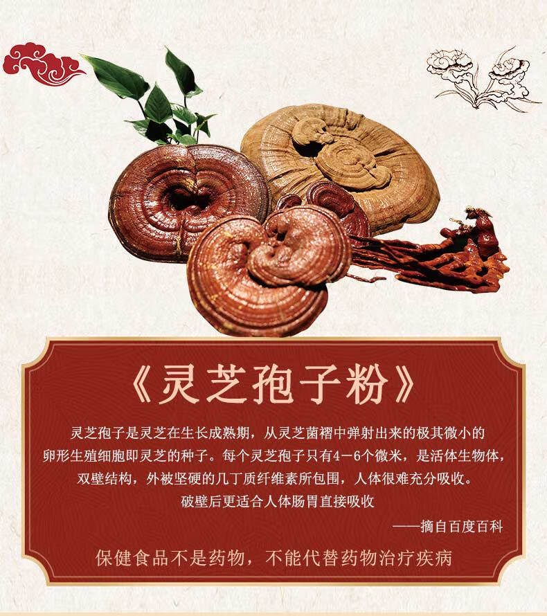 老谷头破壁灵芝孢子粉 长白山灵芝增强免疫力探病年货过年新年礼盒礼品 【2个月量】圆方盒孢子粉120g