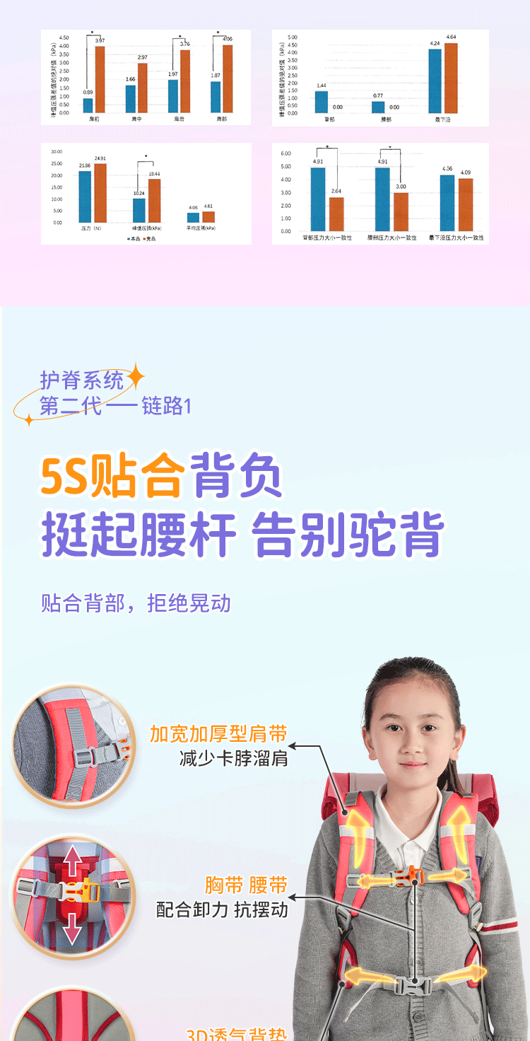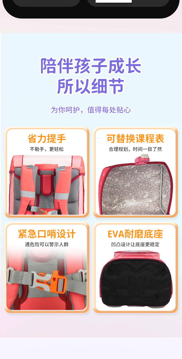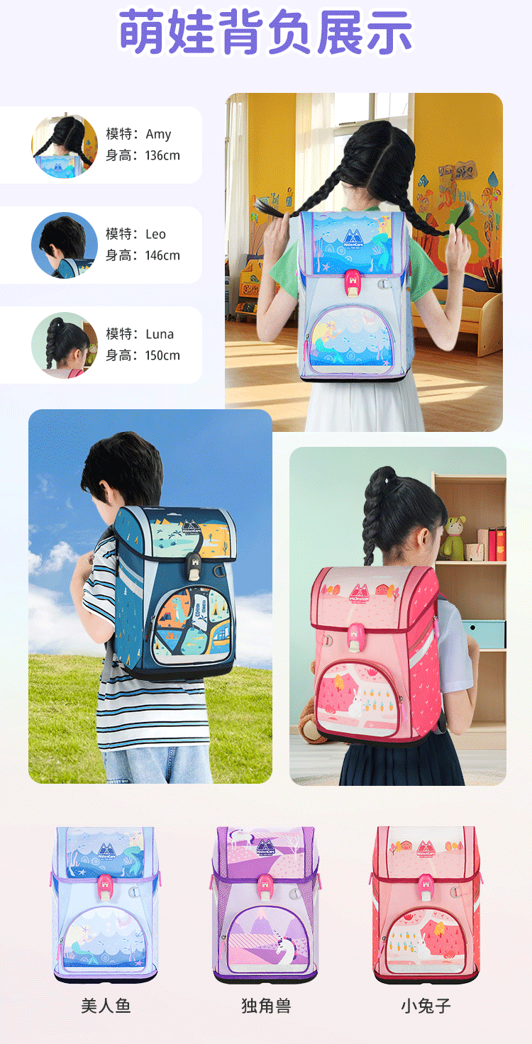 漫步时空书包 小学生1-6年级护脊书包男女孩大容量减负背包 5083 宝蓝色