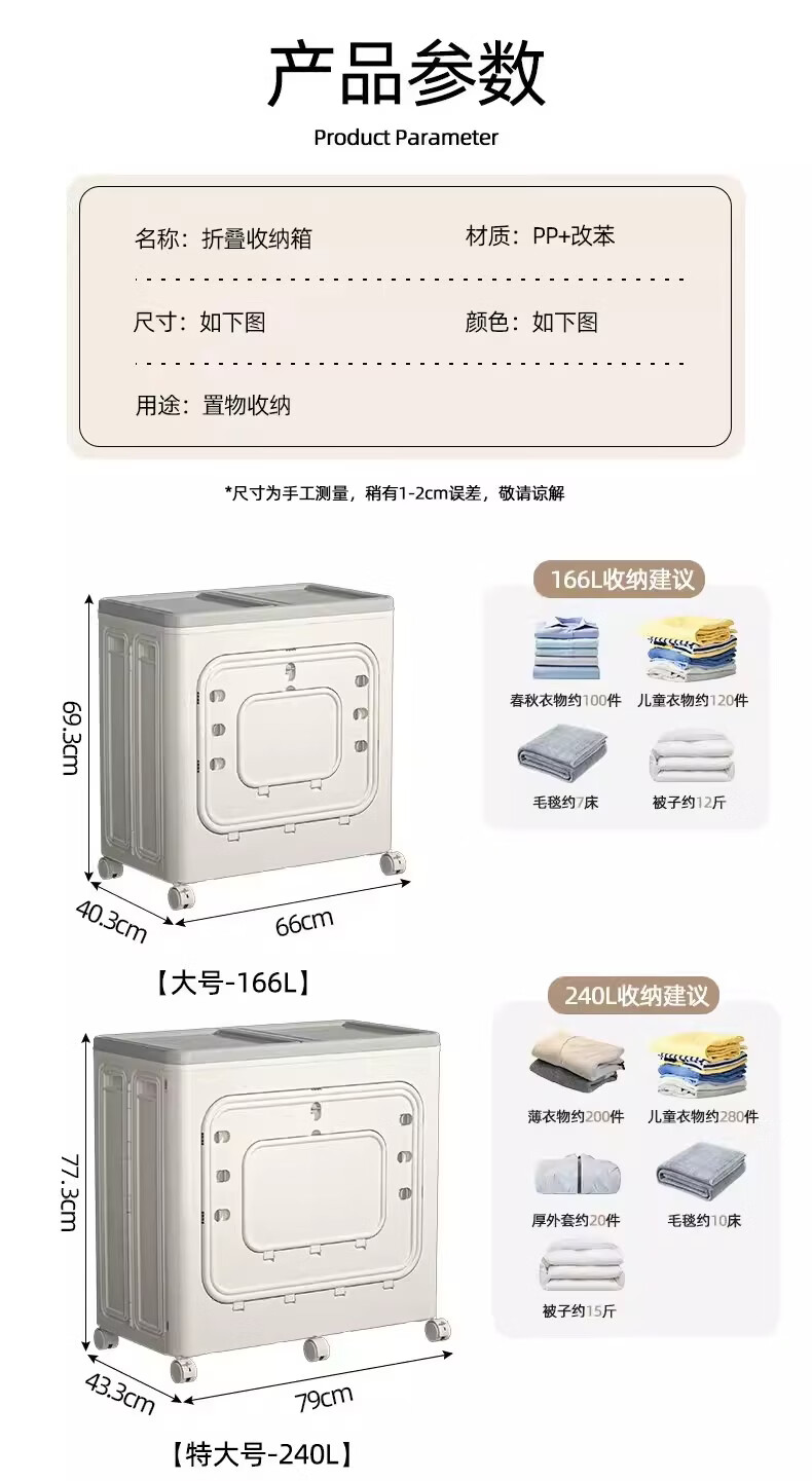 太力牛津布收纳箱 加大加厚材质 防水防尘玩具箱衣服棉被布艺整理折叠 【环保牛津布收纳箱】66L*1个装