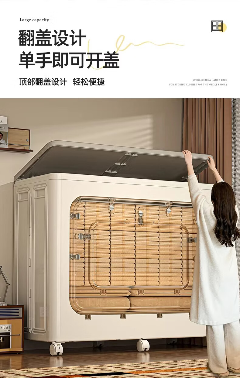 纳份爱衣服收纳箱家用超大容量可折叠翻盖整理箱换季被子衣物储物收纳柜 简约字母-小号 80L【1个装】翻盖设计/可折叠