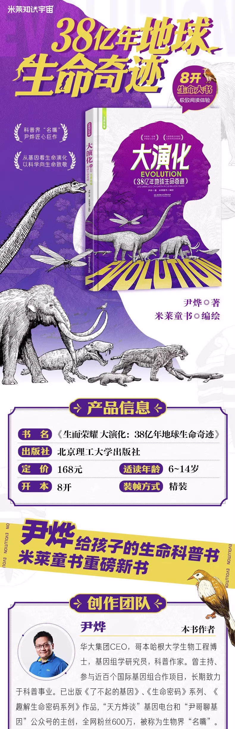 大演化38亿年地球生命奇迹 尹烨著赠海报引入先进基因概念5-14岁孩子的生命演化大百科书籍 大演化:38亿年地球生命奇迹