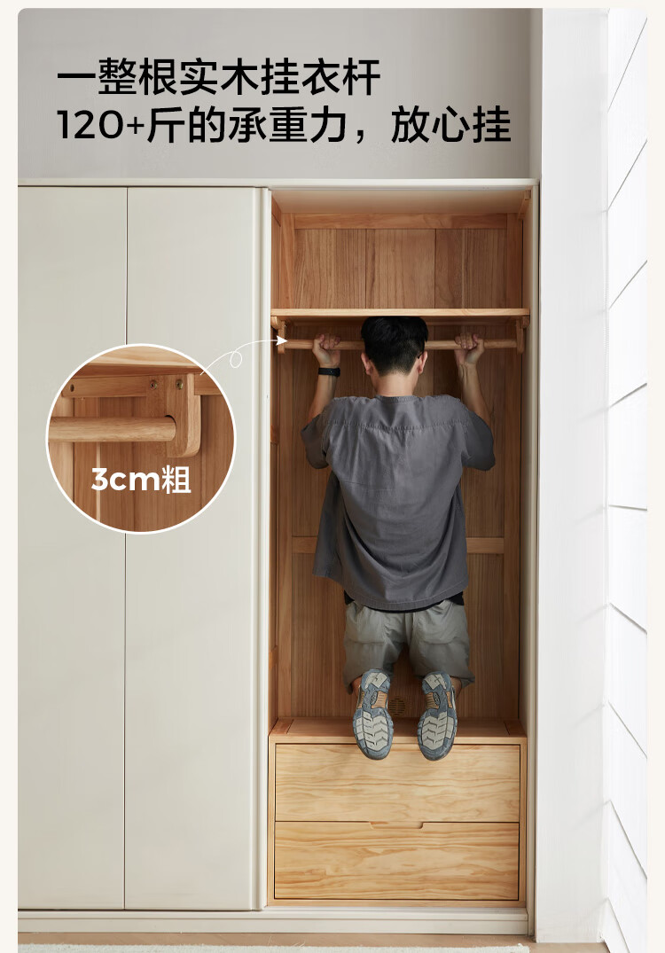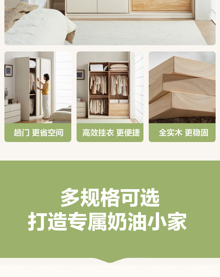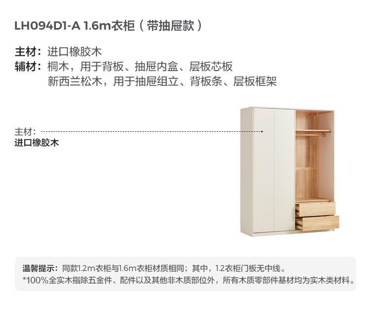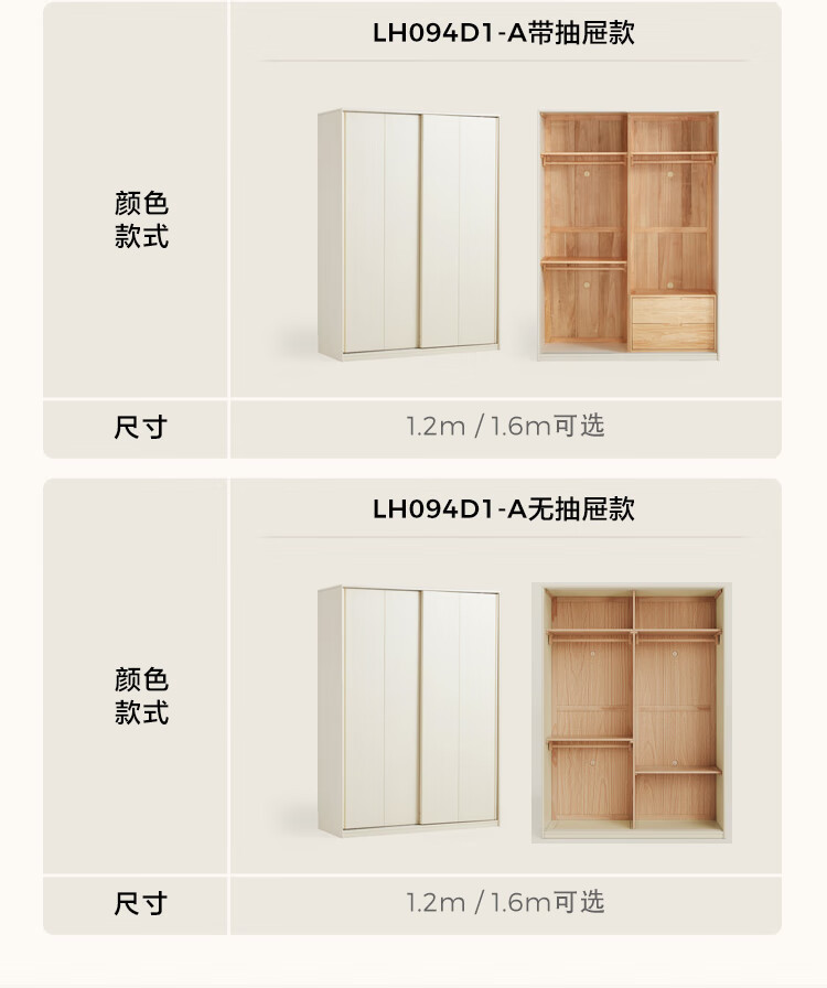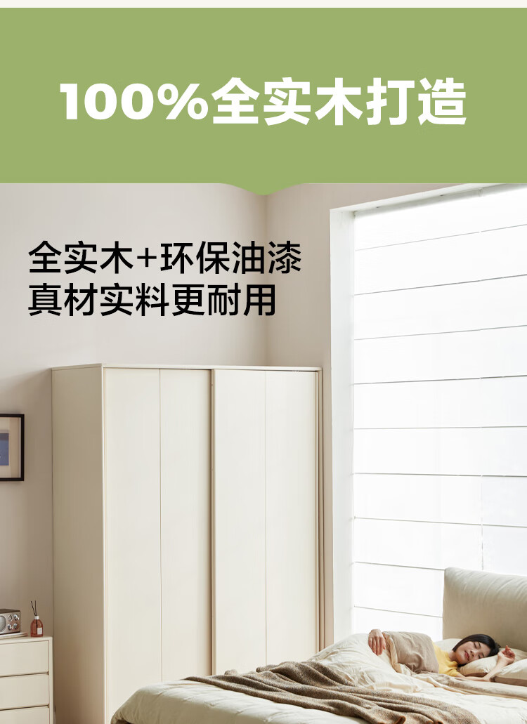 林氏家居奶油风全实木推拉门衣柜家用卧室2025新款木业白月光LH094D1 【1.2m|带抽款】全实木衣柜