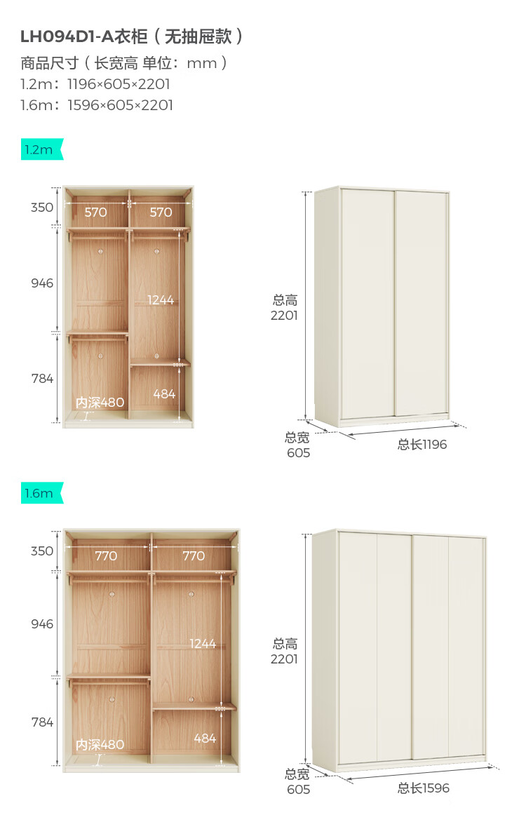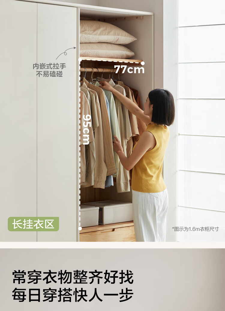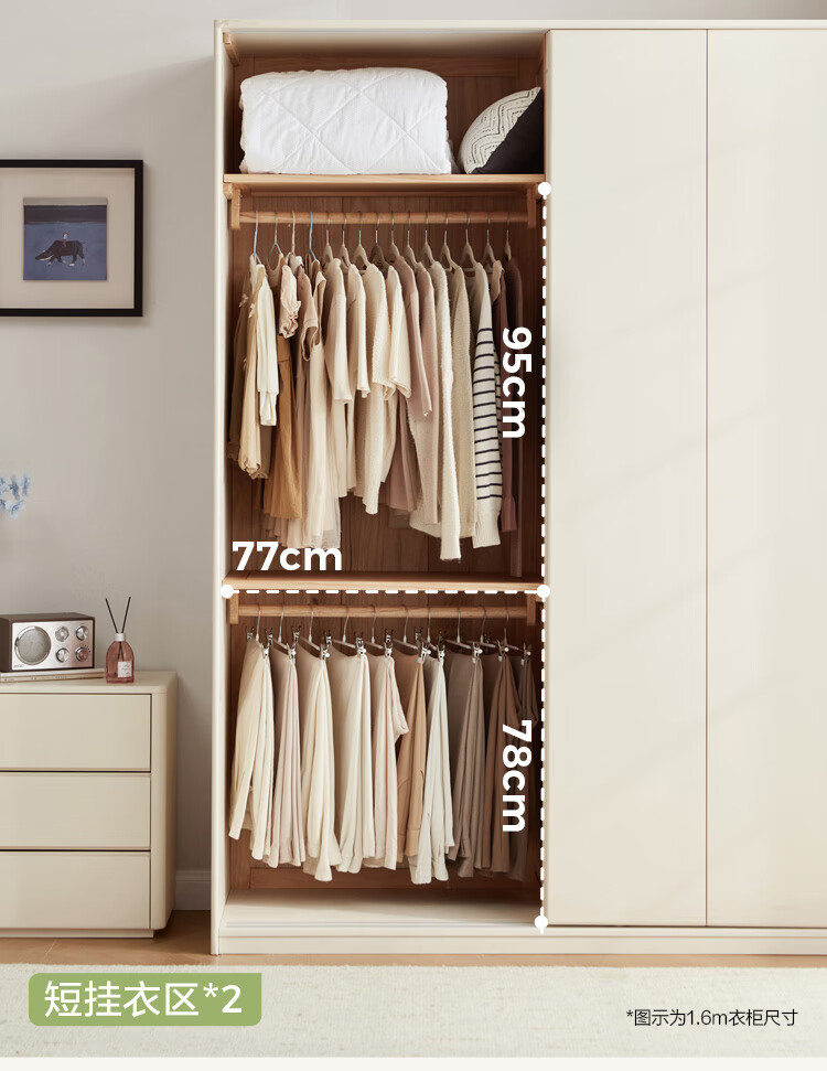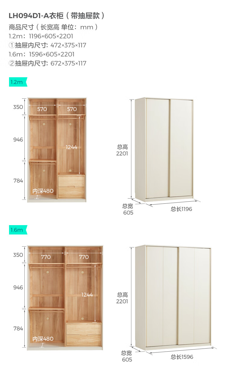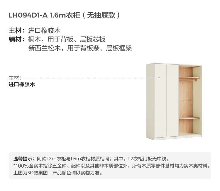 林氏家居奶油风全实木推拉门衣柜家用卧室2025新款木业白月光LH094D1 【1.2m|带抽款】全实木衣柜