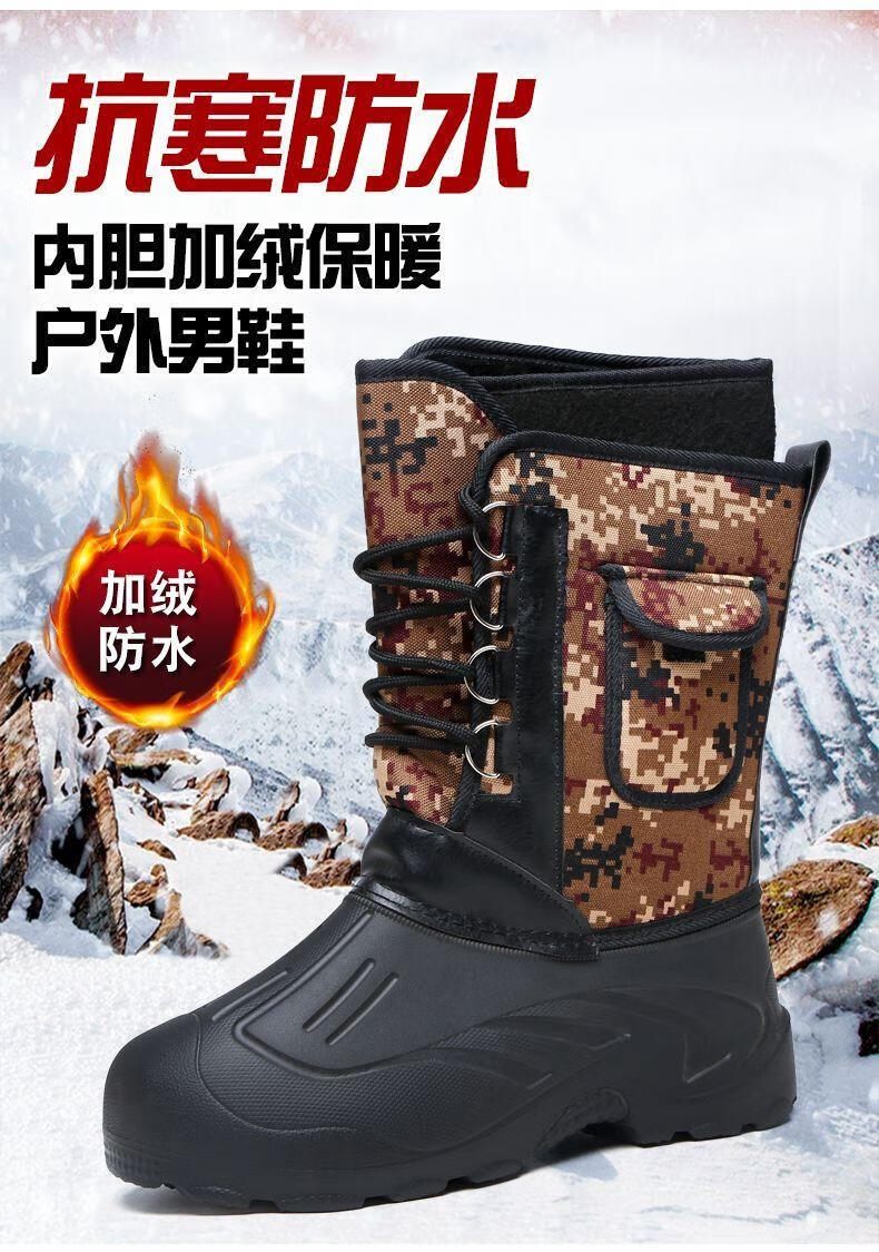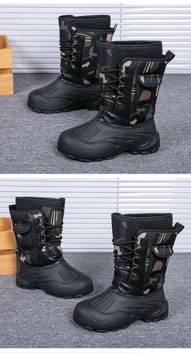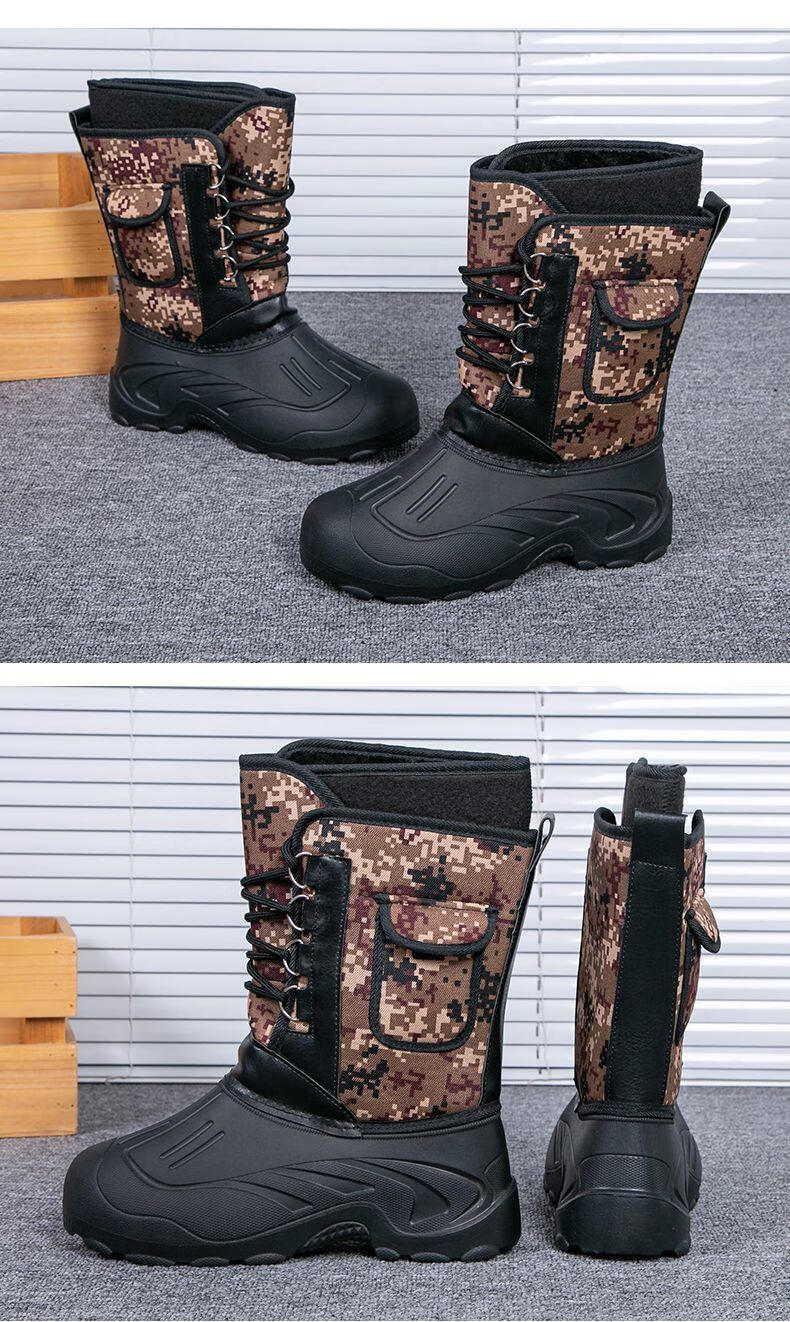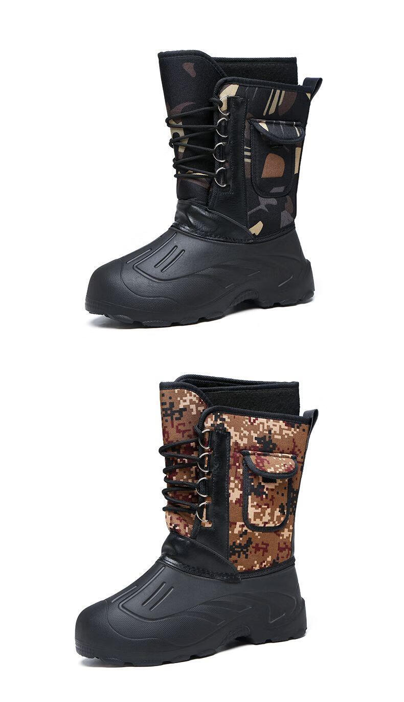 稻草人(MEXICAN)冬季新款加厚钓鱼靴男士防水棉鞋超轻加厚实心底户外防寒鞋 沙漠灰 加厚内胆拍大一码 40