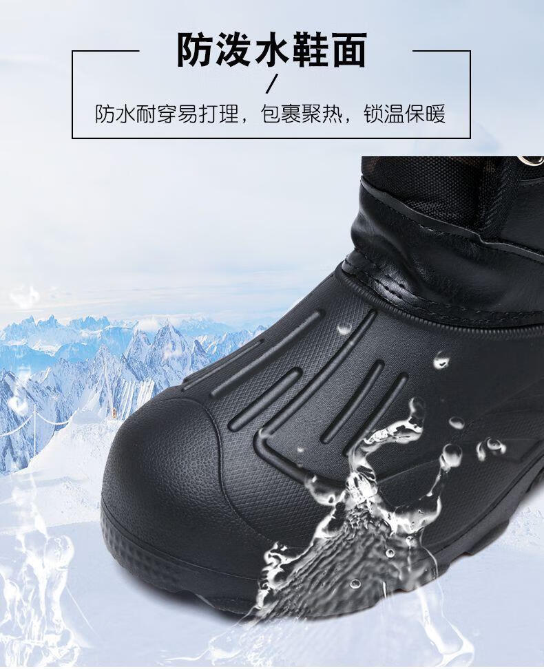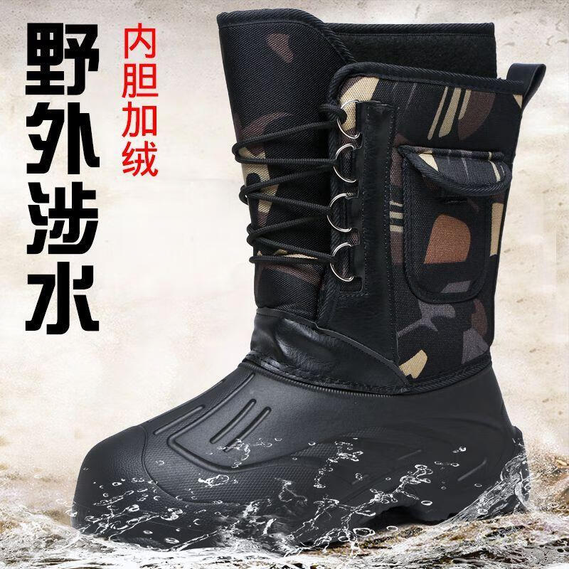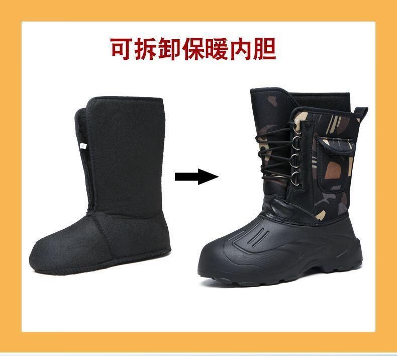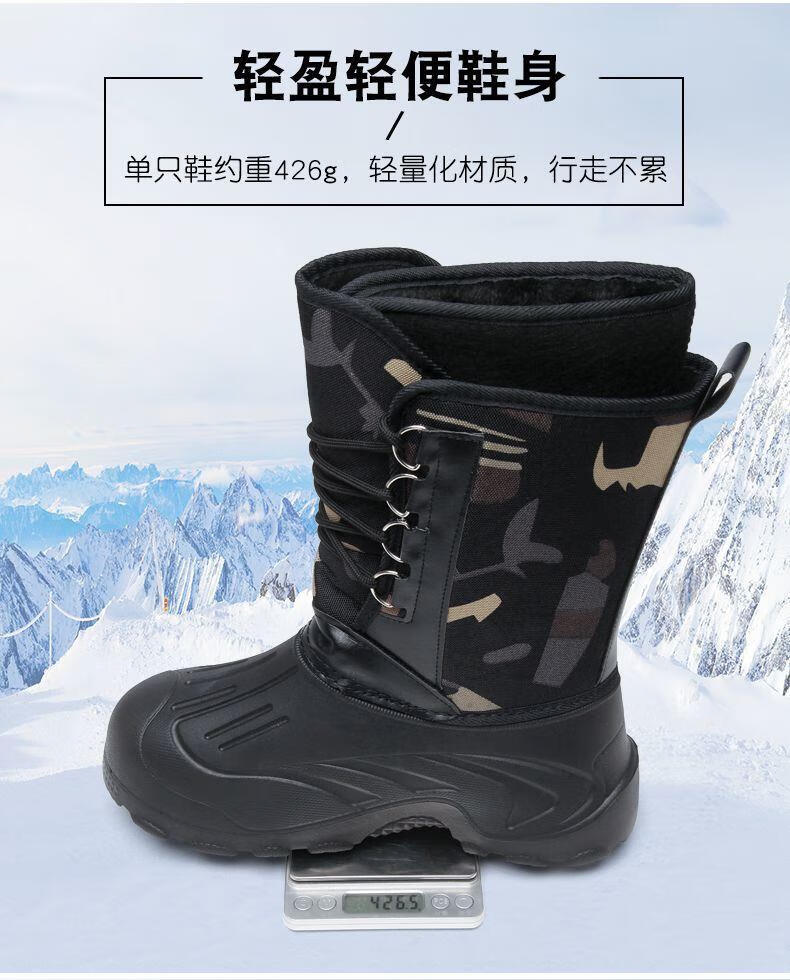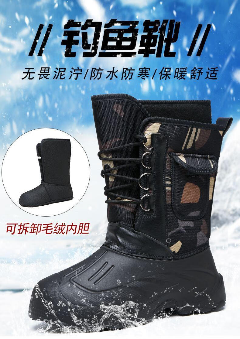 稻草人(MEXICAN)冬季新款加厚钓鱼靴男士防水棉鞋超轻加厚实心底户外防寒鞋 沙漠灰 加厚内胆拍大一码 40