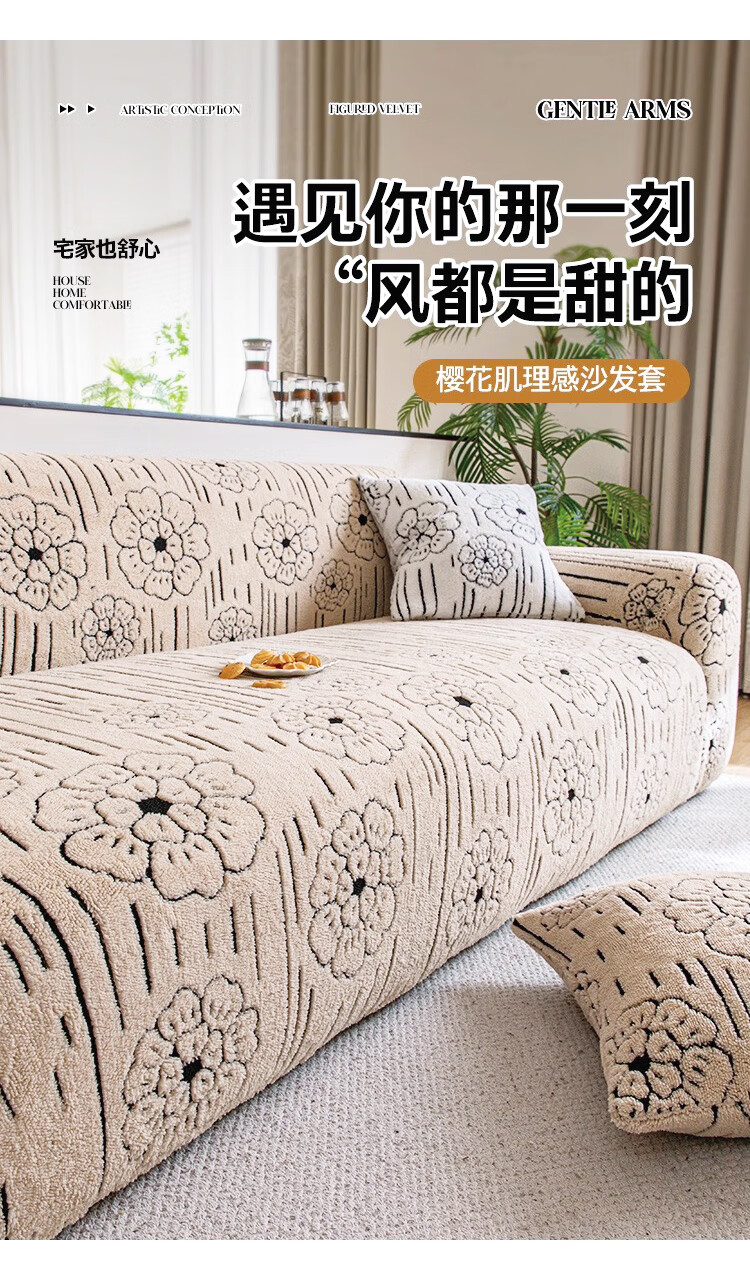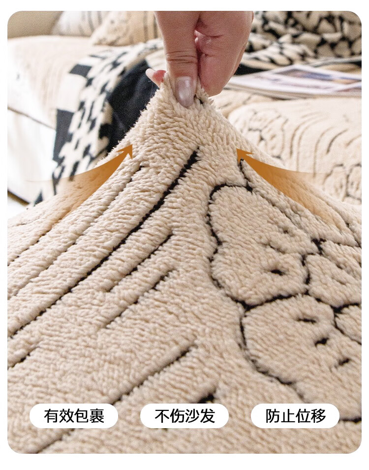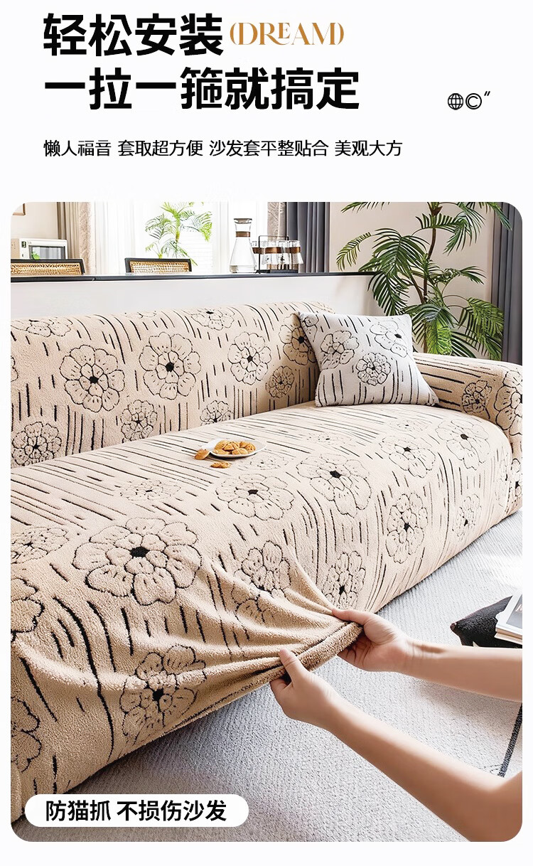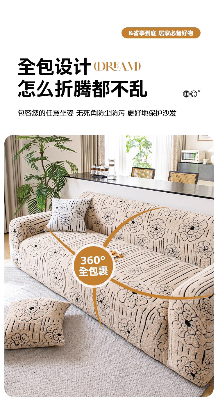金拾美月秋冬加厚毛绒沙发罩全包防猫抓一体式防滑沙发坐垫2026新款盖布 简墨花影-卡其色 全包单人/适用90-140cm建议拍大一码(送抱枕套)