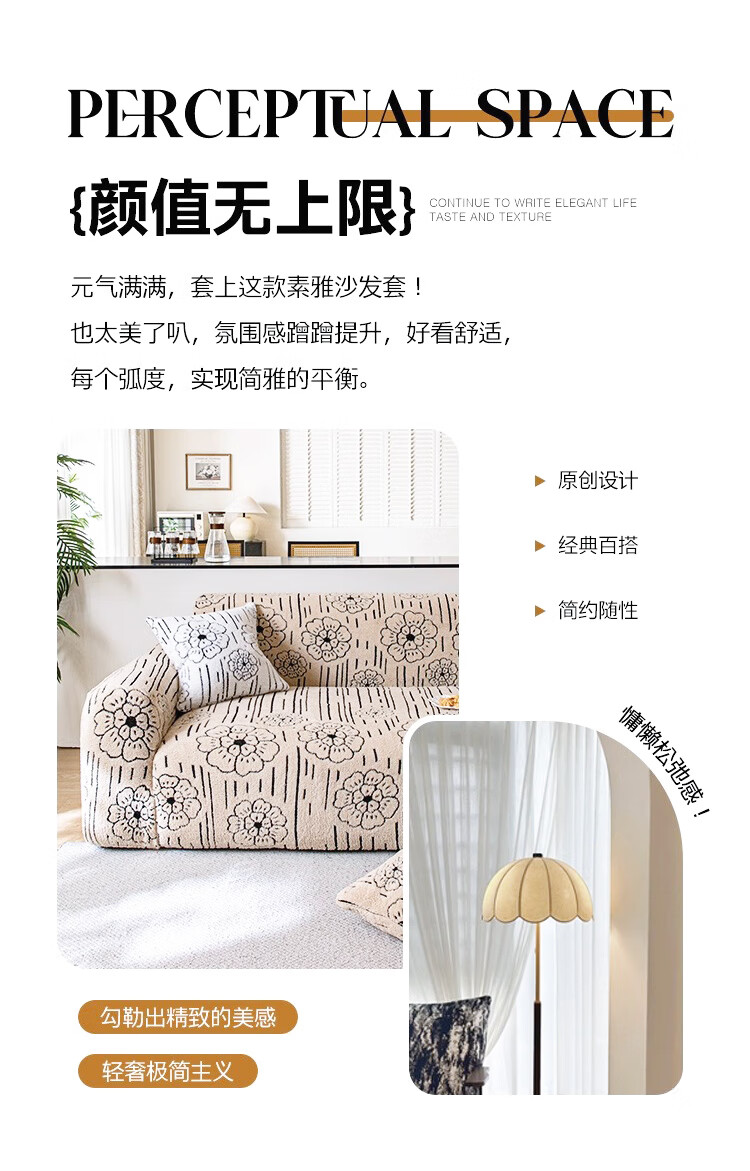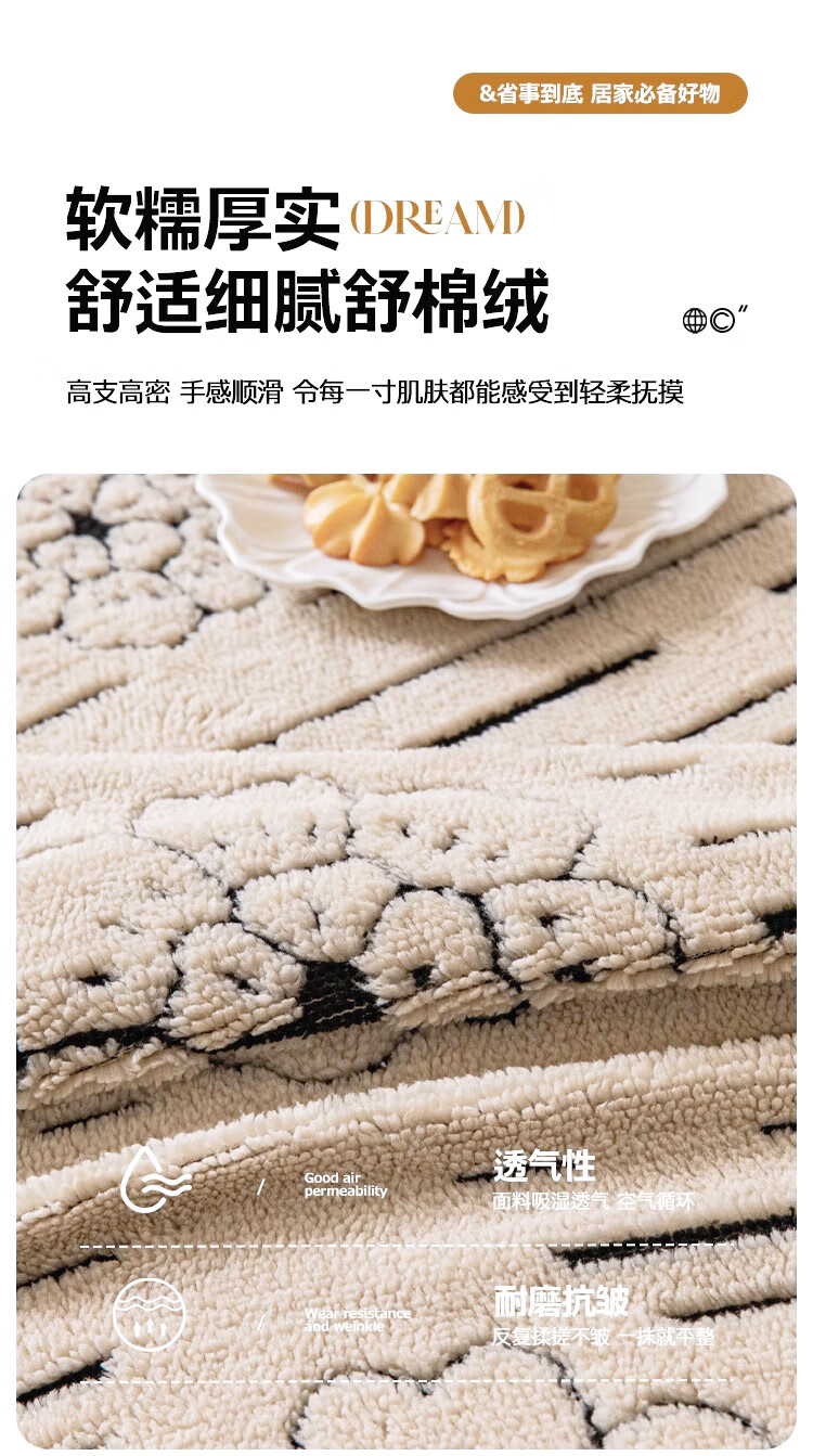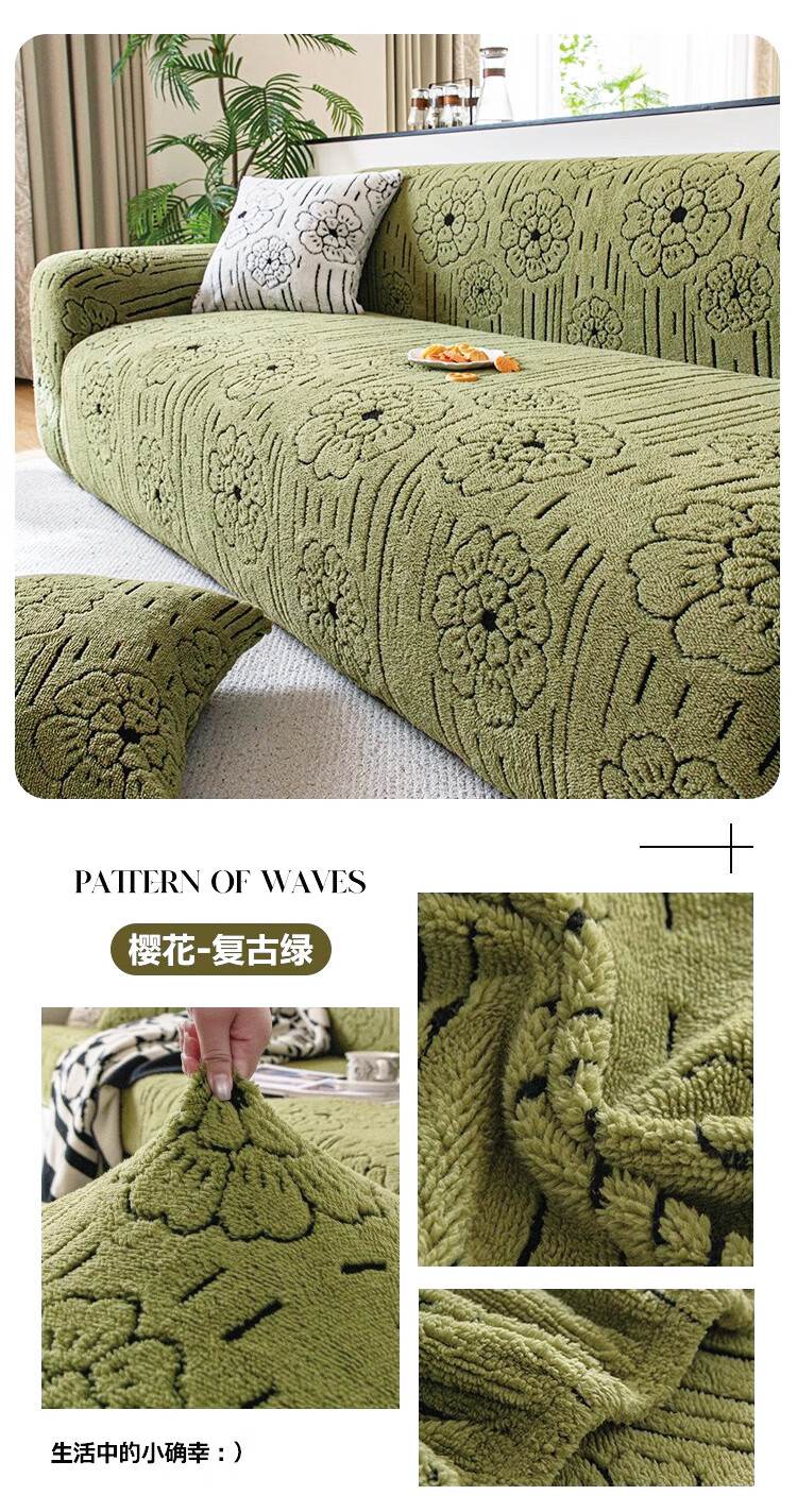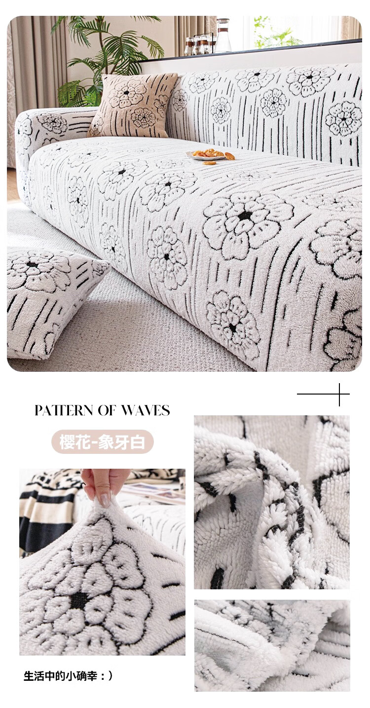金拾美月秋冬加厚毛绒沙发罩全包防猫抓一体式防滑沙发坐垫2026新款盖布 简墨花影-卡其色 全包单人/适用90-140cm建议拍大一码(送抱枕套)