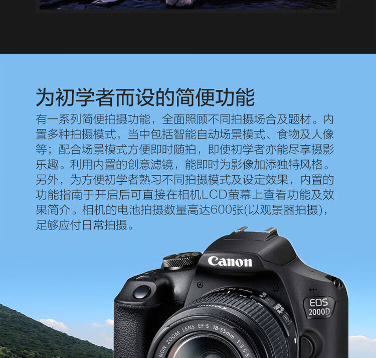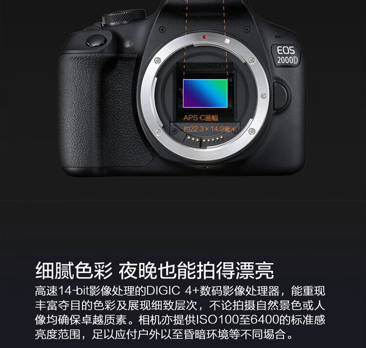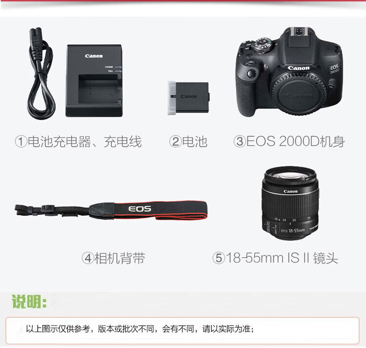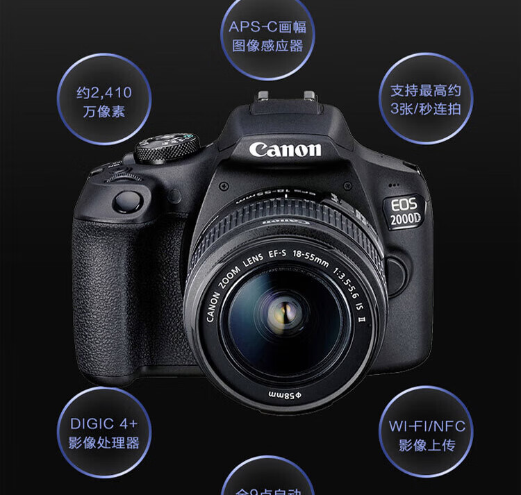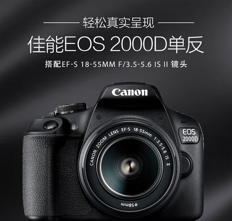 佳能(Canon)EOS 2000D+18-55mm IS II 套机 单反相机 高清性价比优选 初学者学生单反入门 微单 晒单送赠品