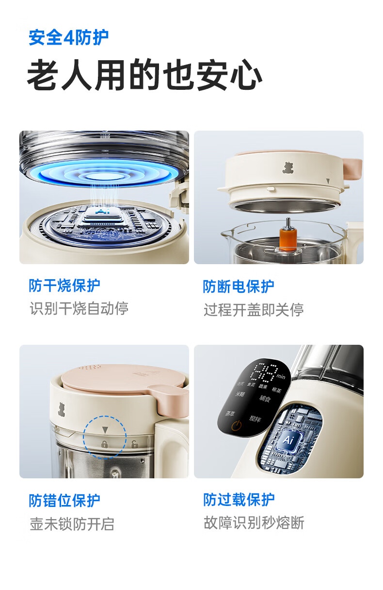 小白熊辅食机料理机婴儿米糊机蒸煮搅拌一体机多功能打泥机6003