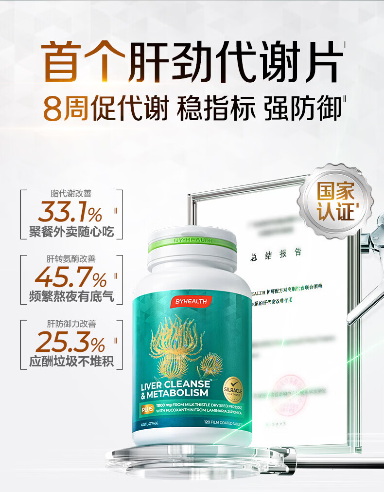 BYHEALTH护肝片二代奶蓟草原装进口水飞蓟净肝解酒护肝转氨酶高脂肪肝损伤 【改善指标】护肝PLUS升级版120粒*2