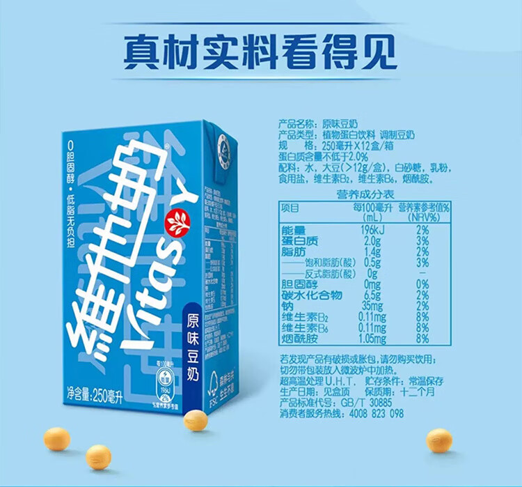 原味豆奶植物蛋白饮料250ml*12盒 营养早餐豆奶 开学季礼盒装