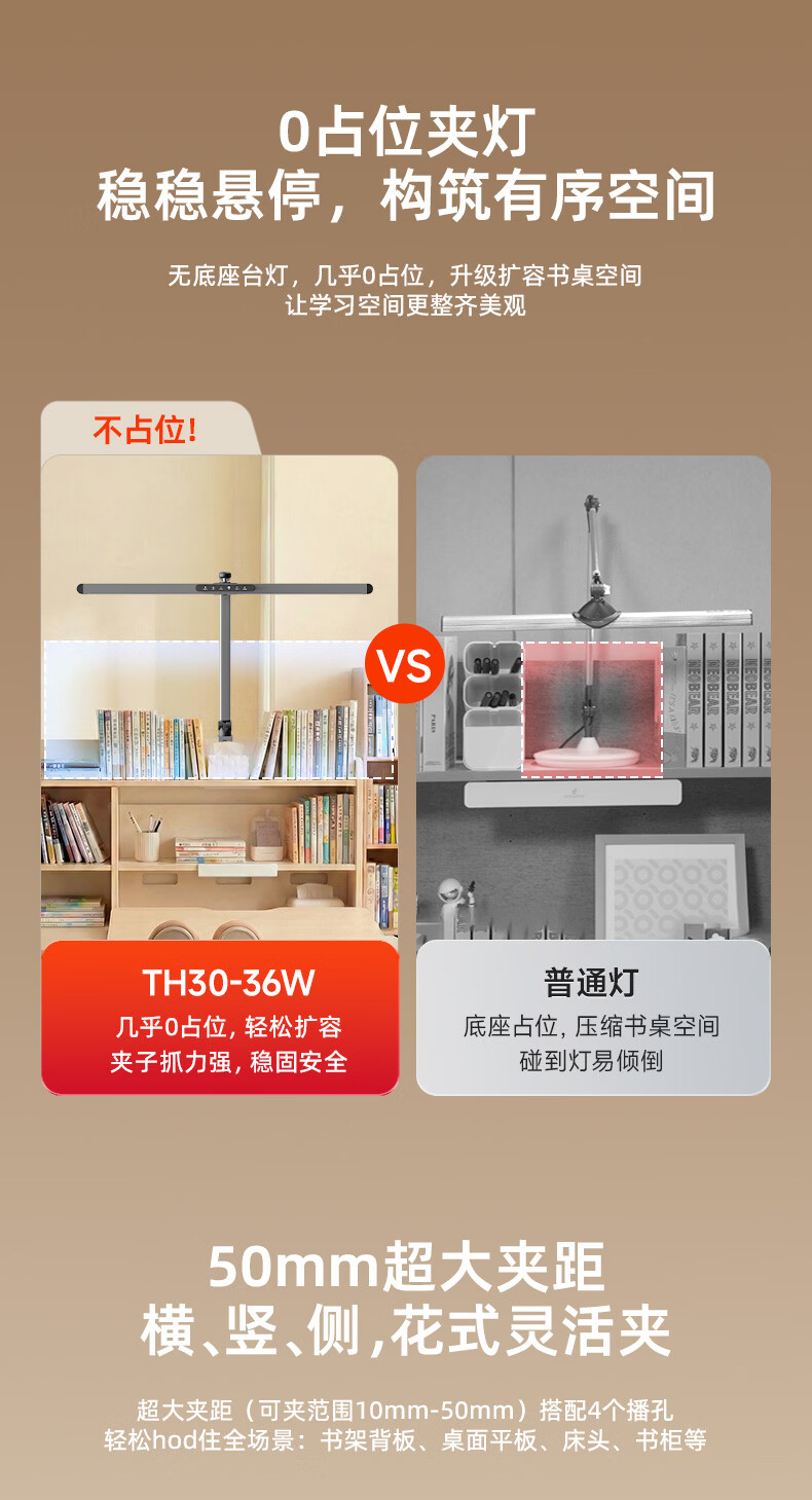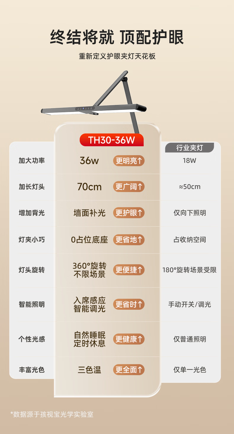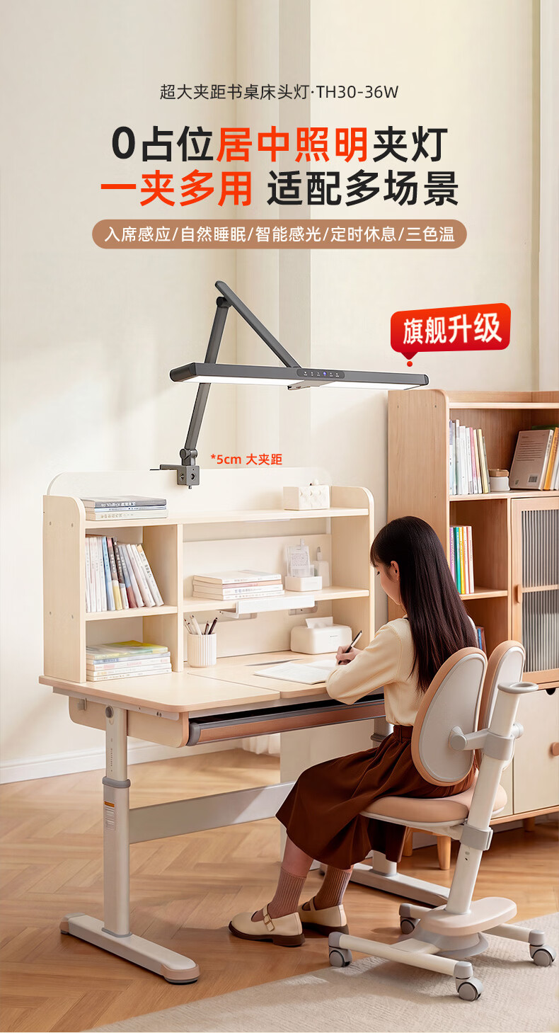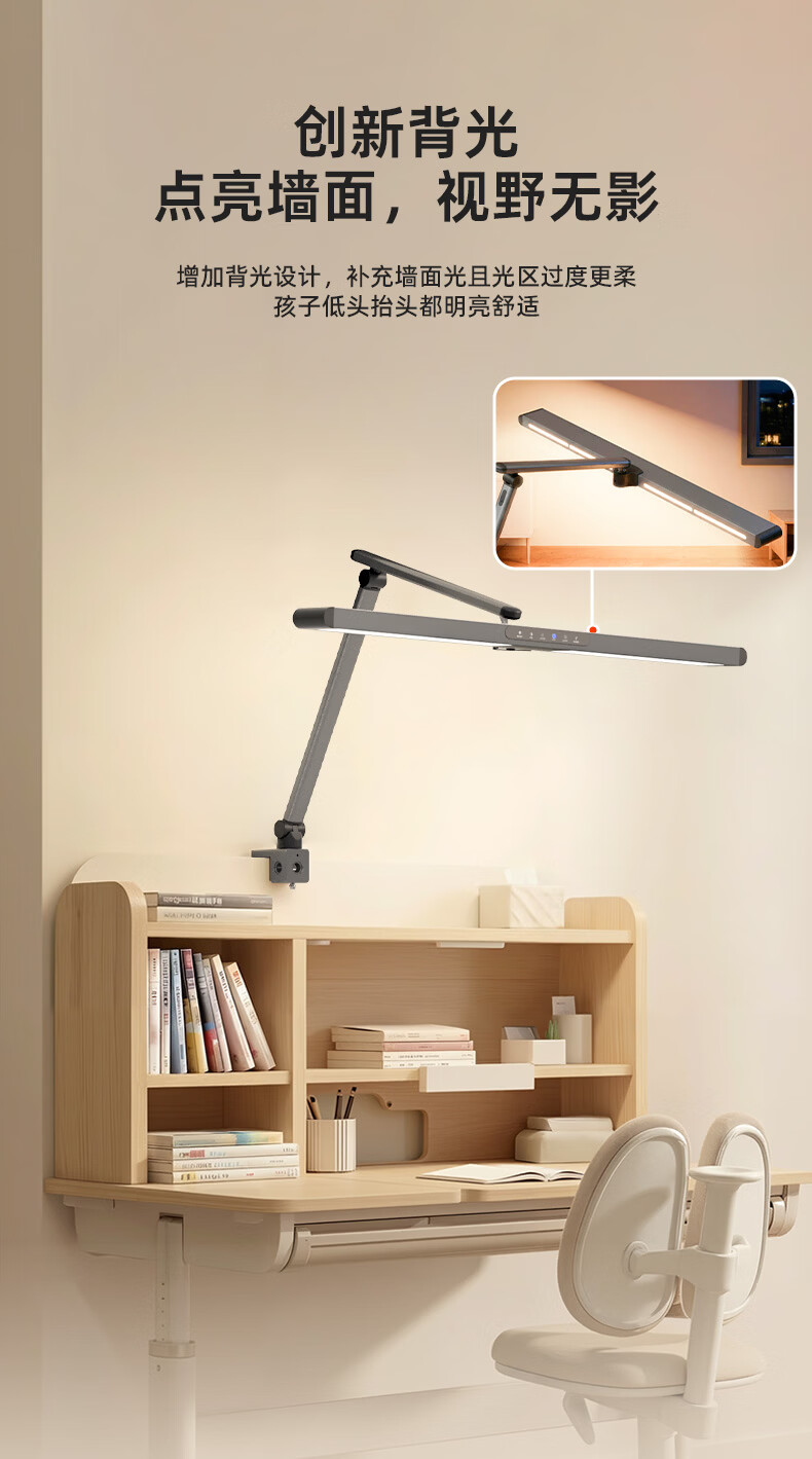 孩视宝夹式护眼台灯书桌大路灯全光谱壁挂可夹两用儿童学生学习阅读灯 【可夹可壁挂】书桌大路灯 TF07-75W-T-1 包安装