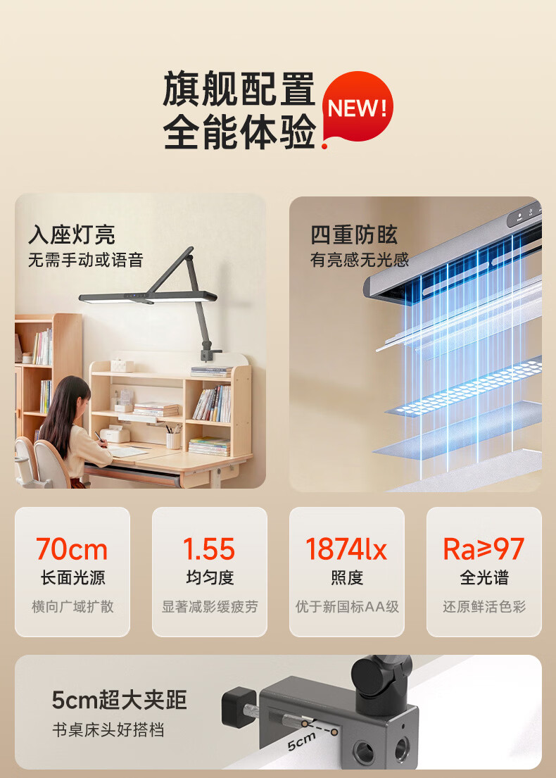 护童(Totguard)护童护眼台灯学生专用防蓝光防近视全光谱大路灯智能阅读灯LD-501 全光谱智能大路灯LD-501