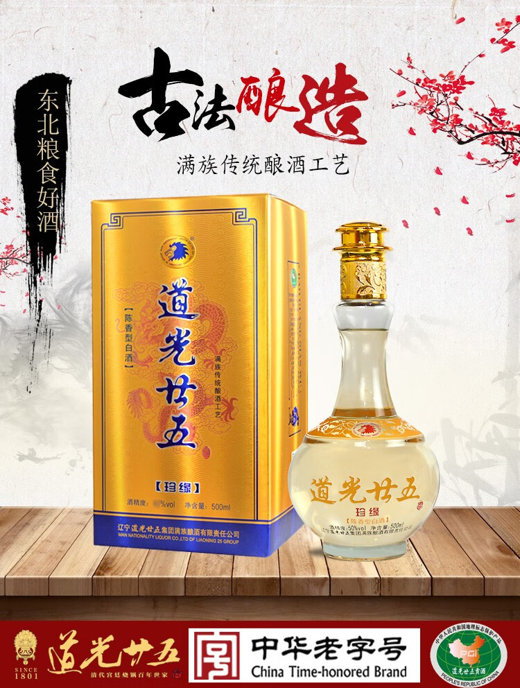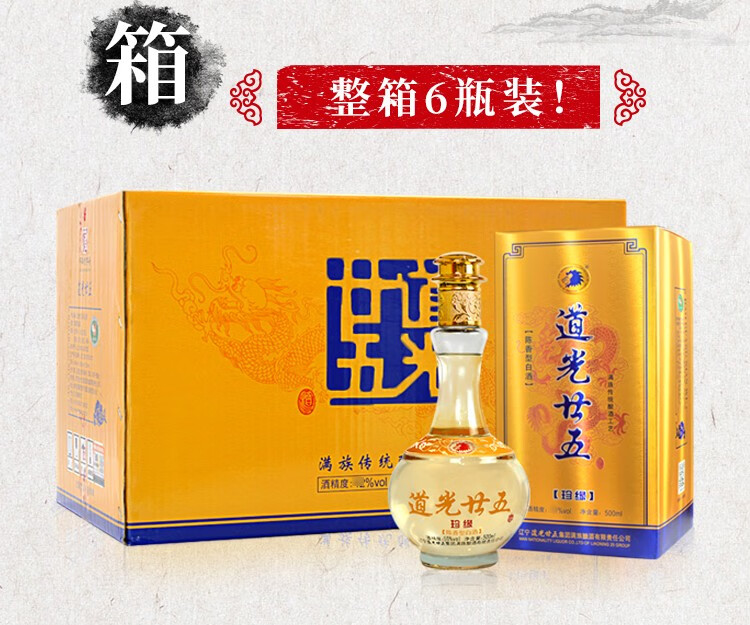 道光廿五珍缘陈香型东北辽宁锦州特产北方粮食高度白酒道光二十五送礼 50度 500mL 6瓶 道光珍缘+3个礼袋
