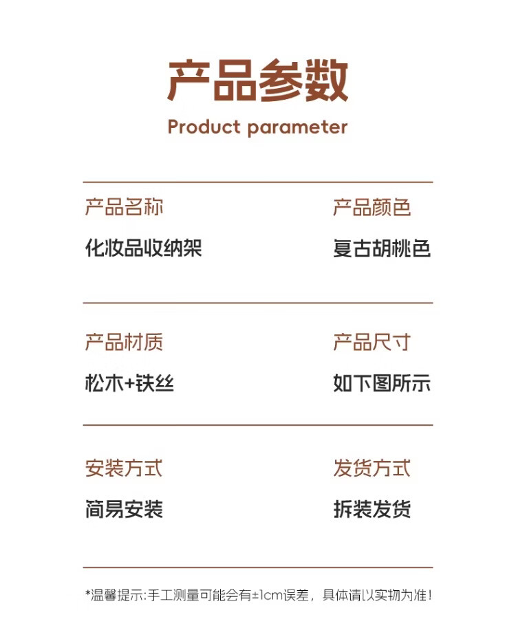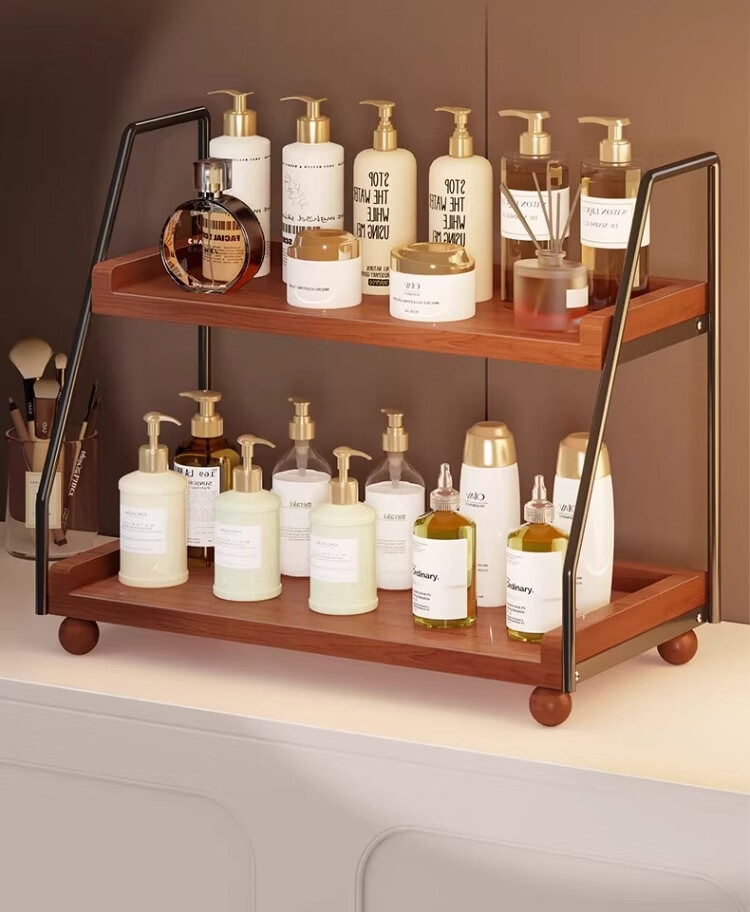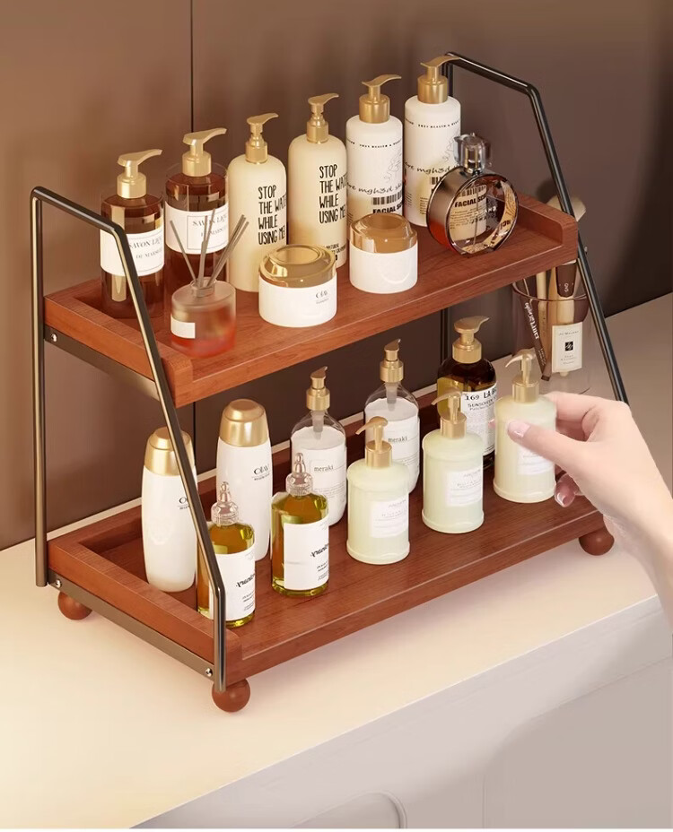 尔思家桌面收纳盒梳妆台化妆品储物架家用复古风香水护肤品分层整理架 复古双层置物架