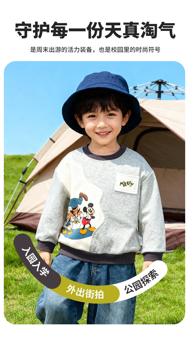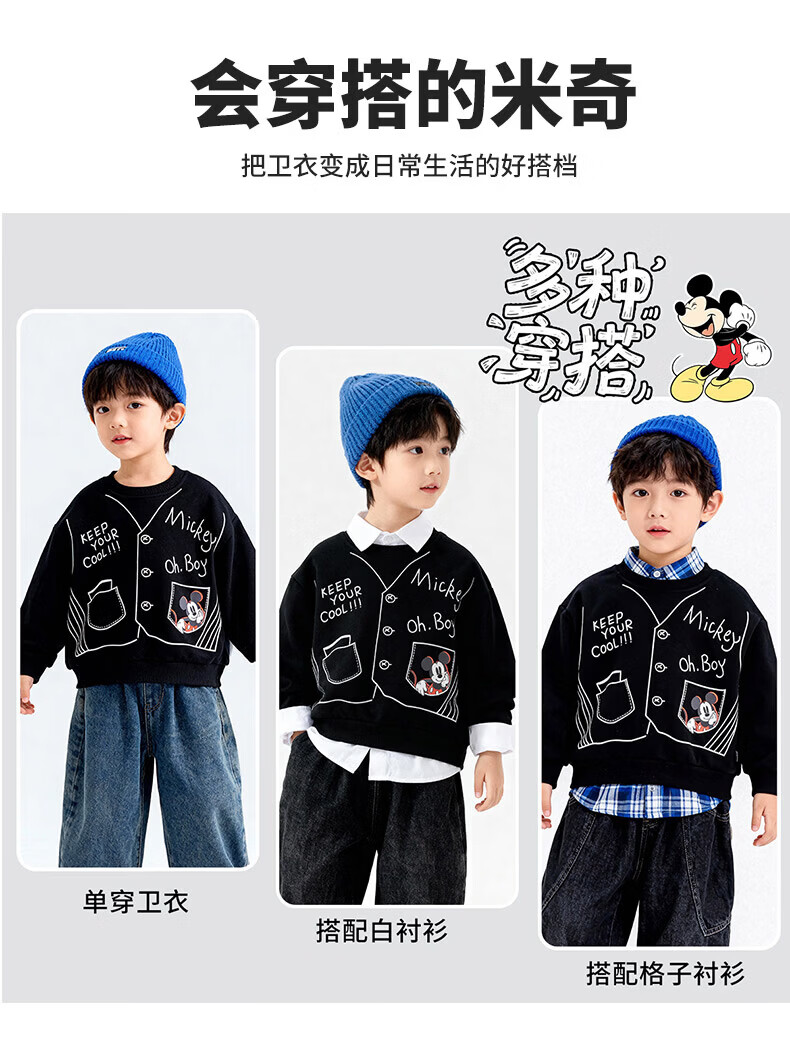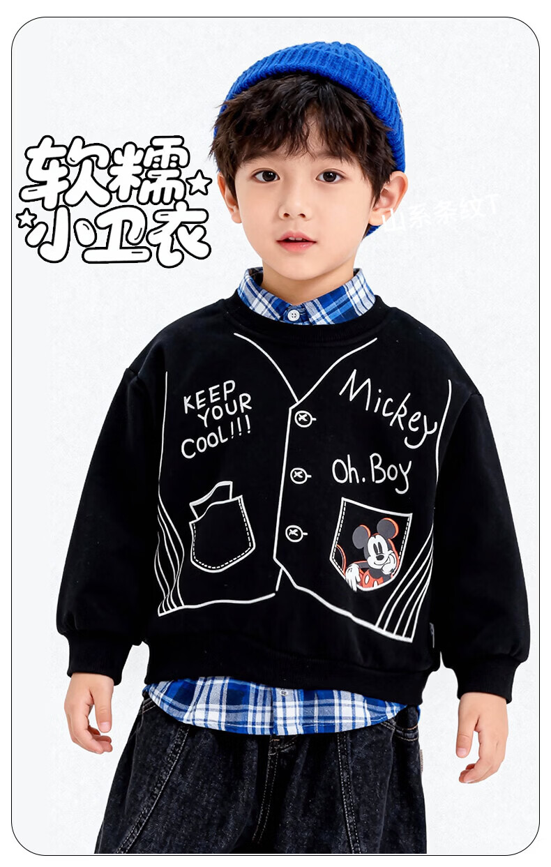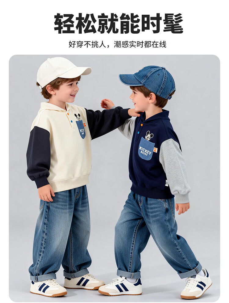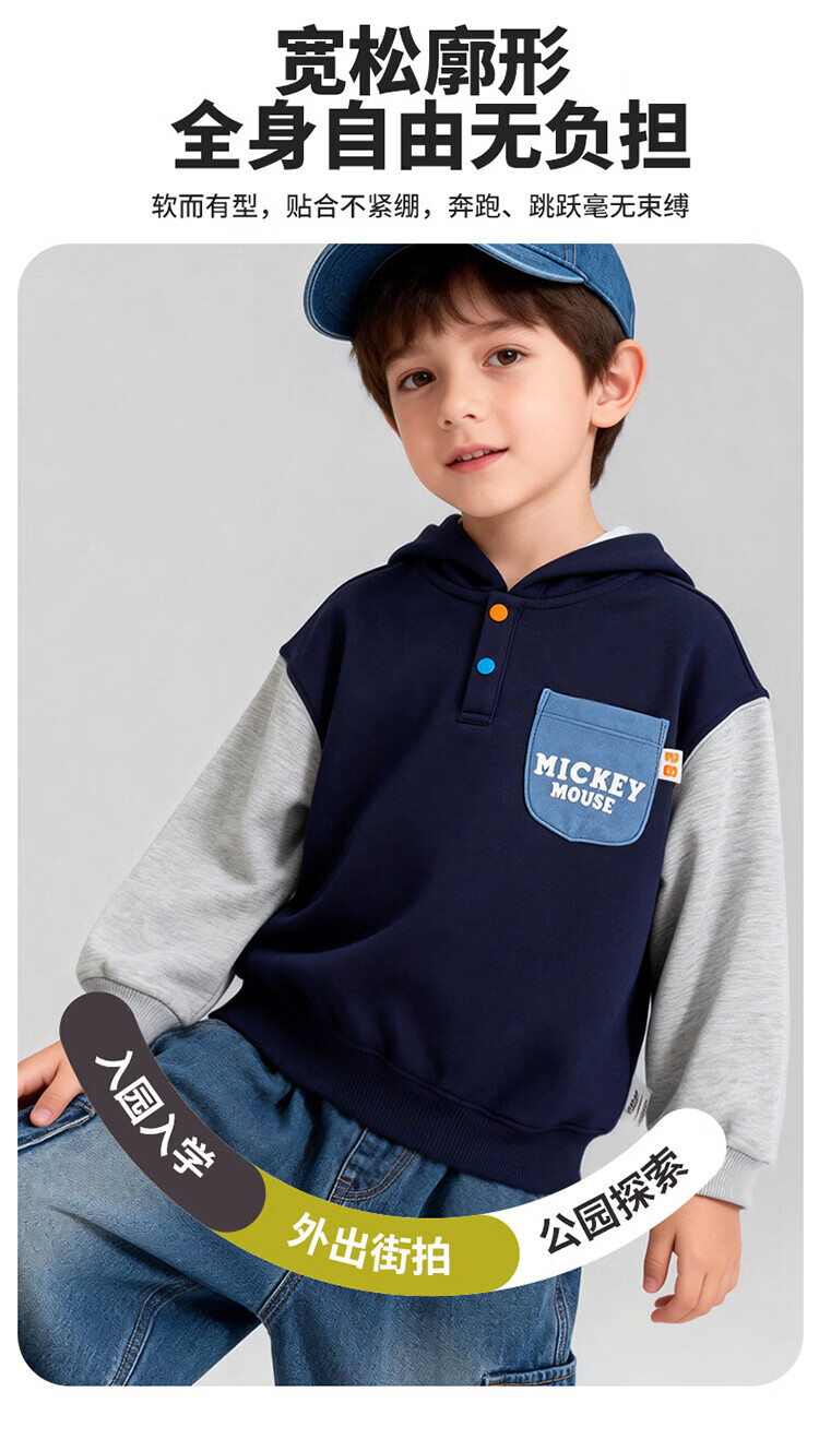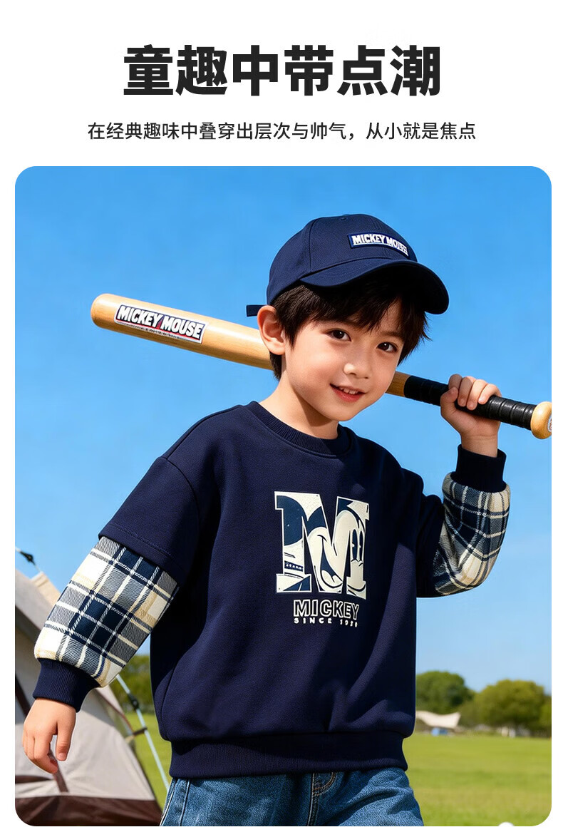 迪士尼(Disney)男童休闲运动耐磨卫衣春秋季学院风潮酷穿搭童装拼色卫衣26年新款 藏青Polo领 150 (建议10-12岁身高140-150cm)