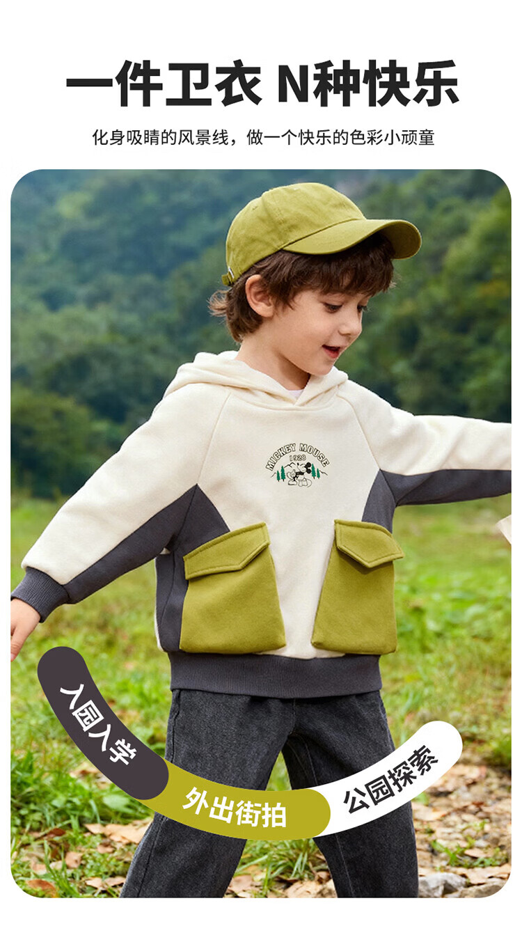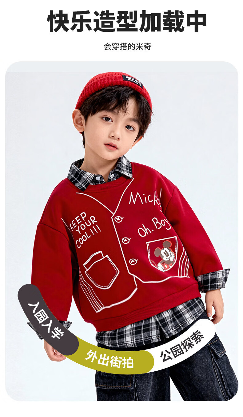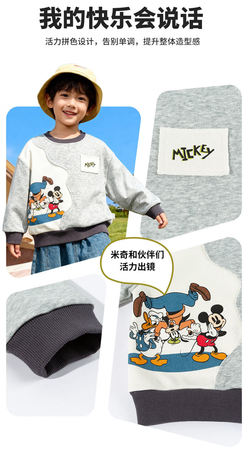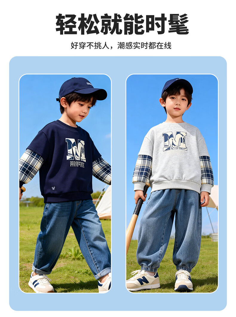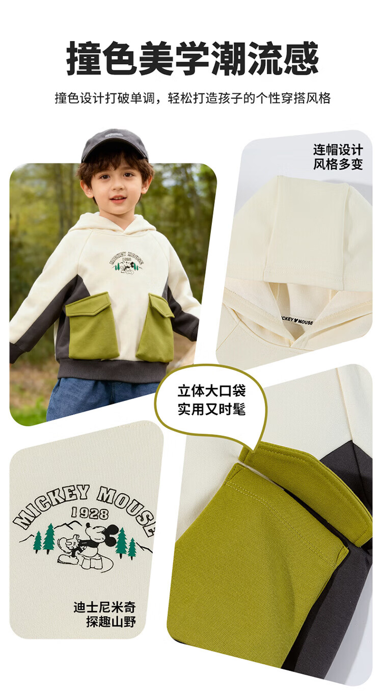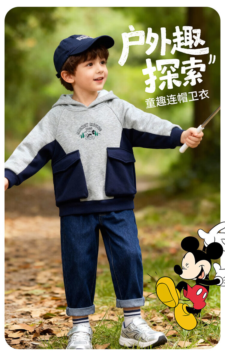 迪士尼(Disney)男童休闲运动耐磨卫衣春秋季学院风潮酷穿搭童装拼色卫衣26年新款 藏青Polo领 150 (建议10-12岁身高140-150cm)